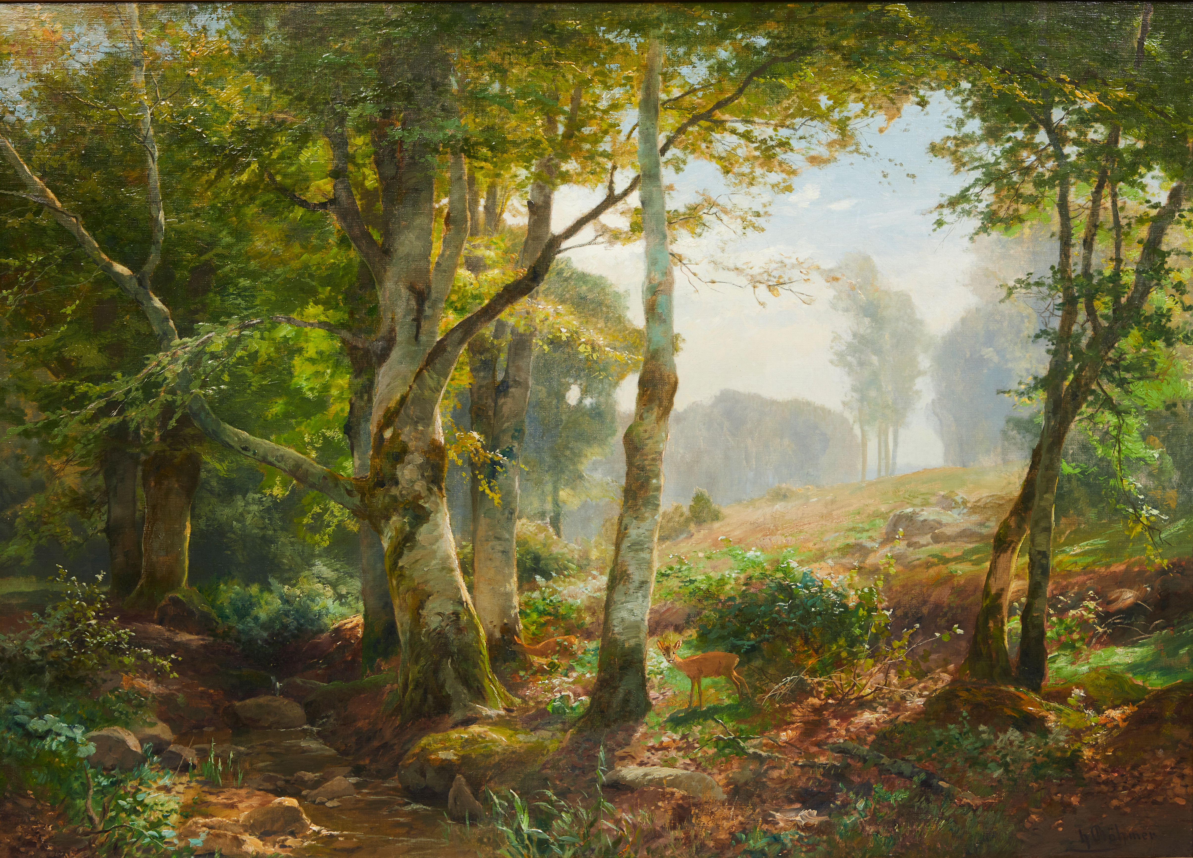 3444700. HEINRICH BÖHMER (1852-1930). Waldlichtung mit Rehen.