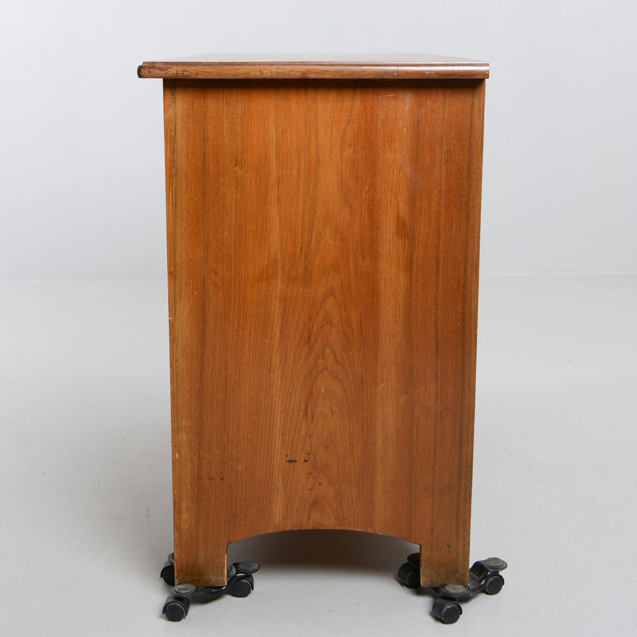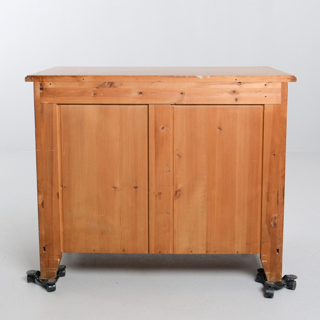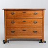 Drei Schubladen, Metallbeschläge. Breite 101, Tiefe 49, Höhe 81 cm.