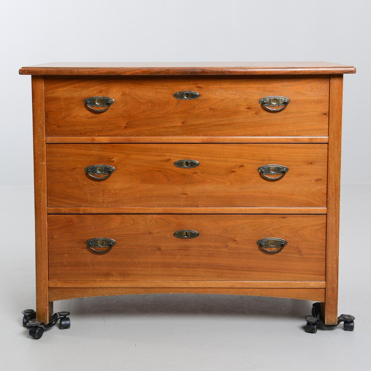 Eine Jugendstil-Kommode aus Eichenholz, erste Hälfte des 20. Jahrhunderts.
