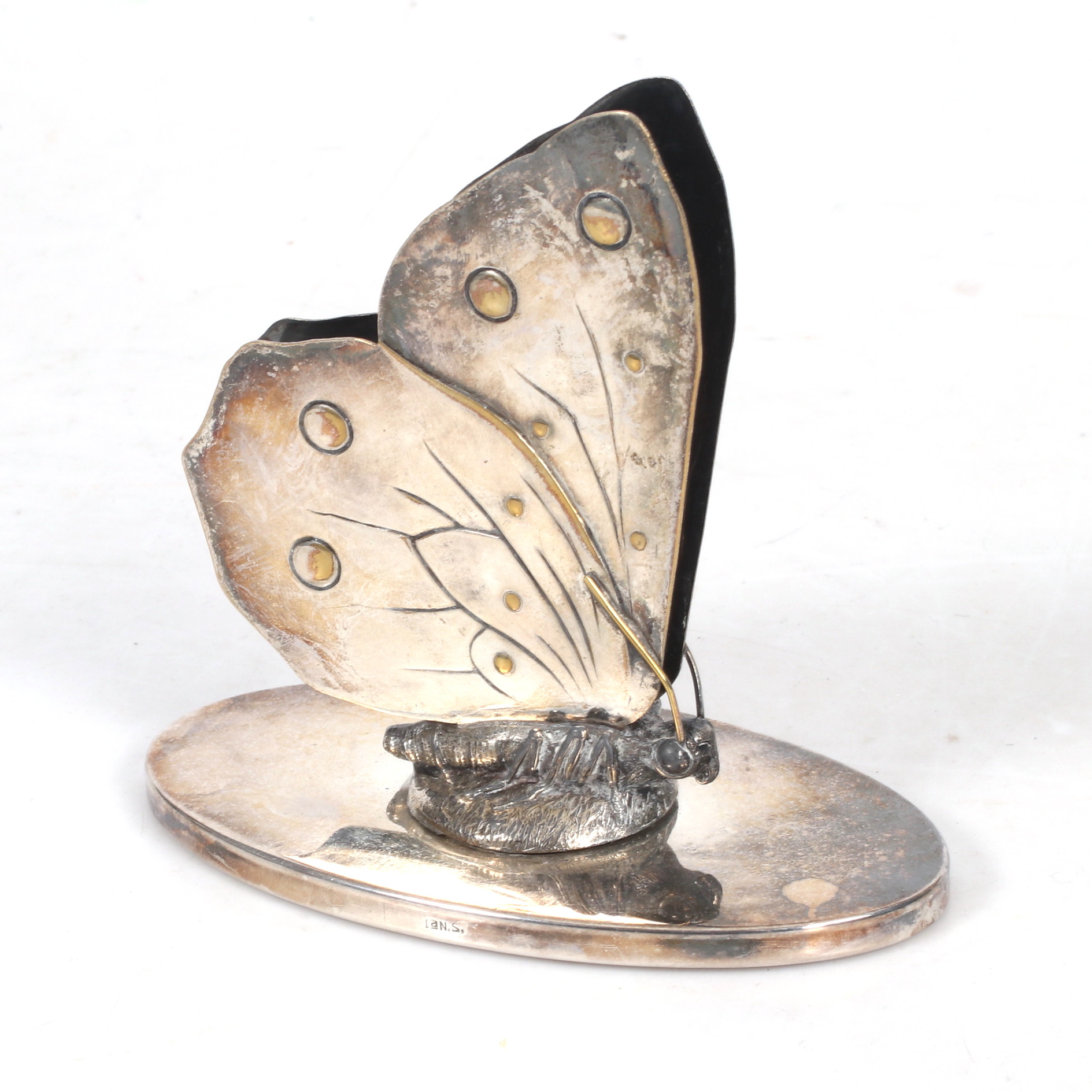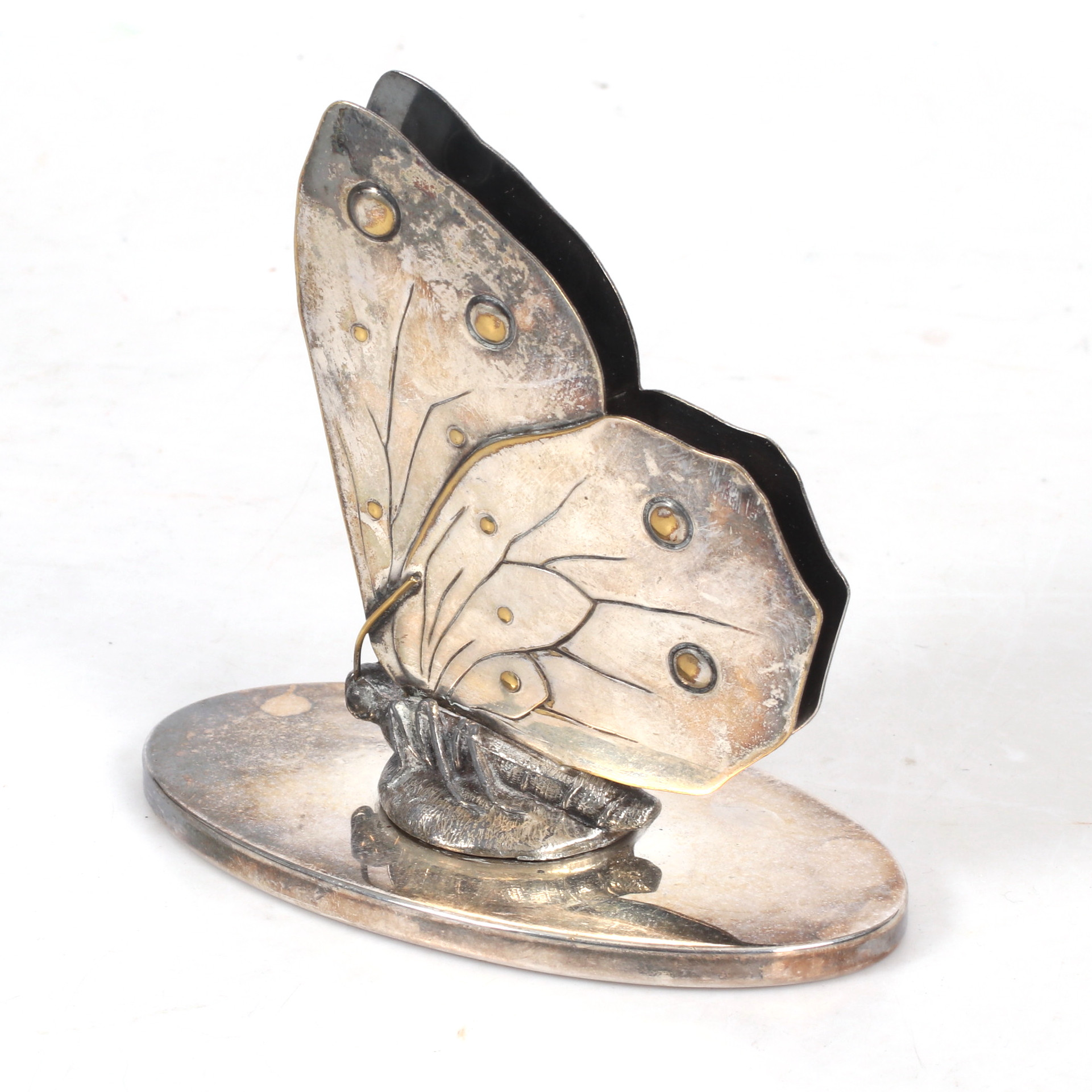 3445570. Postkartenhalter, Neusilber, 20. Jahrhundert.
