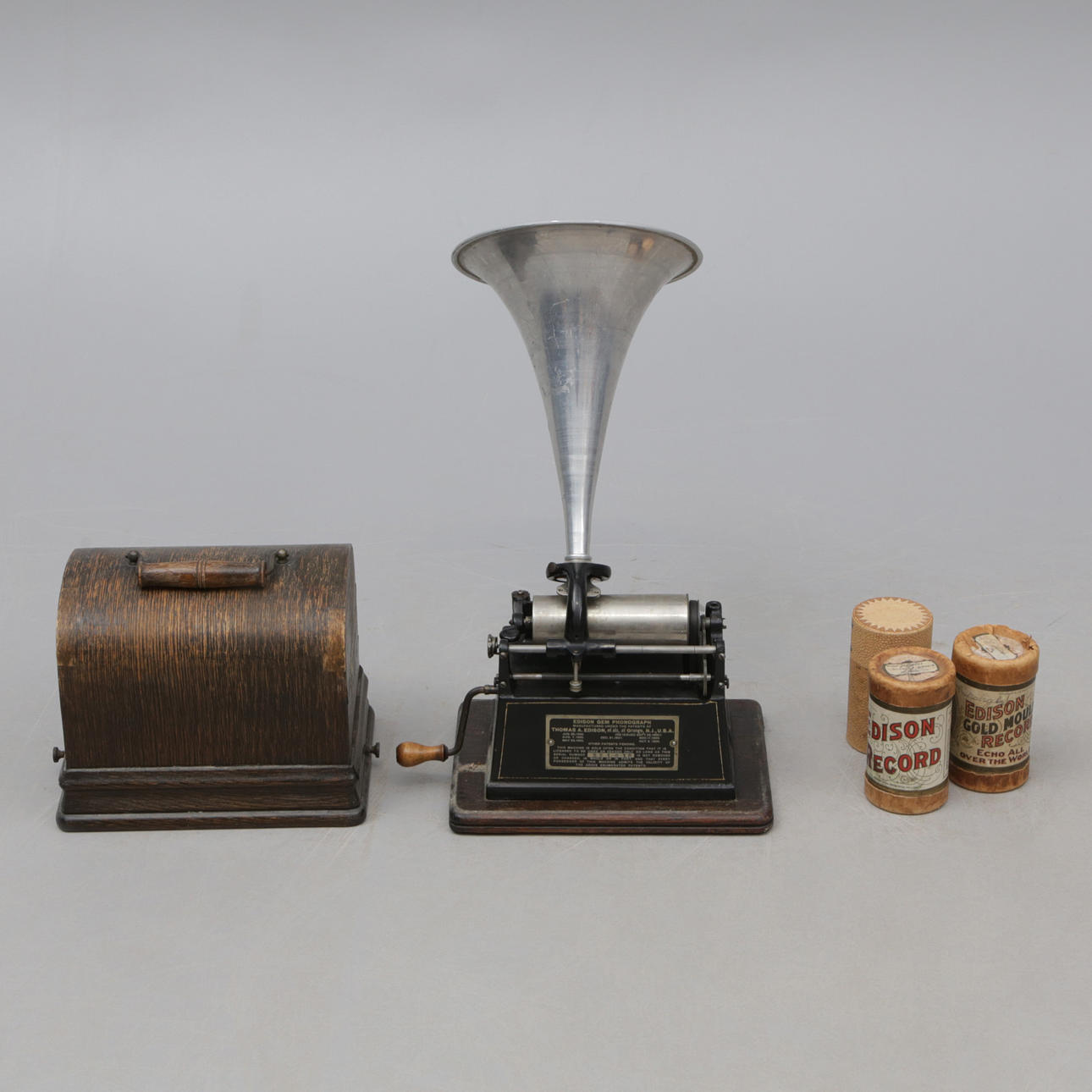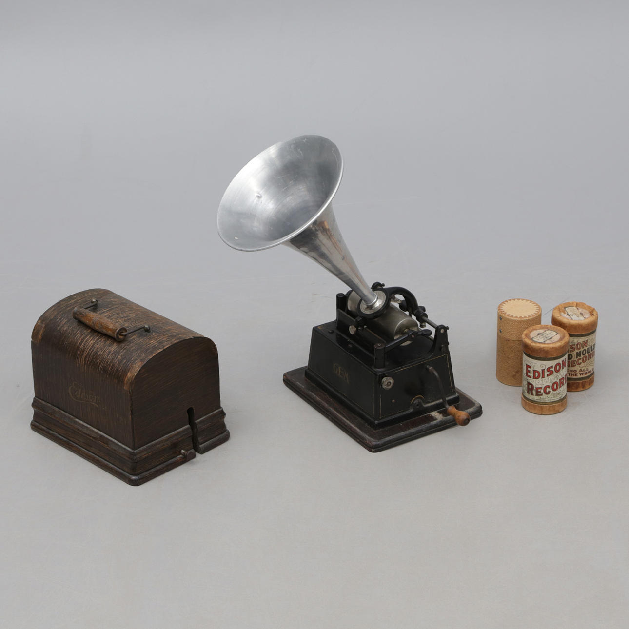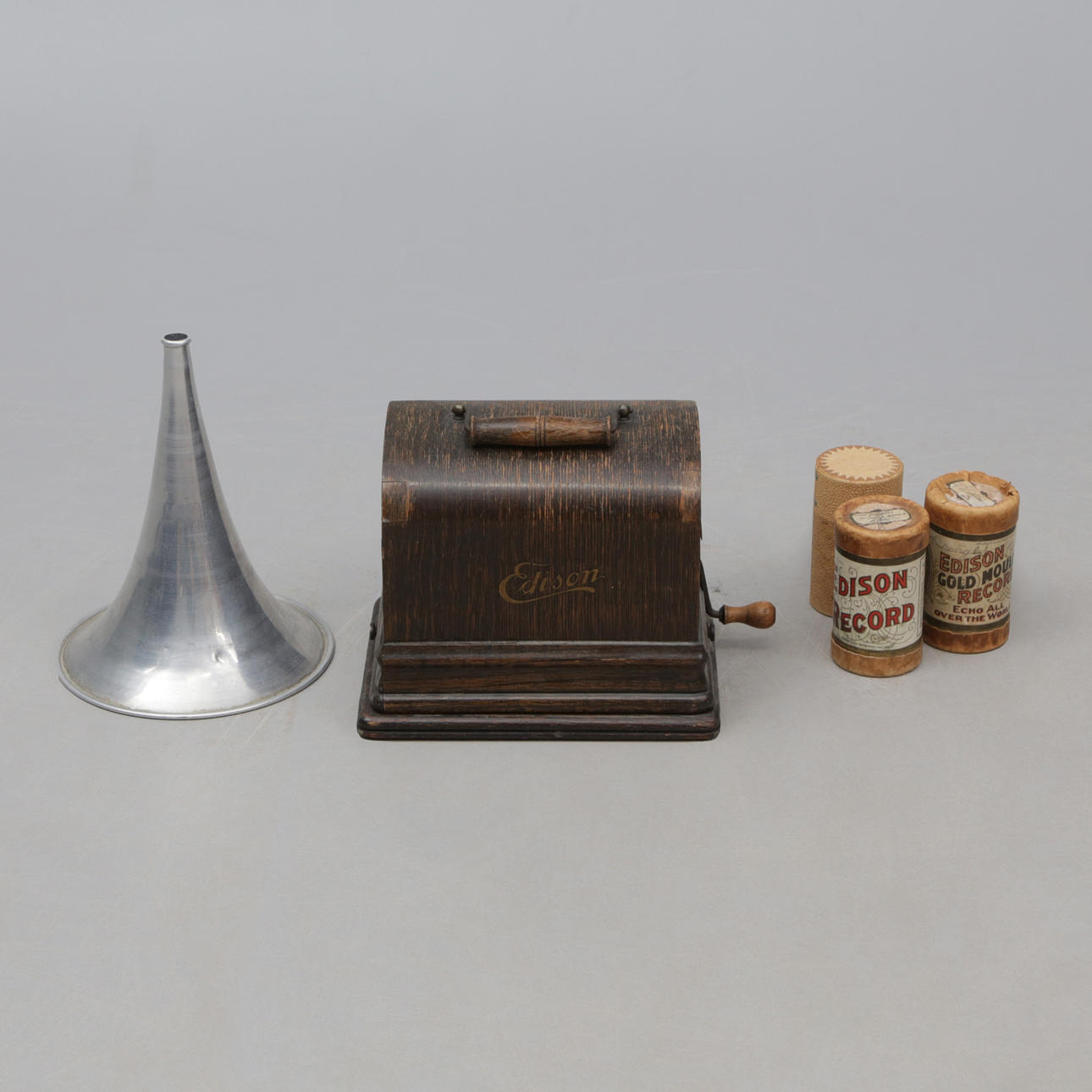 3447624. PHONOGRAPH, mit Trichter und Rollen, 3 Stück Es ist Edison.