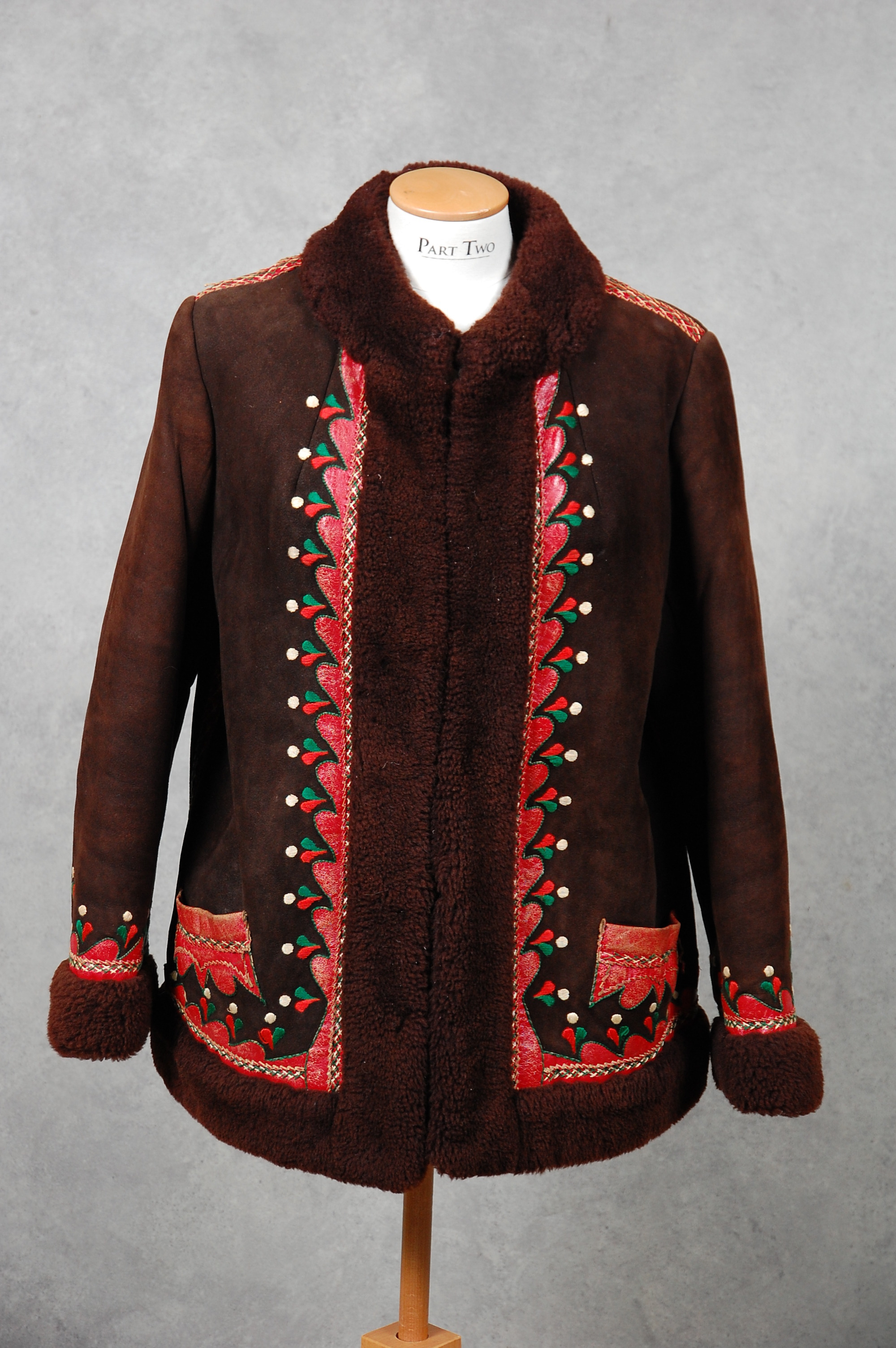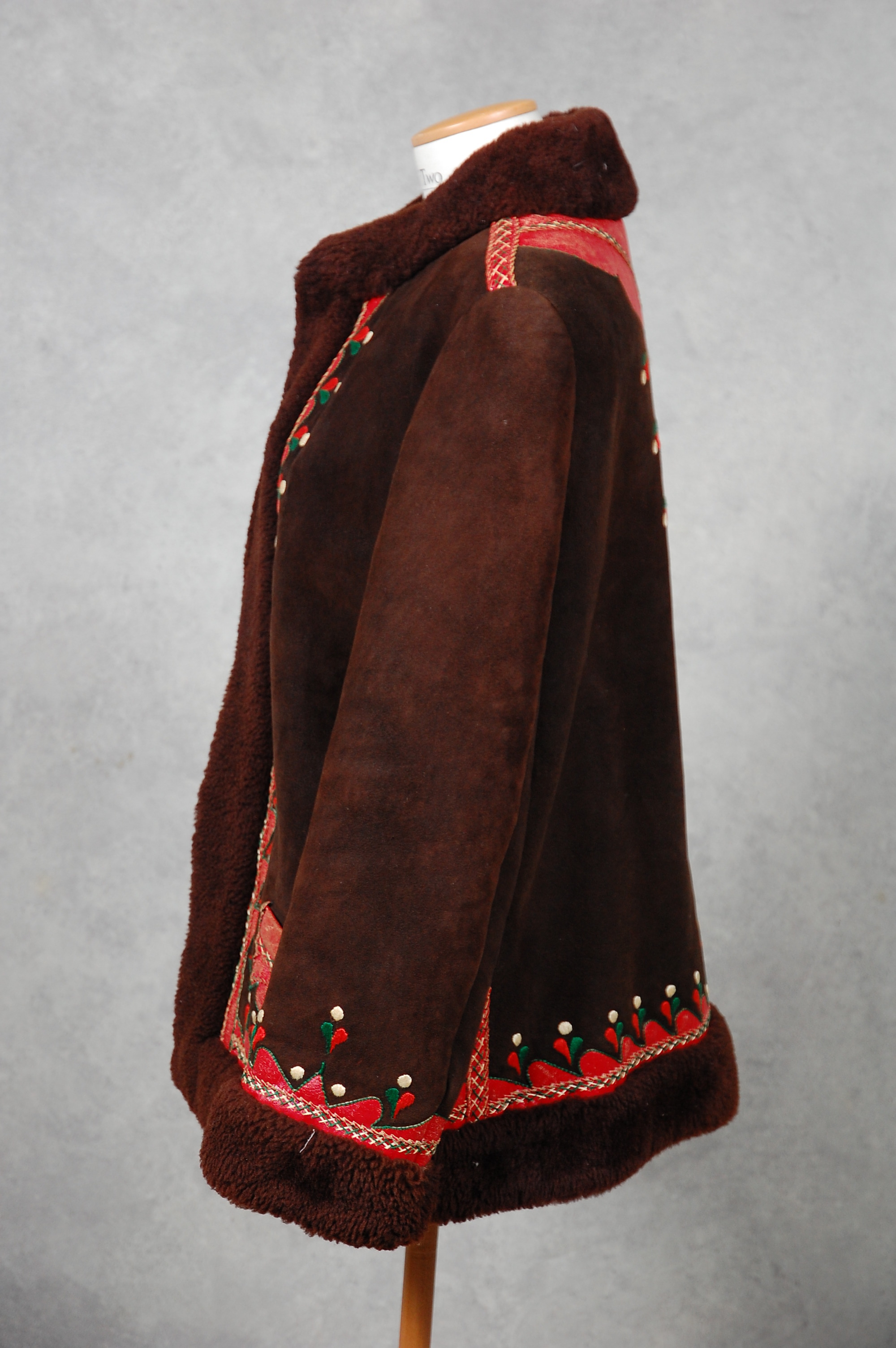 344889. JACKE, Folklore-Stil, Wildleder, Leder mit Fellfutter.