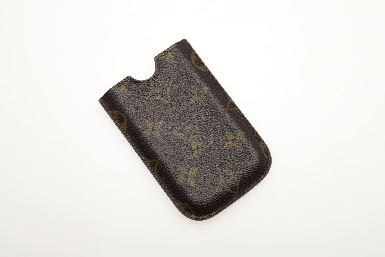 Eine kleine monogrammierte Handy- oder Kartenhülle, auf der Innenseite 3G, „Louis Vuitton Paris“ und Seriennummer CT2059. 11 cm hoch.