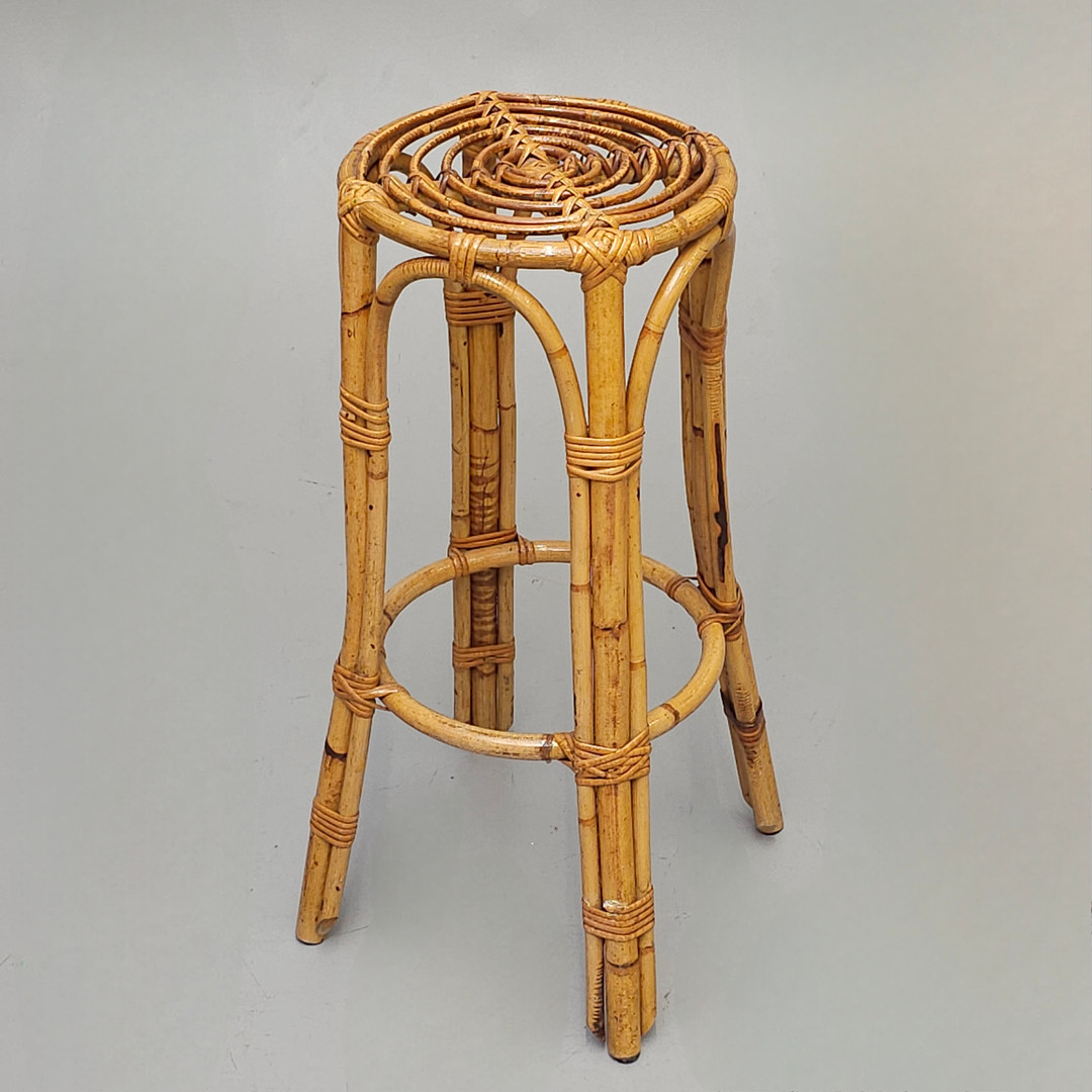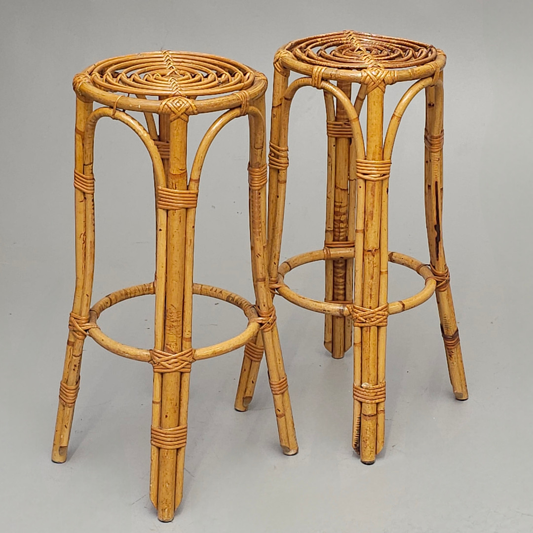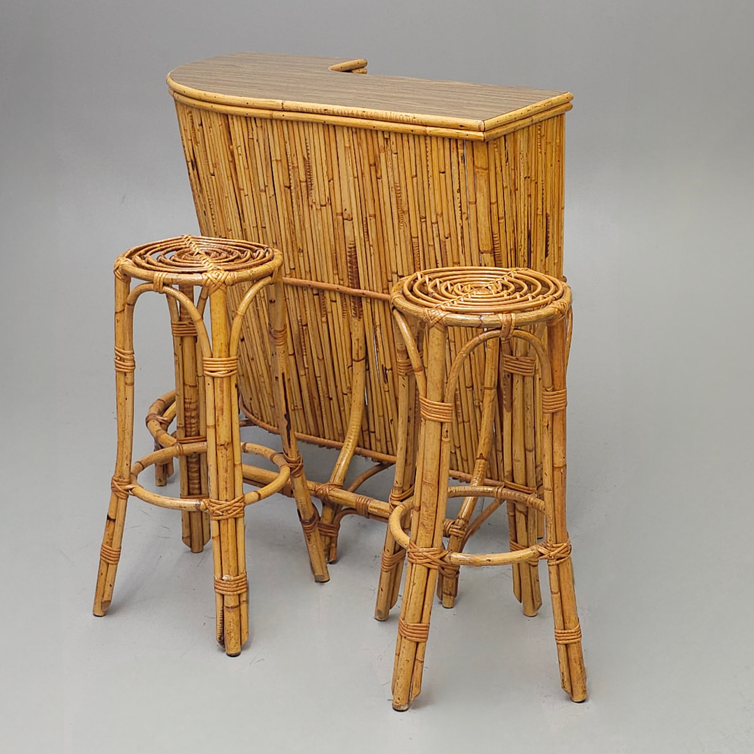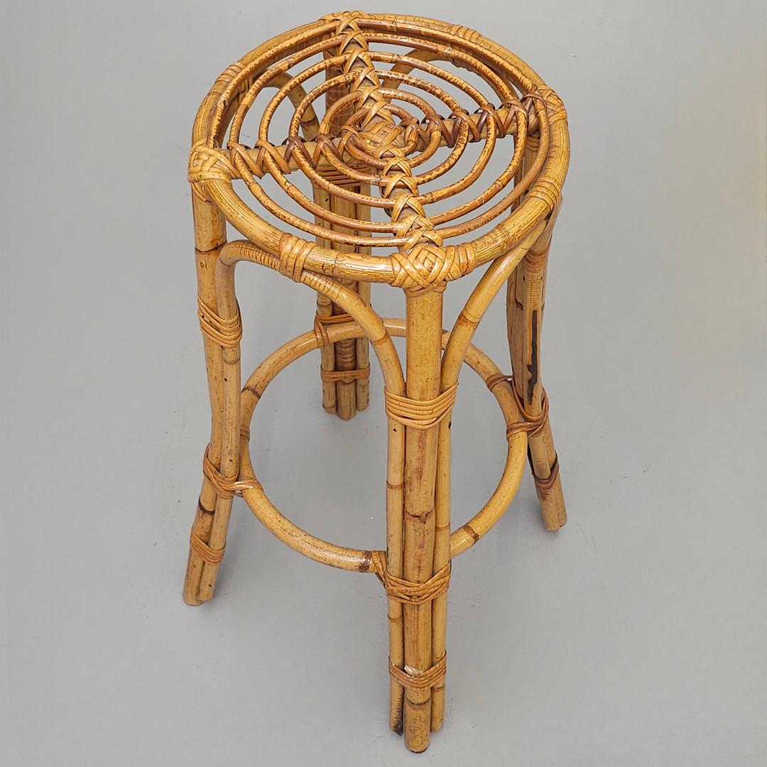 3455166. BARTHEKE AUS BAMBUSROHR MIT 2 HOCKERN.