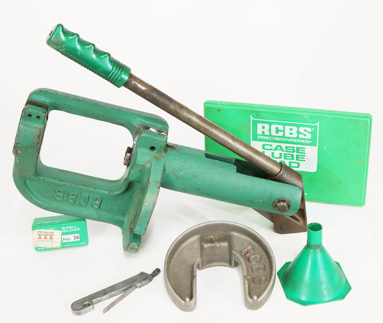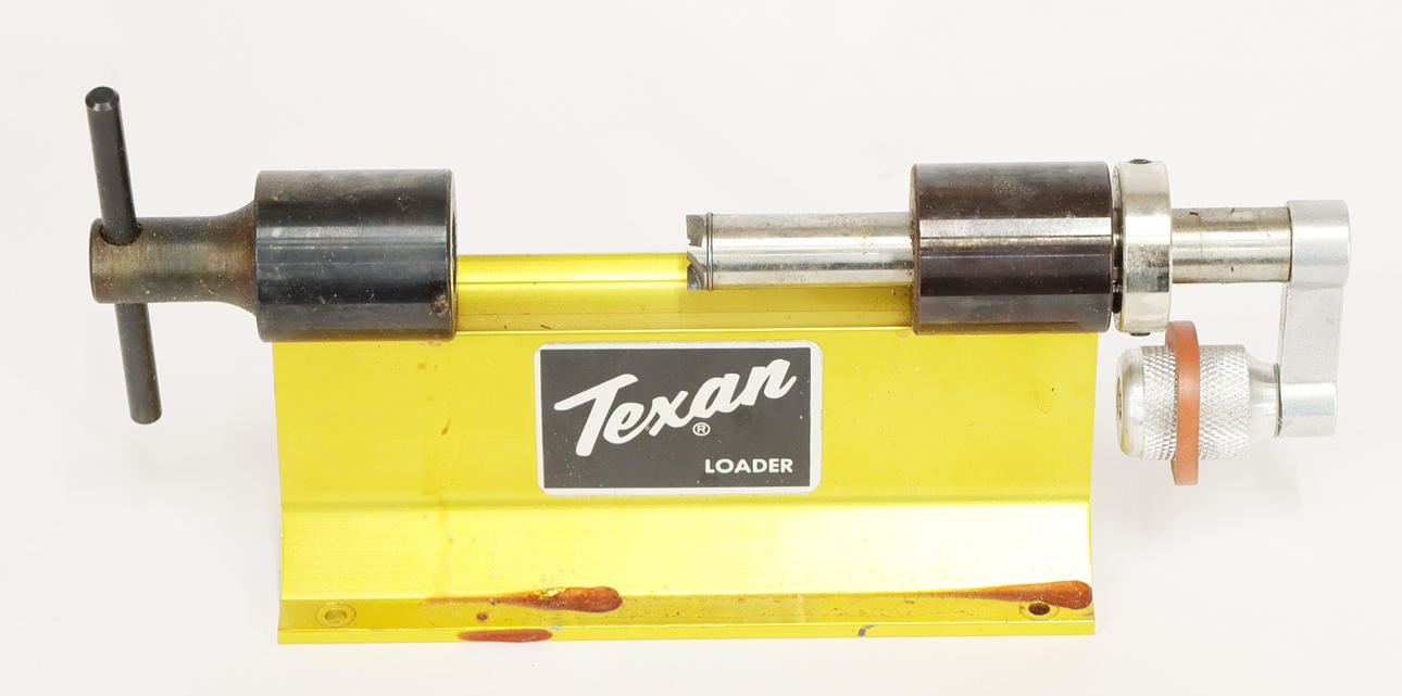 Texan Loader Hülsendrehmaschine, RCBS-Uniflow-Pulvermessgerät, Redding-Pulverwaage, diverses Zubehör wie Runddrehmaschinen, Piloten usw., Hülsenhalter.