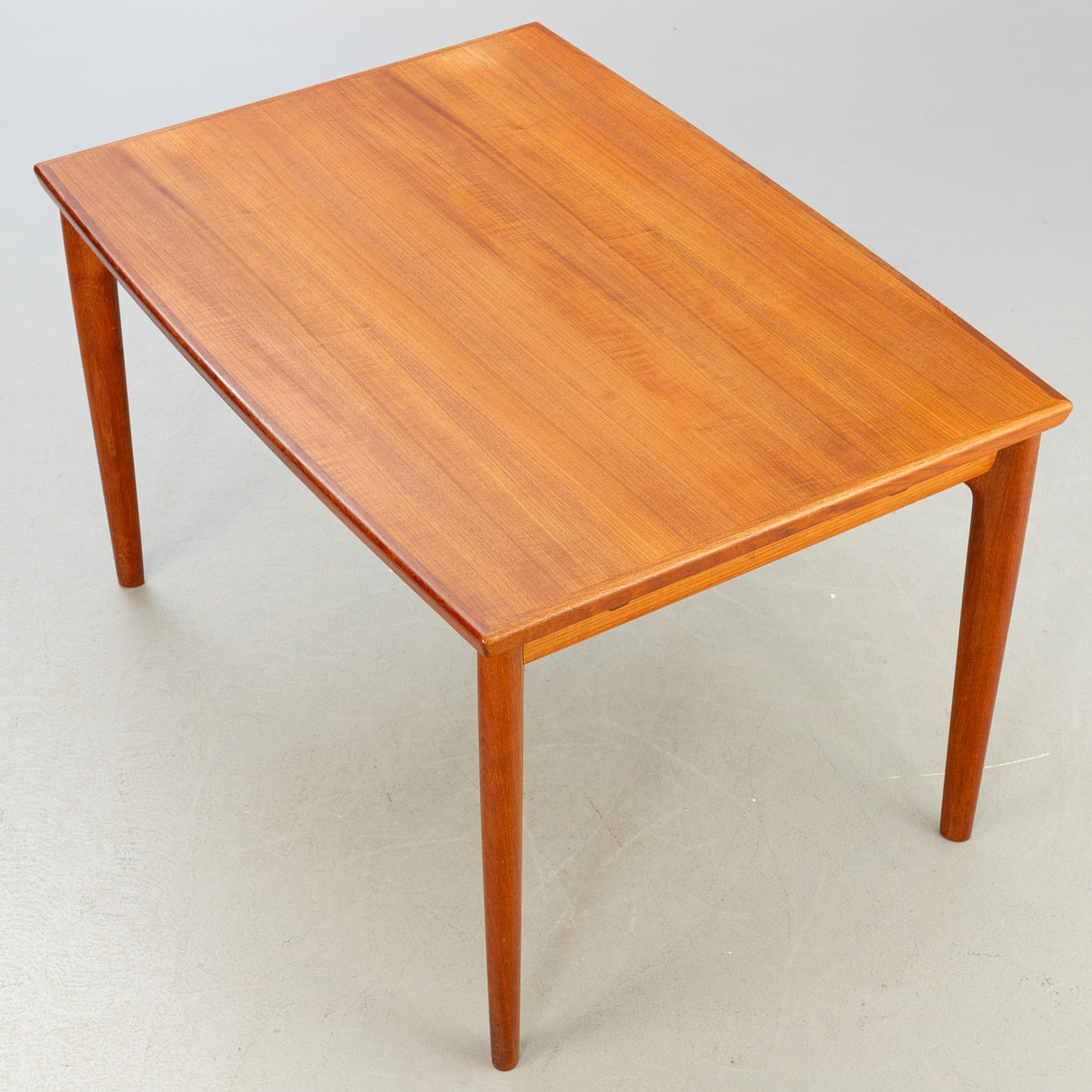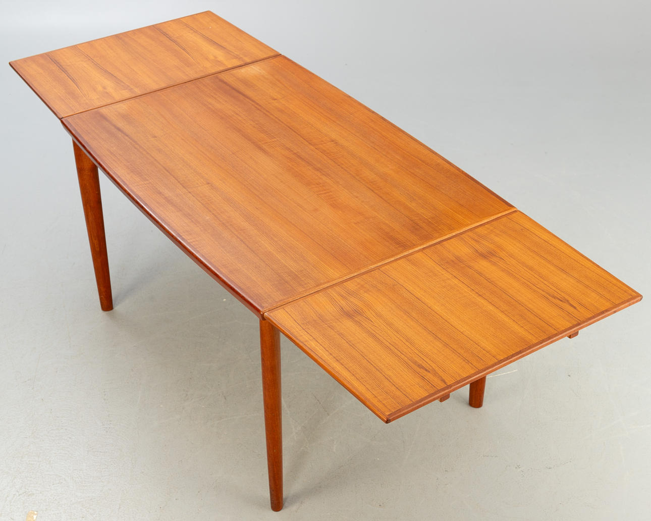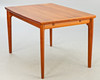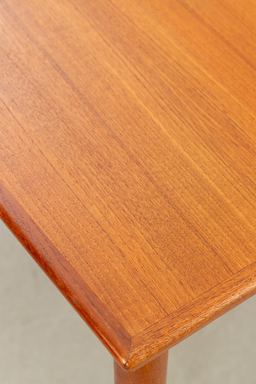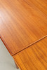 Esstisch aus Teakholz mit einer rechteckigen, erweiterbaren Tischplatte.