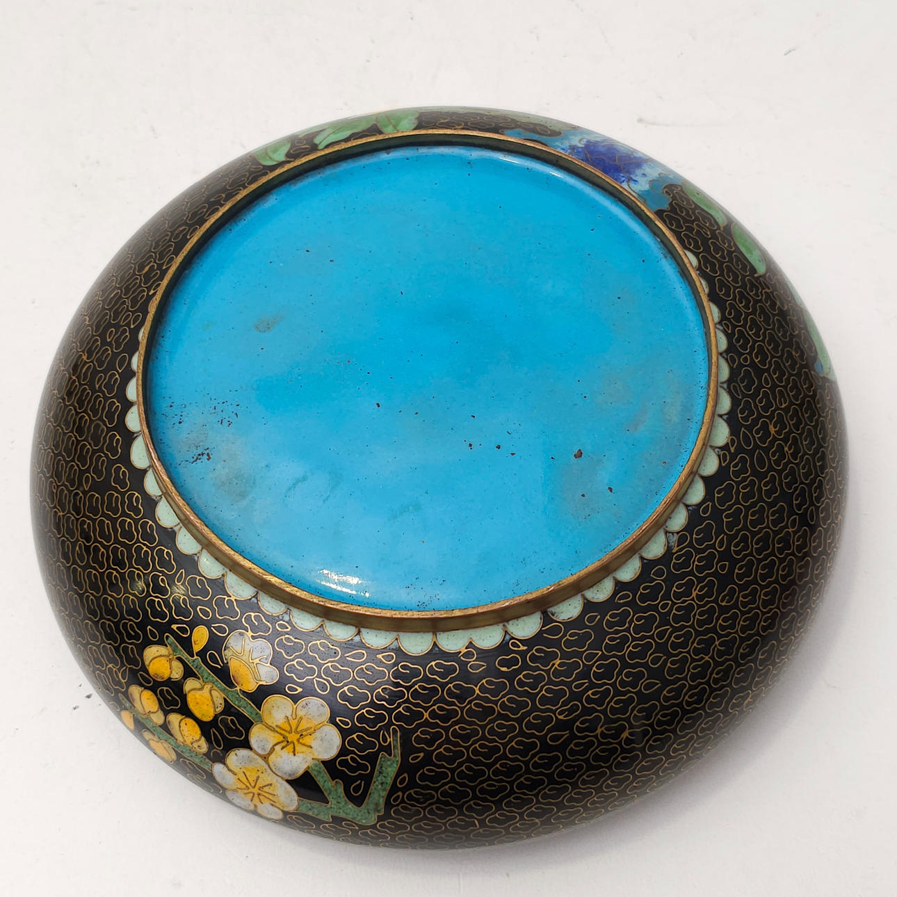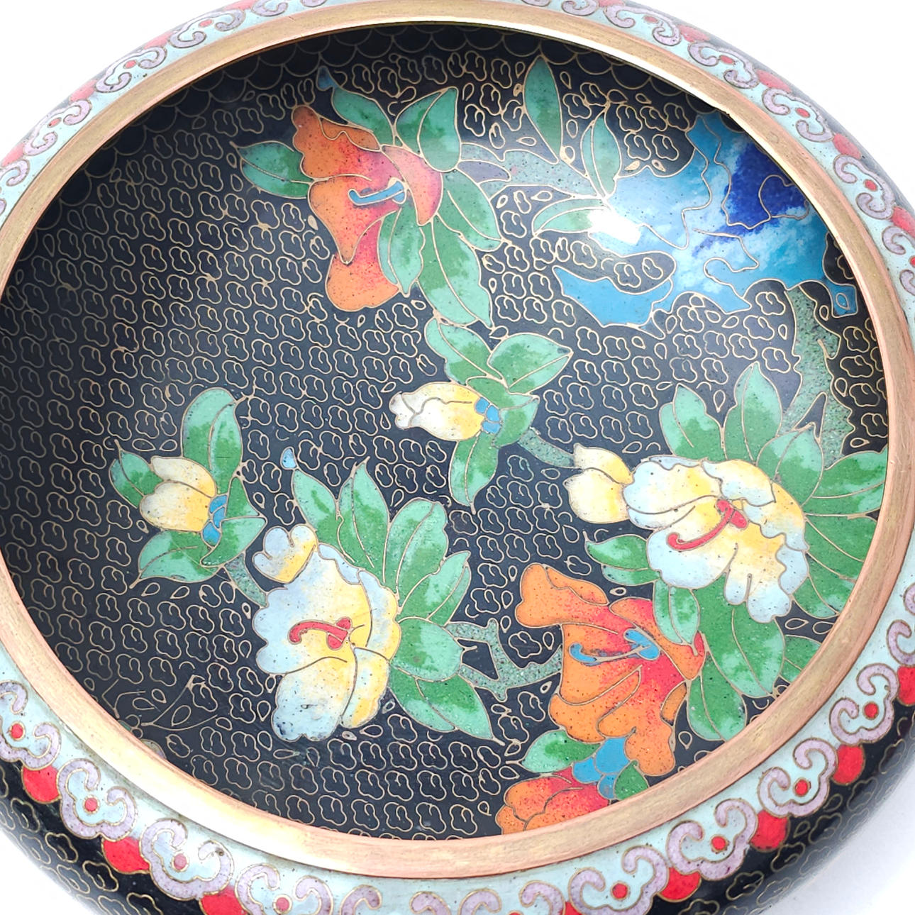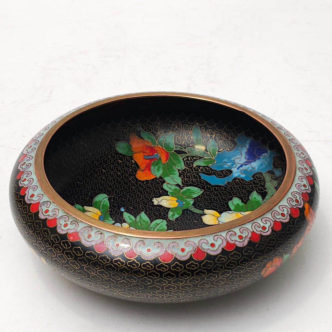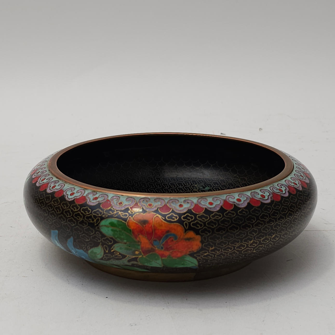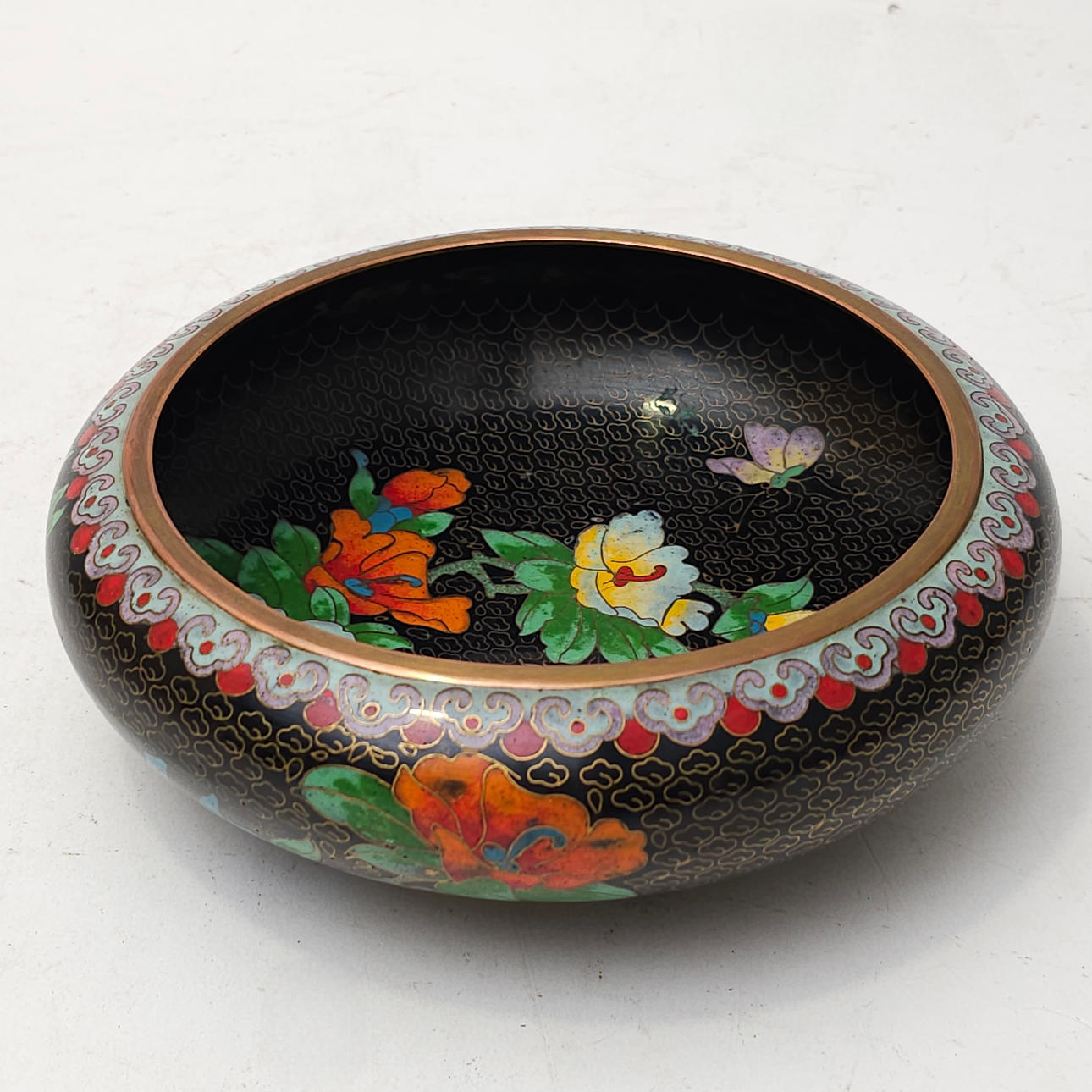3458504. CHINESISCHE CLOISONNE-EMAILSCHALE MIT BLUMENMOTIV.