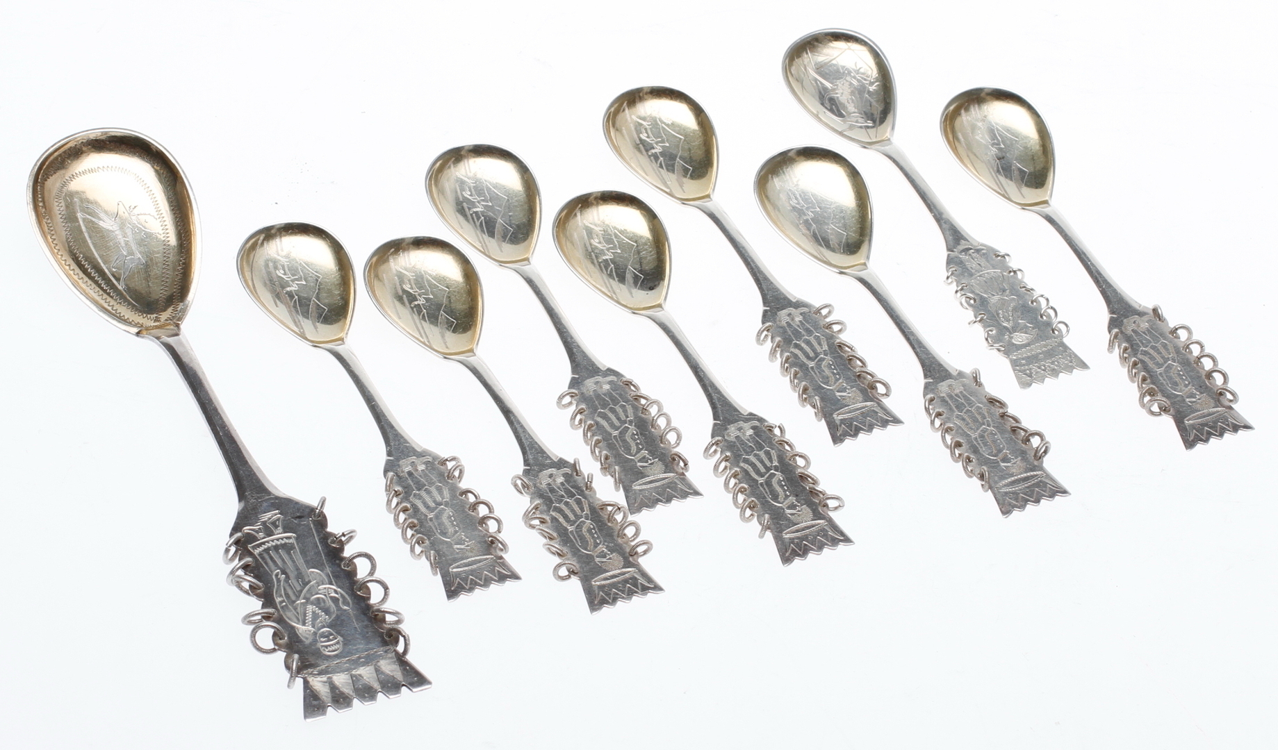 34597. PATCH LÖFFEL, 8 + 1 Stück, Silber, Gewicht ca. 135 gr.