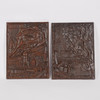 2 gusseiserne Reliefs/Herdplatten, „Tre Kronors fire“ und „Eldqvarns fire“.