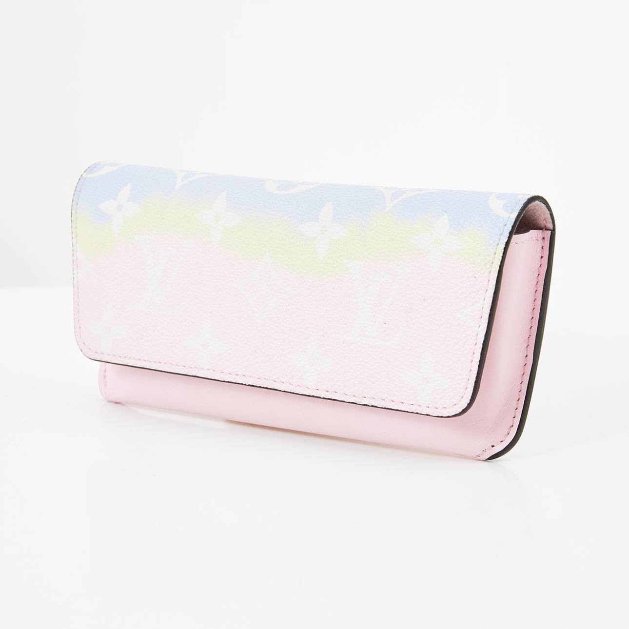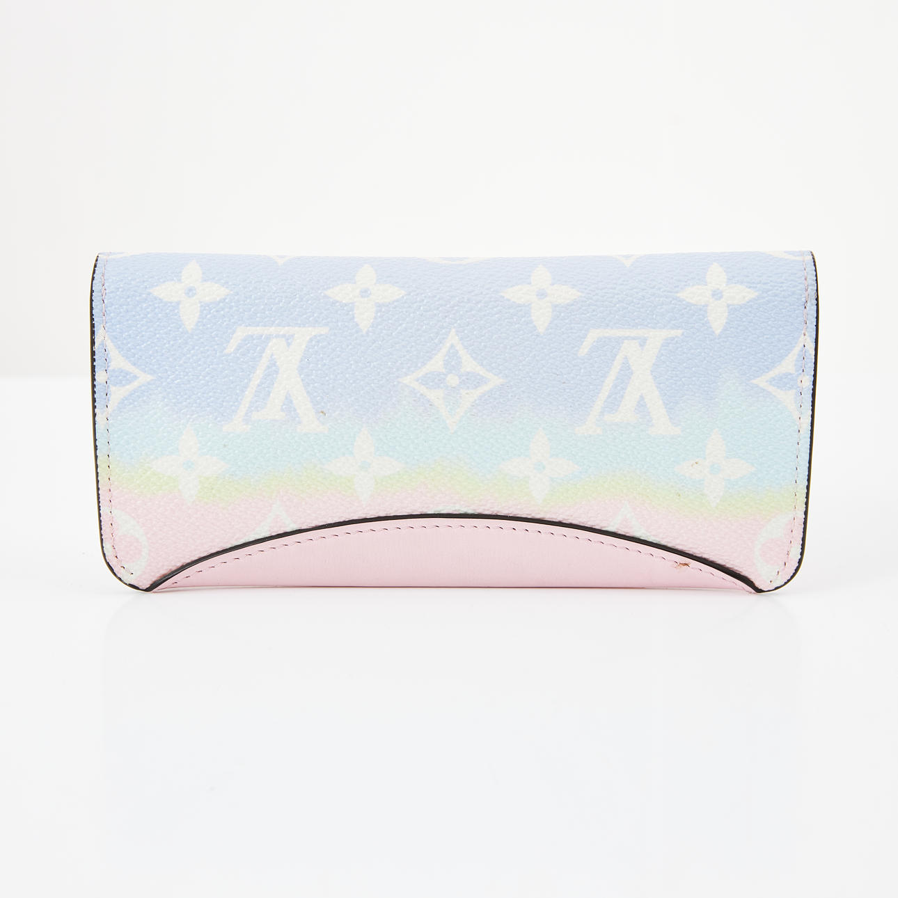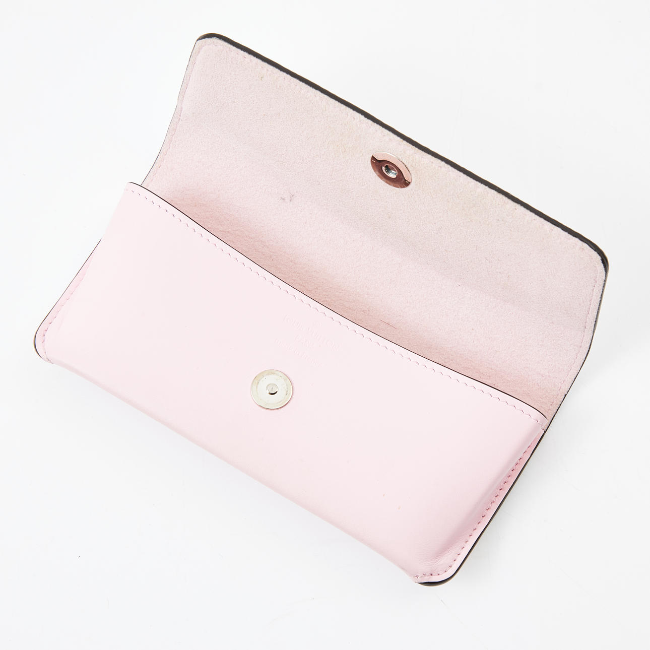 Aus der Spring in the City Kollektion, im Monogrammmuster auf Leder in „Sunrise Pastell“ und Rosa, mit der Aufschrift „Louis Vuitton Paris made in Italy“, Maße ca. 8x17x3cm.