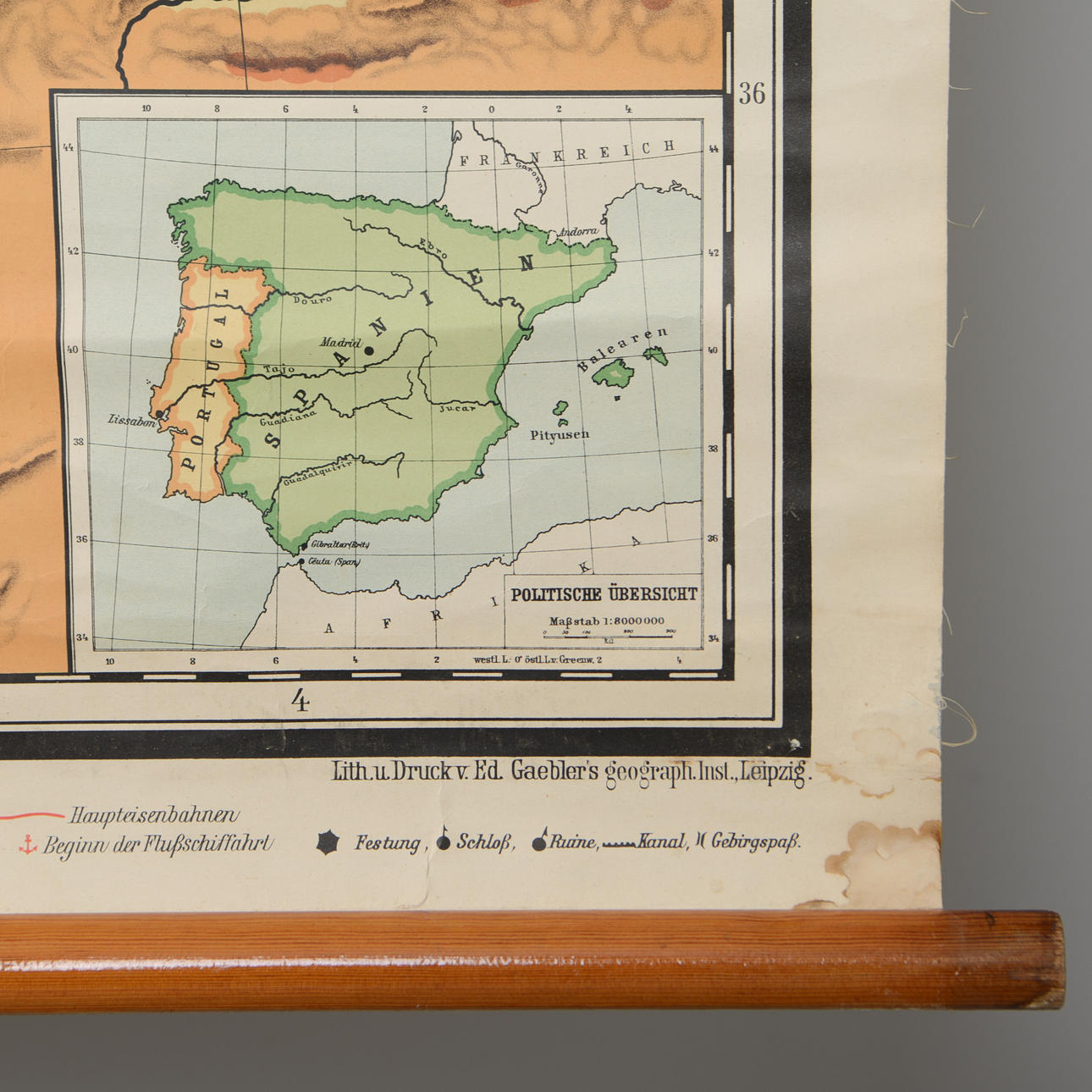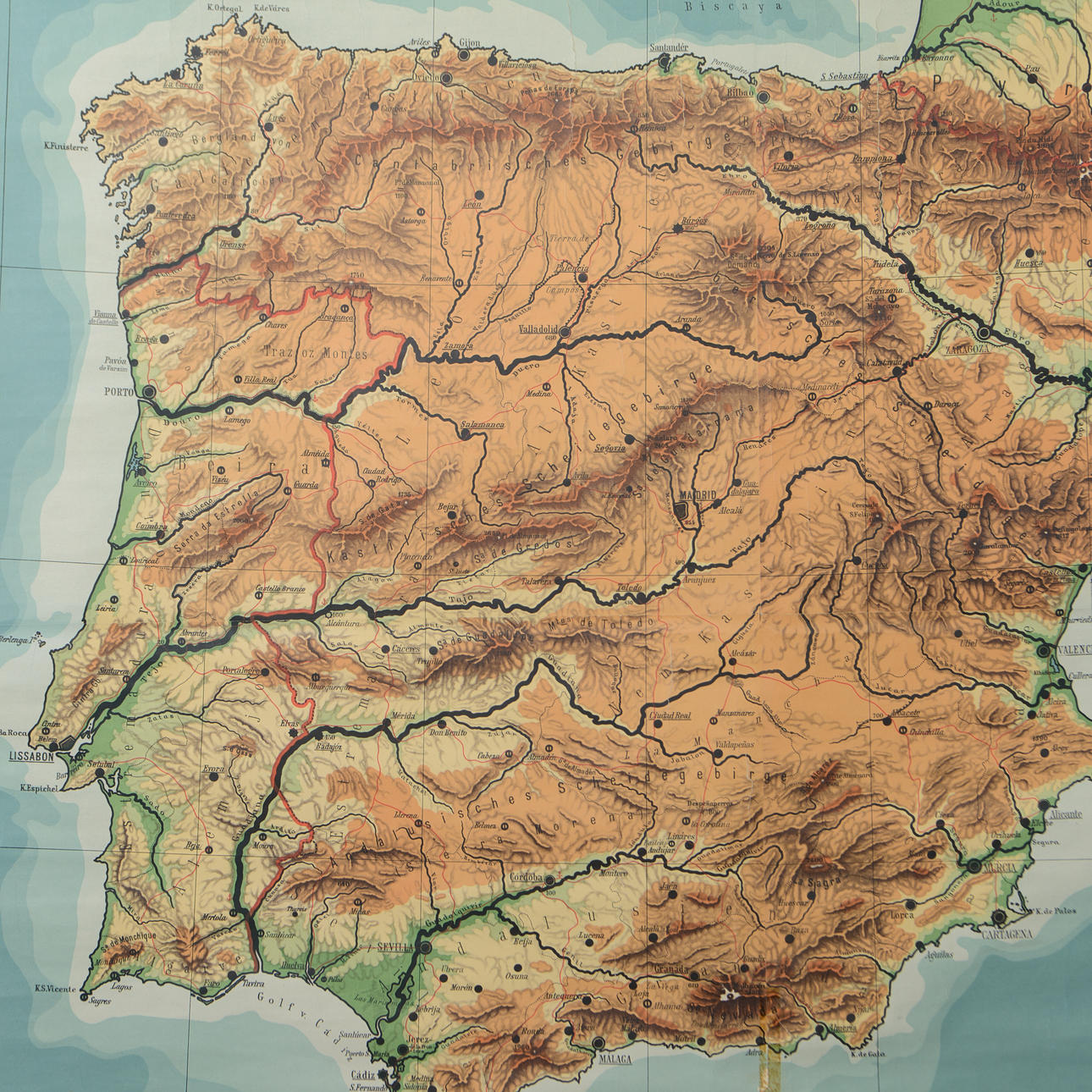 SCHULPLAN, Pyrenäenhalbinsel, 1:1000000, erster Teil des 20. Jahrhunderts.
