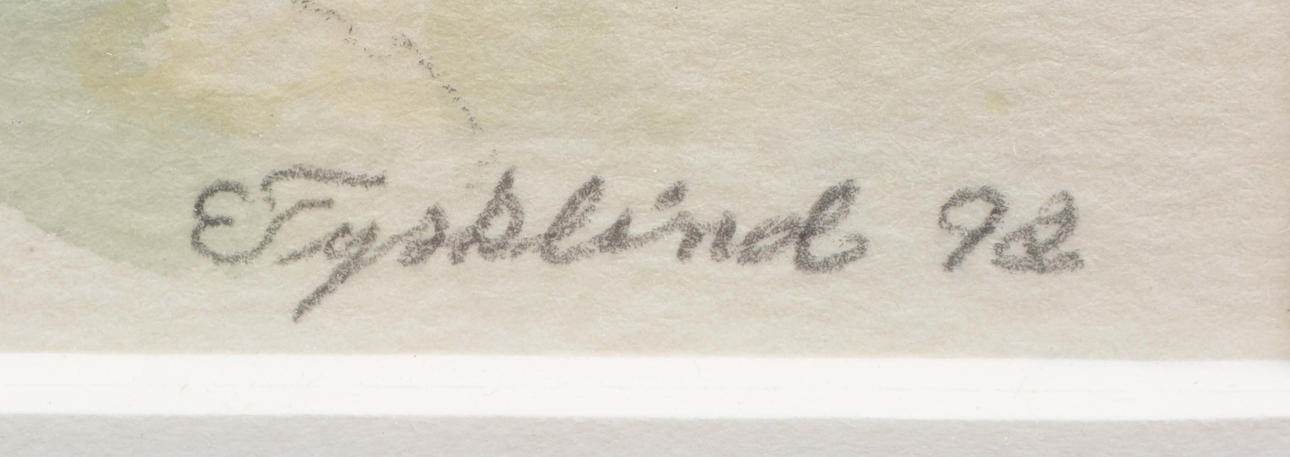 3476107. EINAR TYSKLIND. Klippen mit Bootshäusern. Aquarell.
