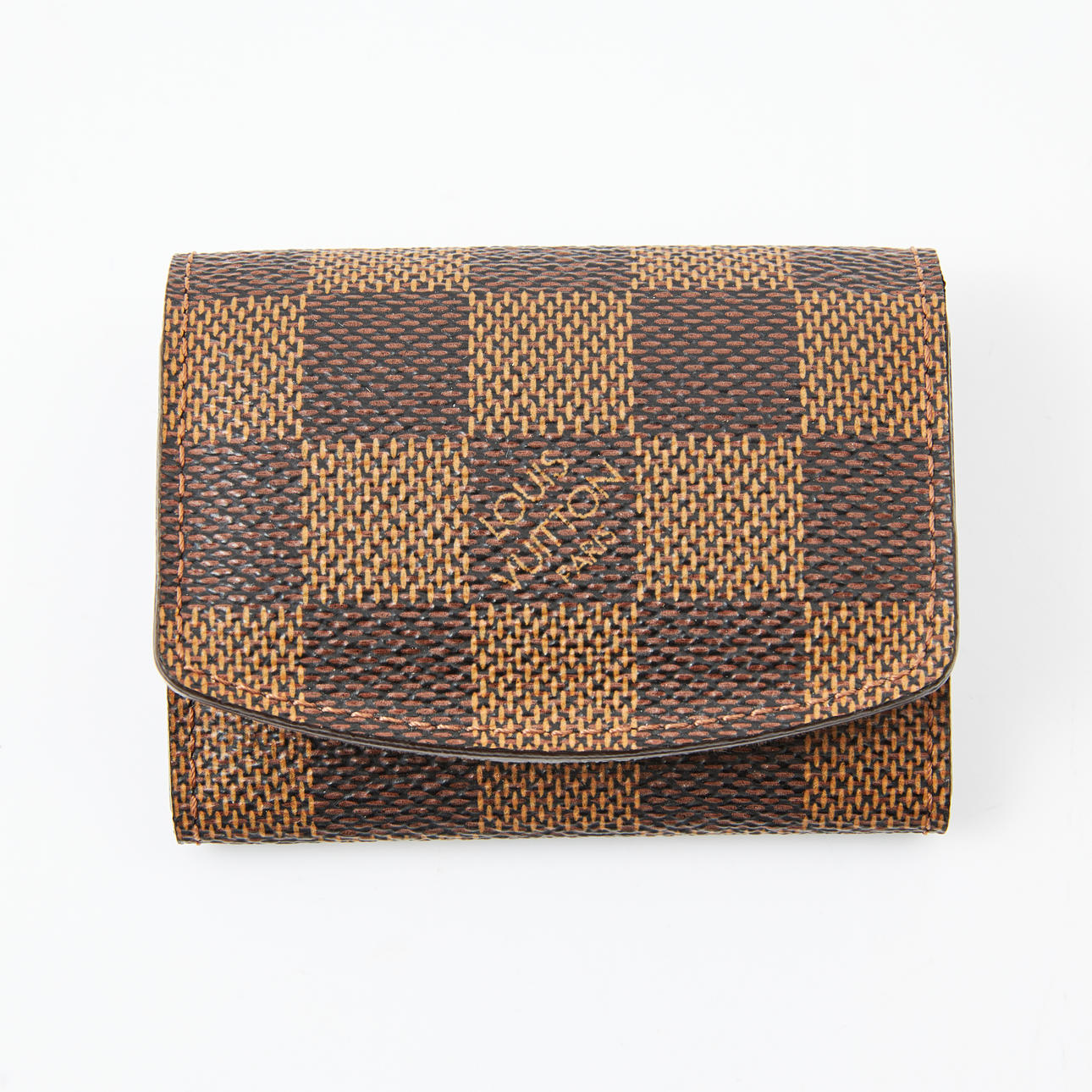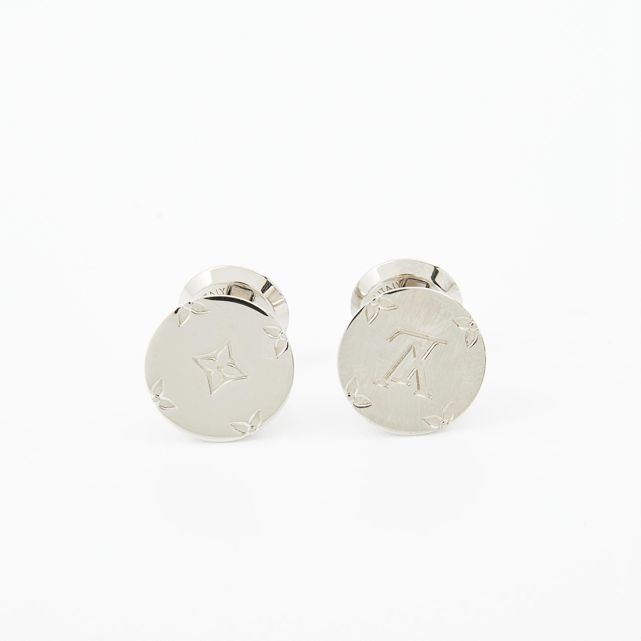 Manschettenknöpfe aus weißem Metall mit Monogramm-Logo, im Etui aus Damier Ebene Canvas, Innenfutter aus Veloursleder, Aufschrift „made in Italy DI0138", Gehäusemaße ca. 7,5x8x2 cm.