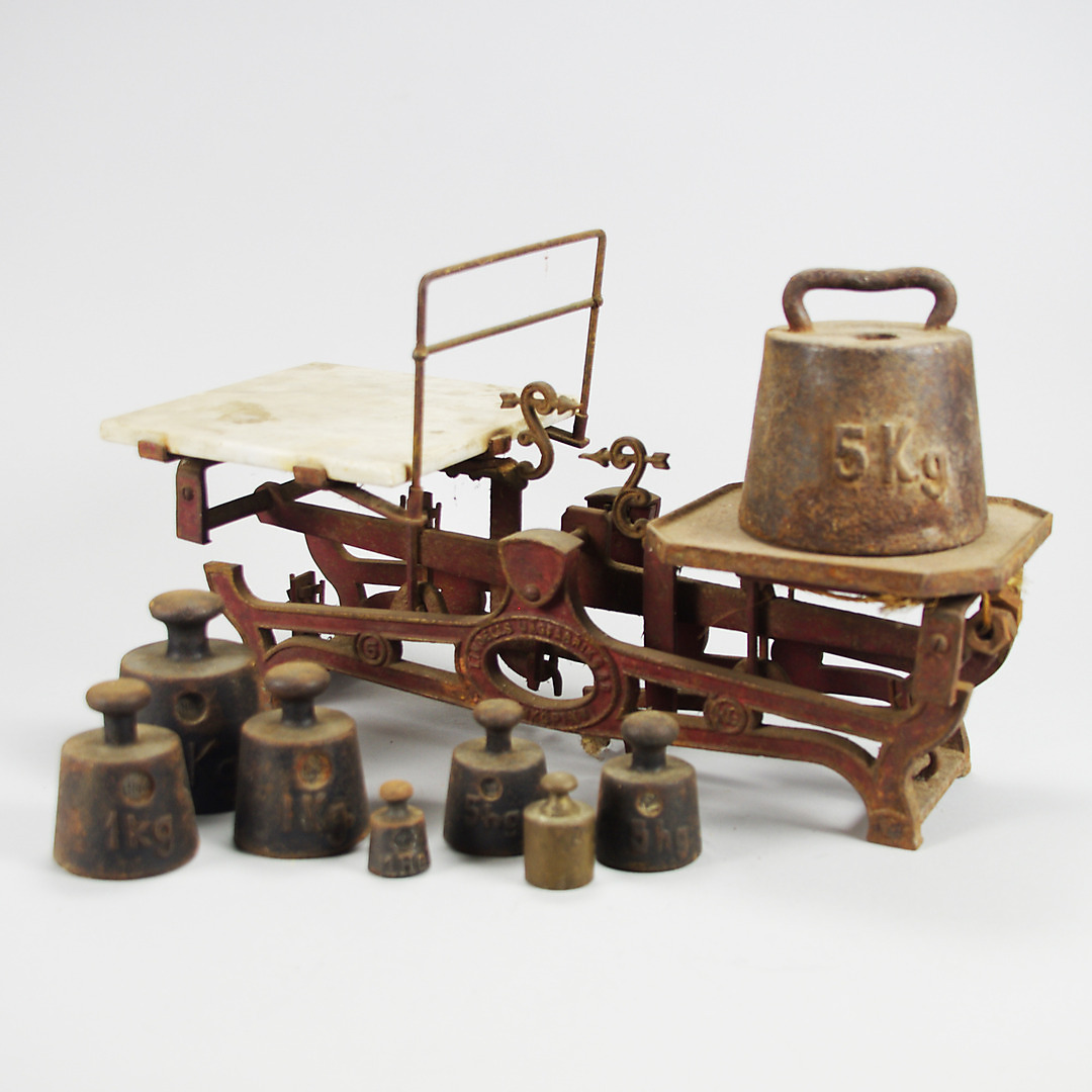 347900. WAAGE MIT GEWICHTEN, Lindells.