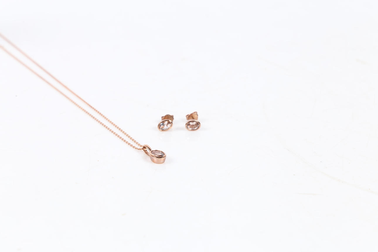 3479080. SCHMUCKSET AUS 9-KARÄTIGEM ROSÉGOLD MIT MORGANIT.