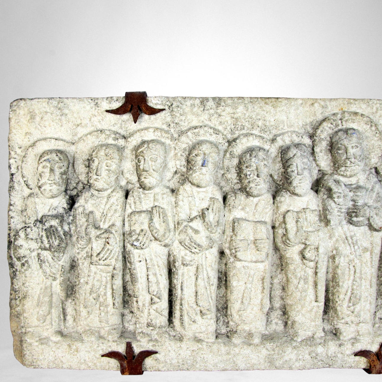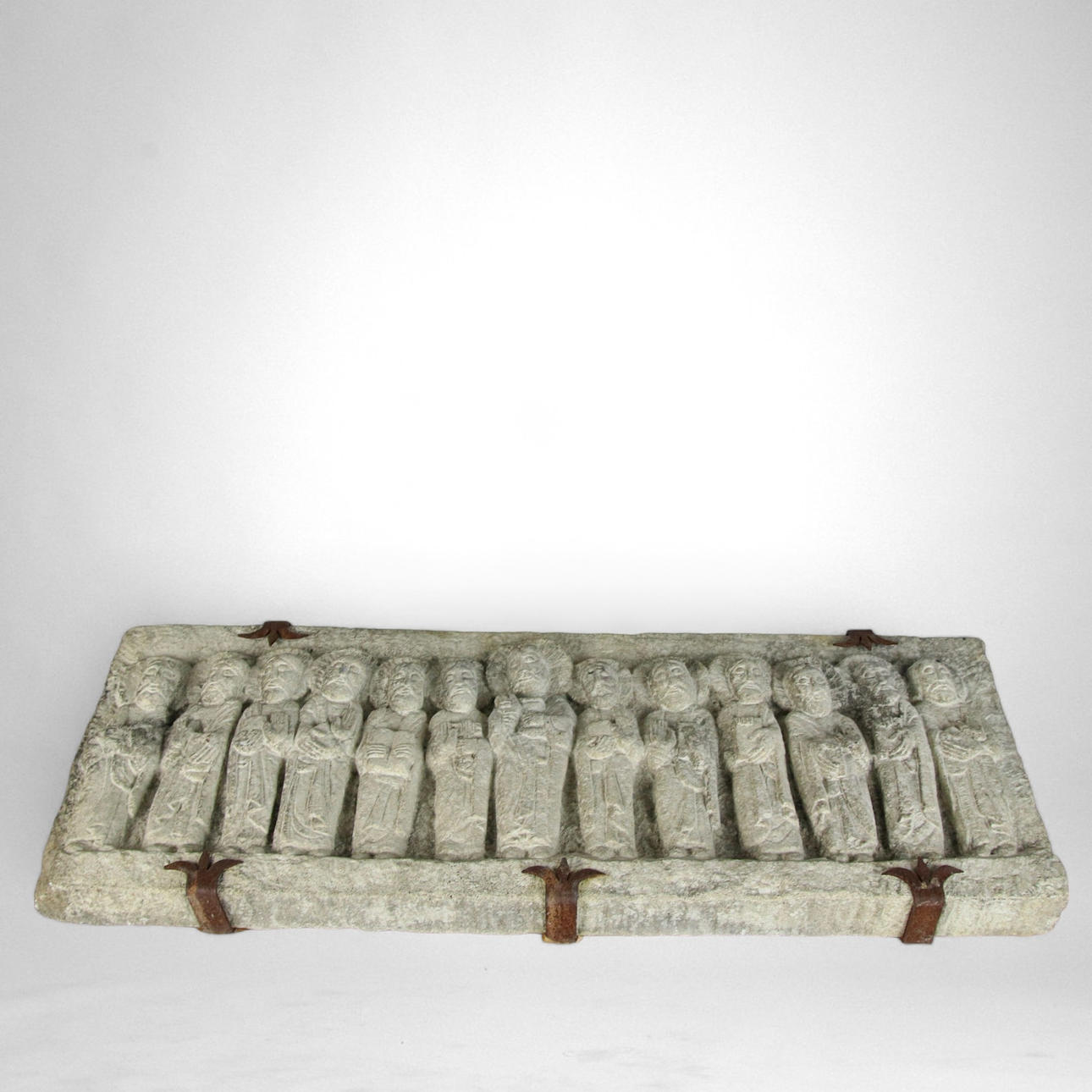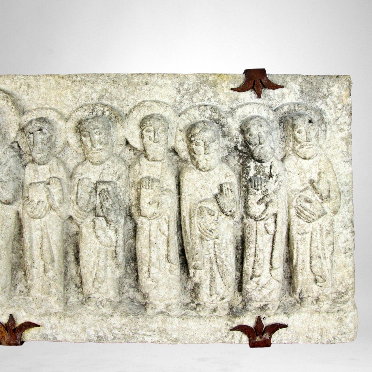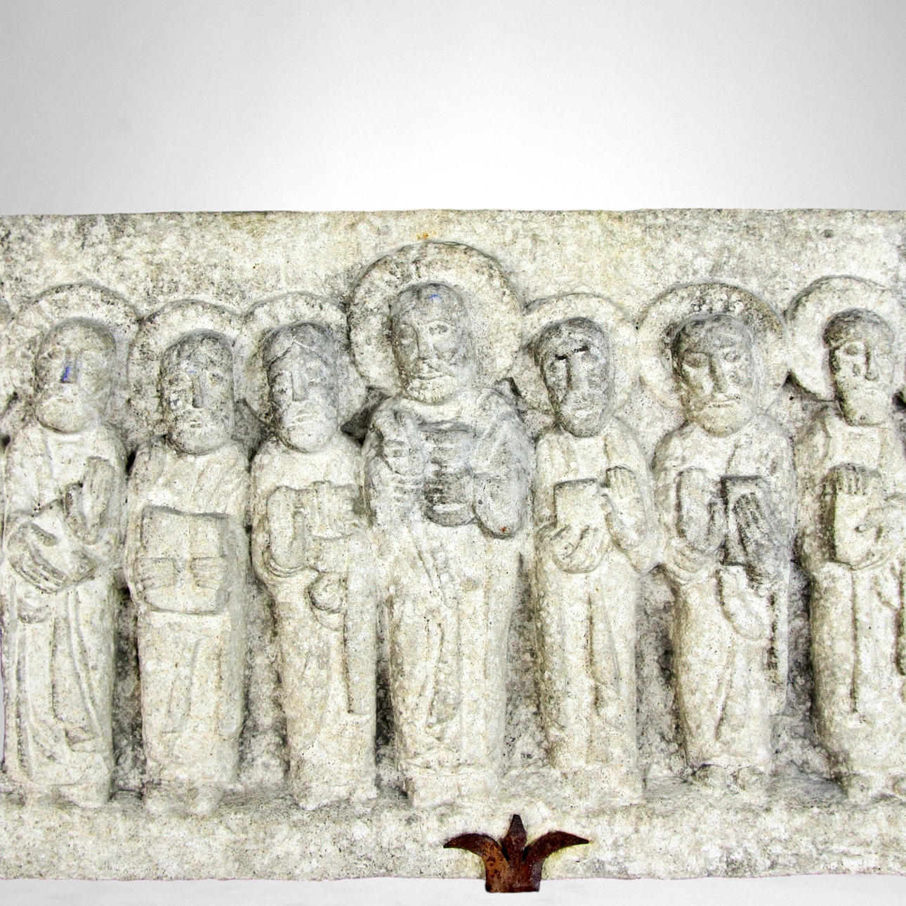 Wandrelief, geschnitzter Stein, Jesus und die Jünger.