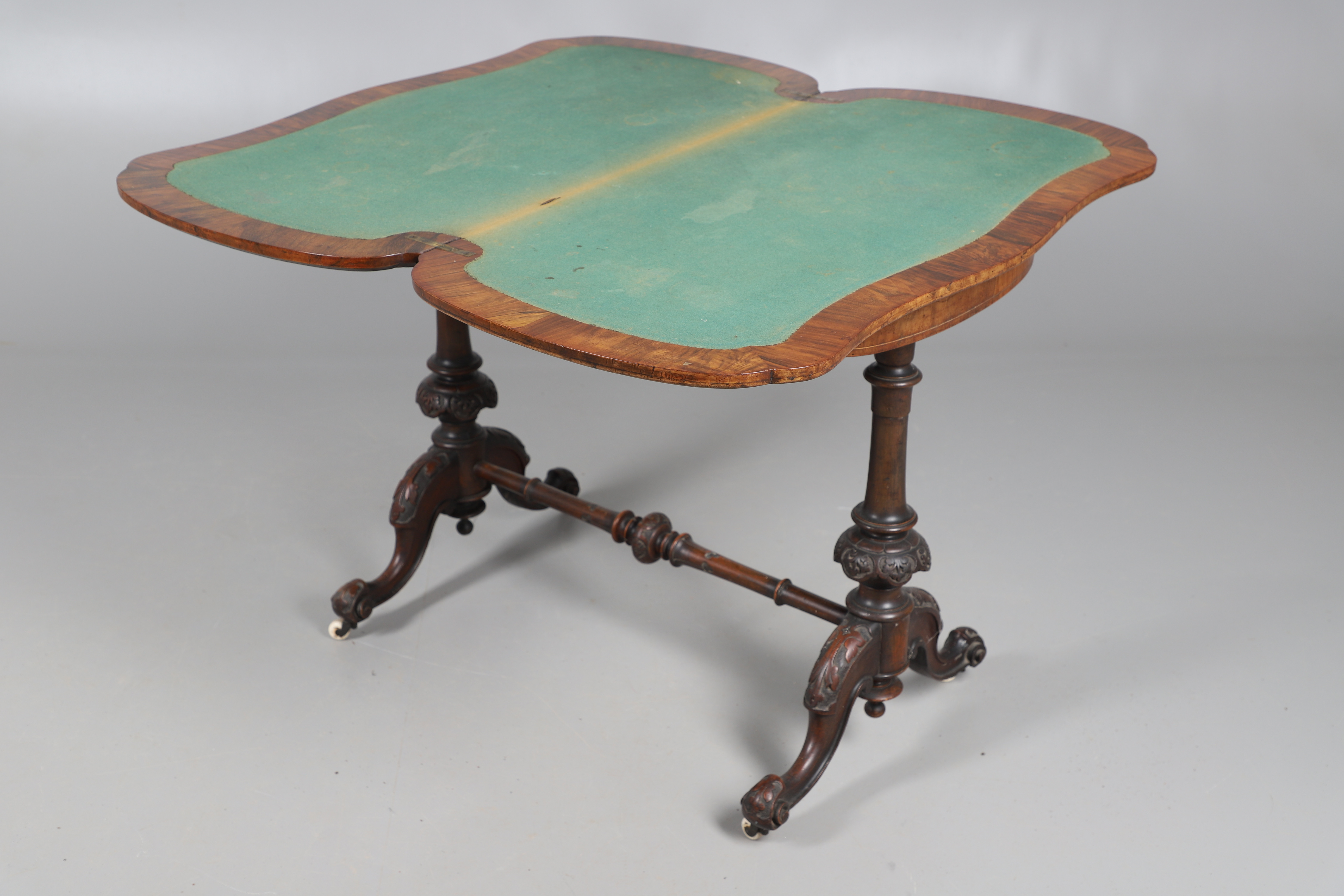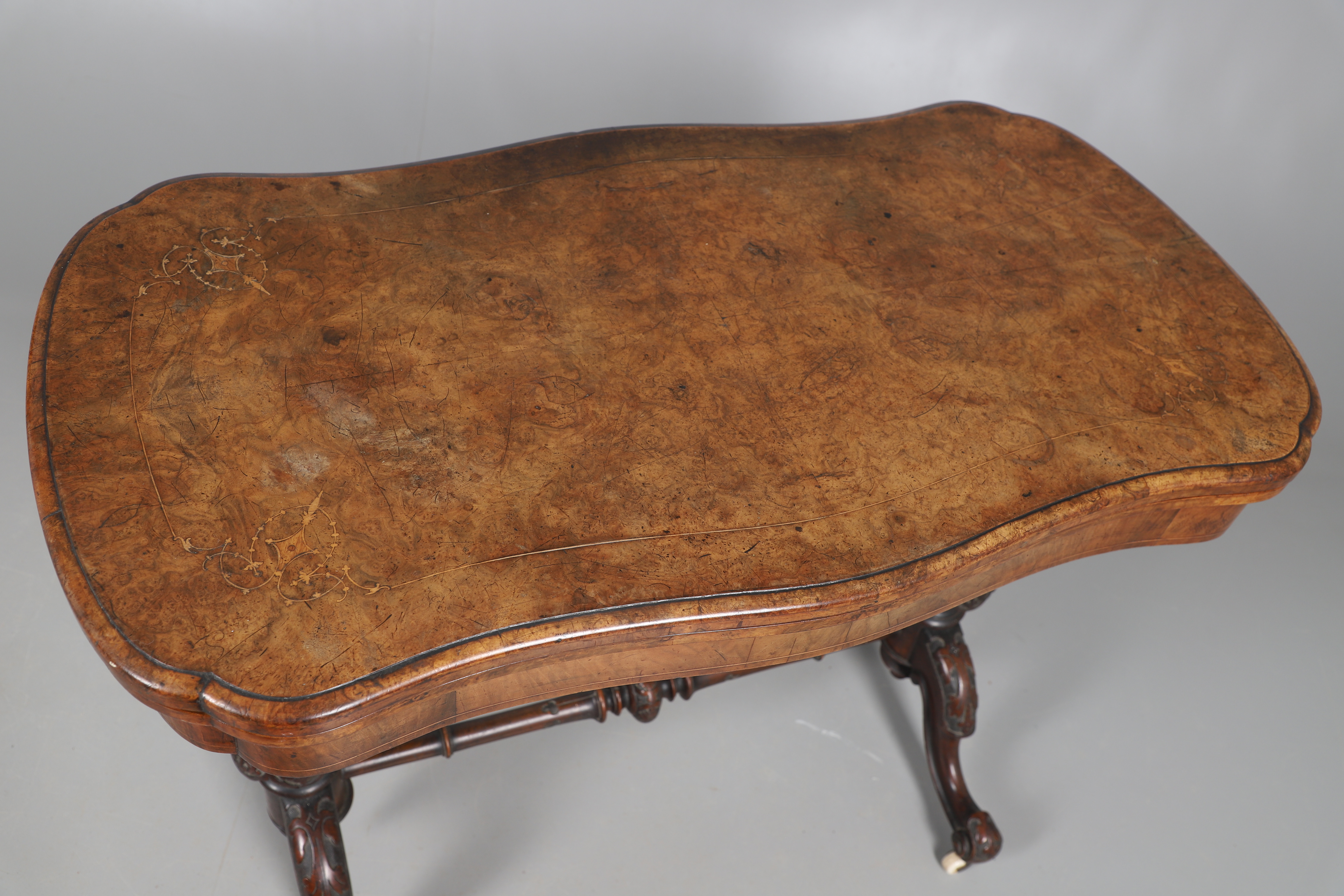 3481929. EIN VIKTORIANISCHER TISCH AUS NUSSBAUMHOLZ MIT EINGELEGTEN KARTEN.