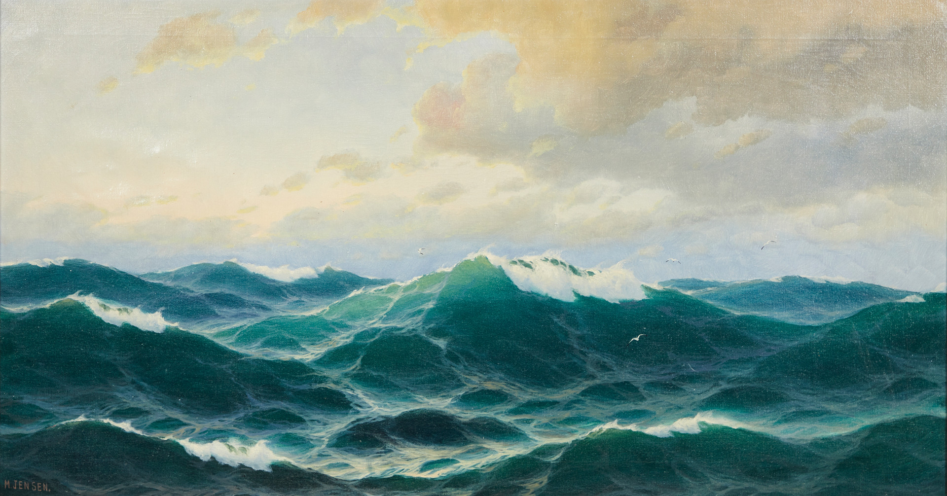3483598. MAX JENSEN (1868-1907). Stürmische See mit Möven.