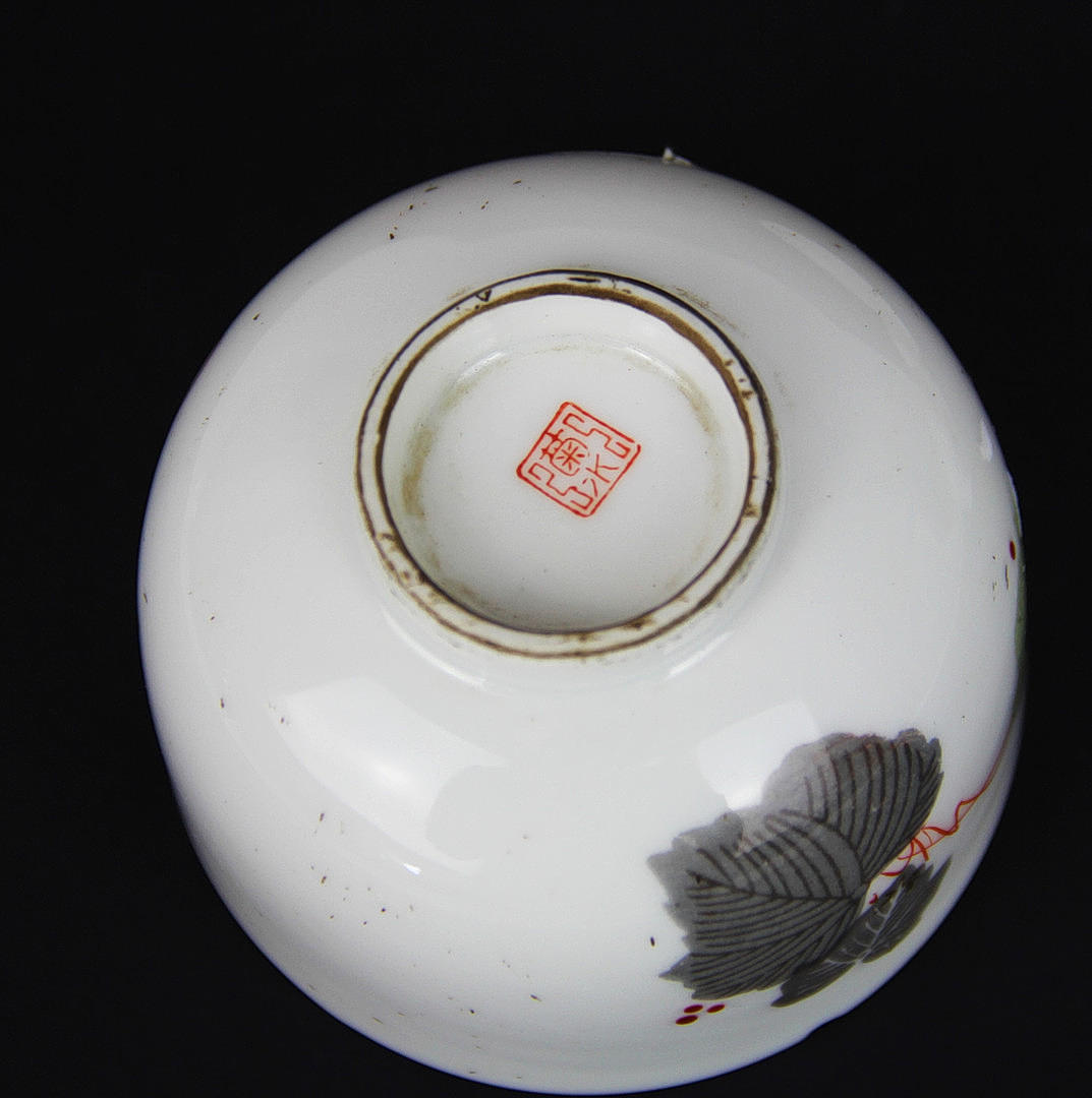 Ein Paar Teeschalen und Deckel aus Porzellan aus chinesischer republikanischer Zeit, Dia. 8 cm, H. 6,5 cm, mit alten Exportsiegeln.