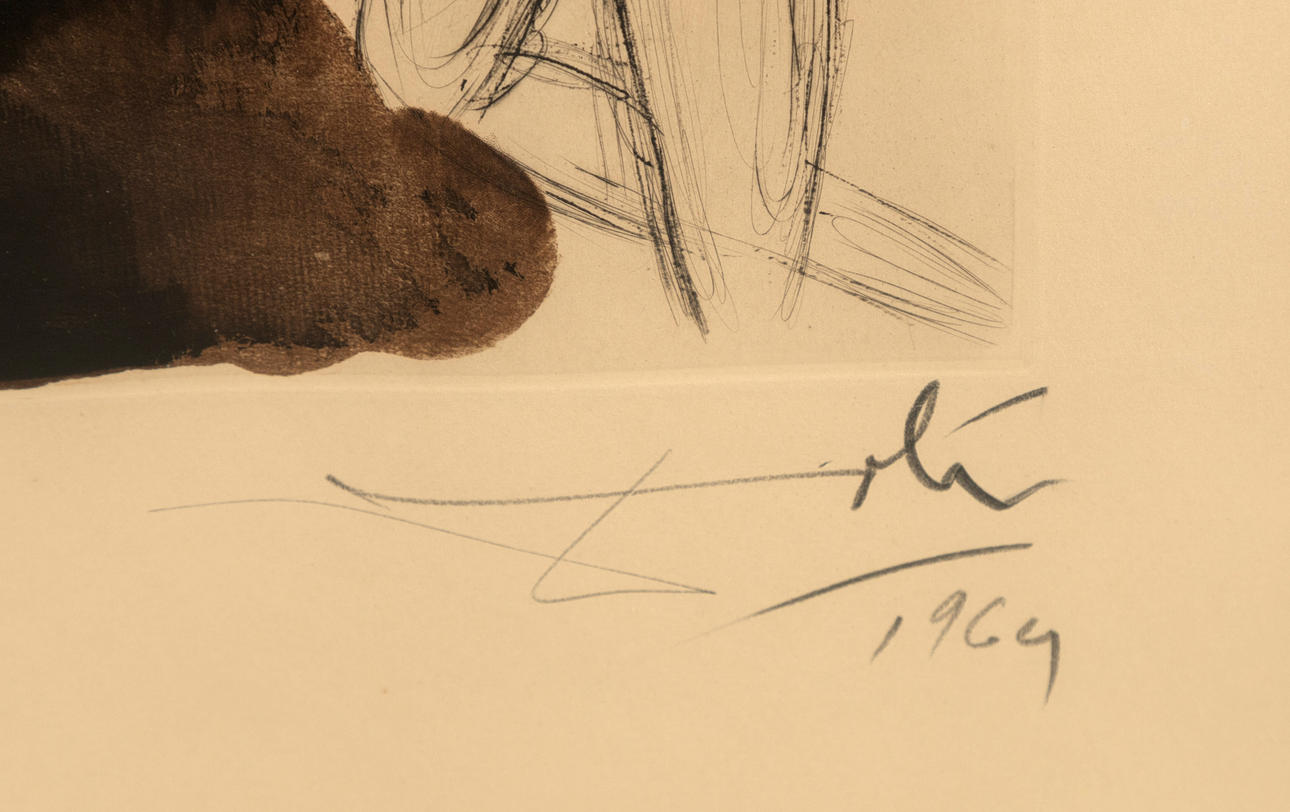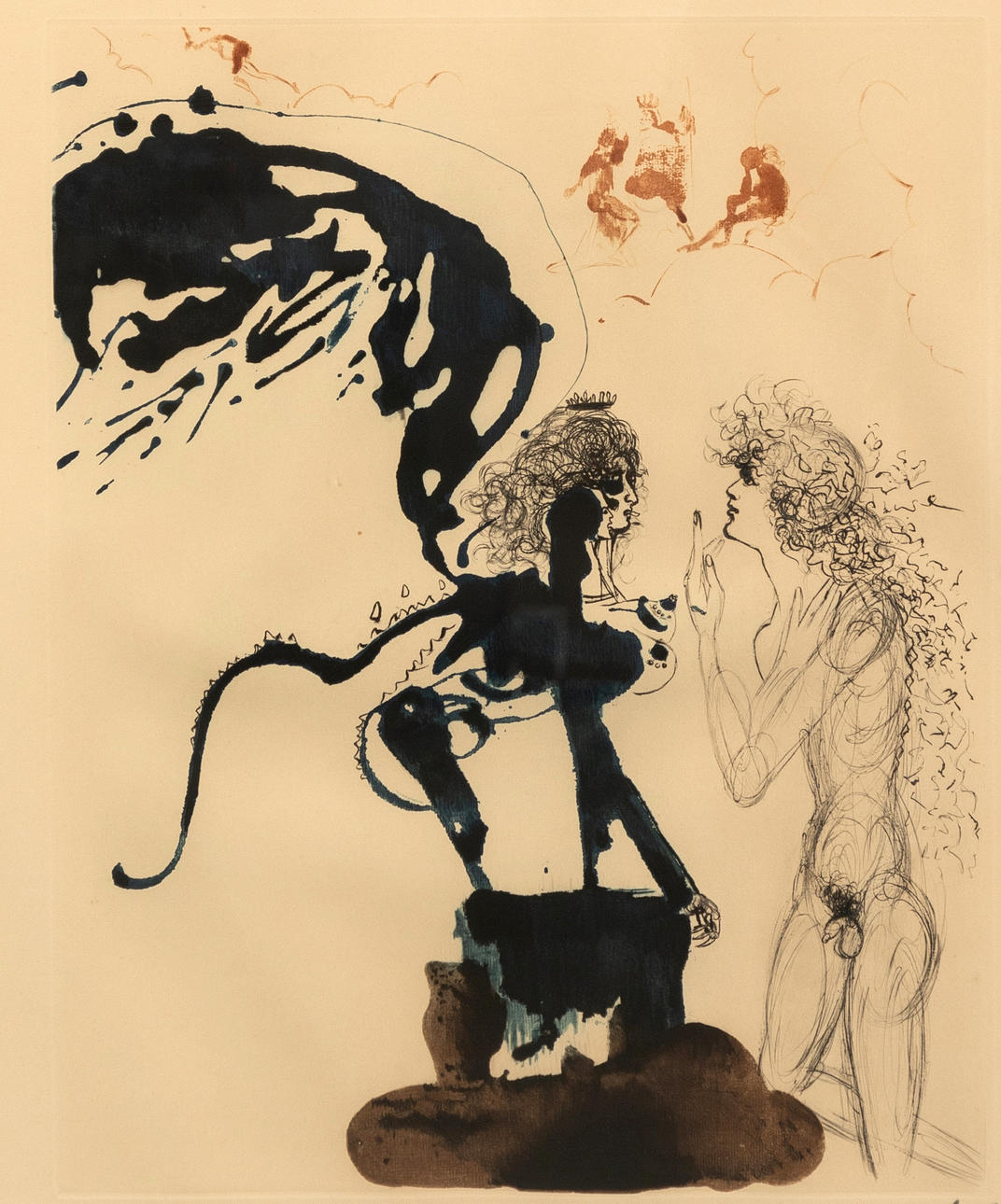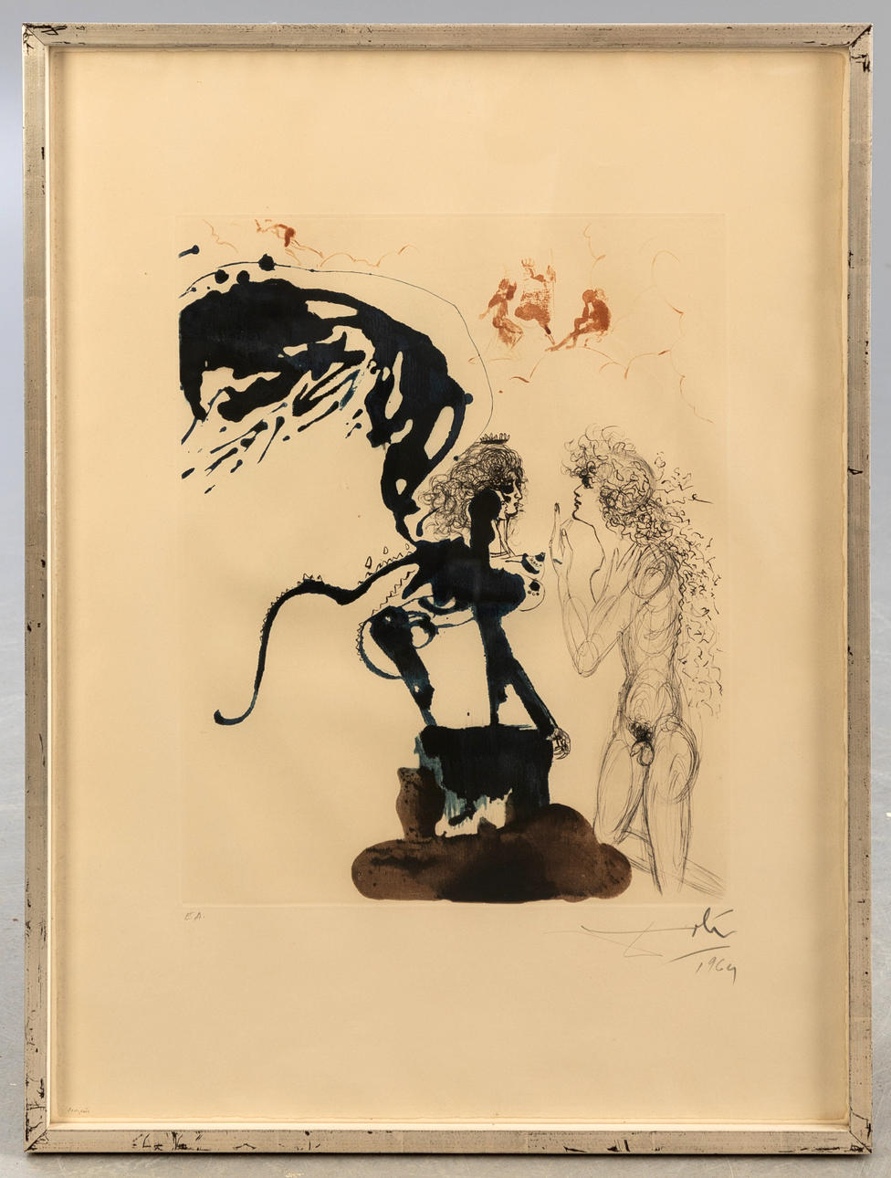 Salvador Dali (1904-1989), Ödipus, Michler/Löpsinger 120, Radierung mit Heliogravure und Kaltnadel, 1964, signiert, datiert und bezeichnet 'E.A.', Künstlerexemplar außerhalb der Auflage, ca. 49 x 39 cm, hinter Glas gerahmt, mit Rahmen ca. 81 x 60 cm.