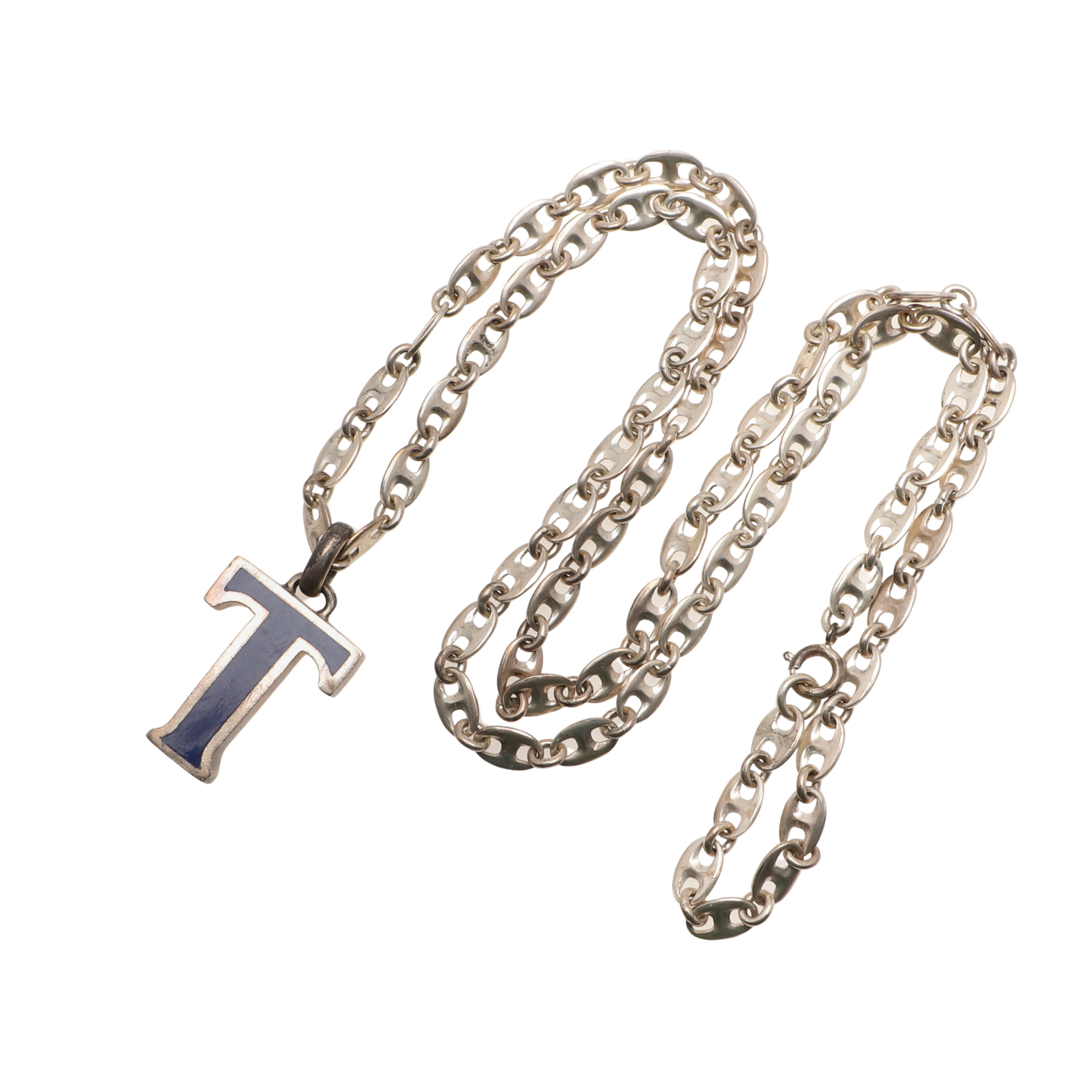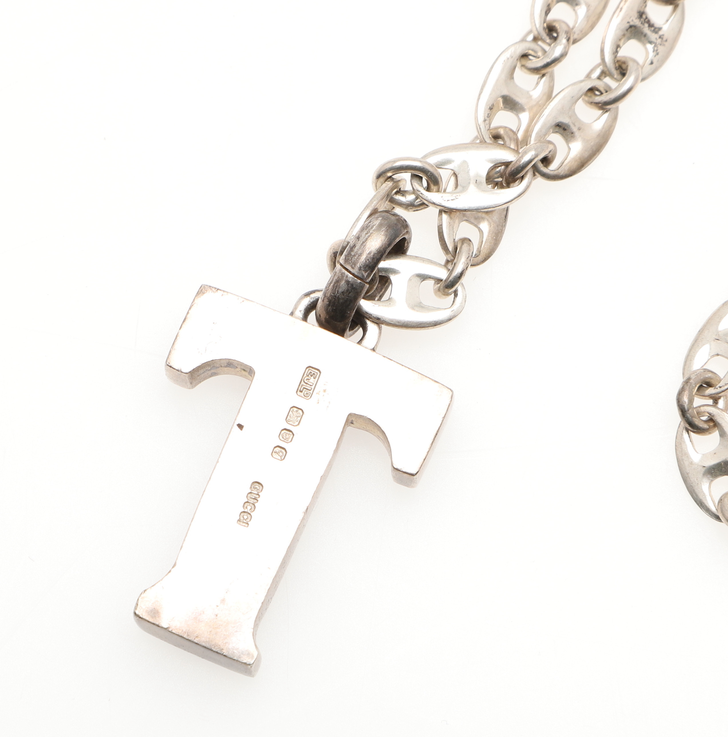 3488818. EIN ANHÄNGER MIT INITIALE „T“ AUS SILBER UND EMAILLE VON GUCCI.