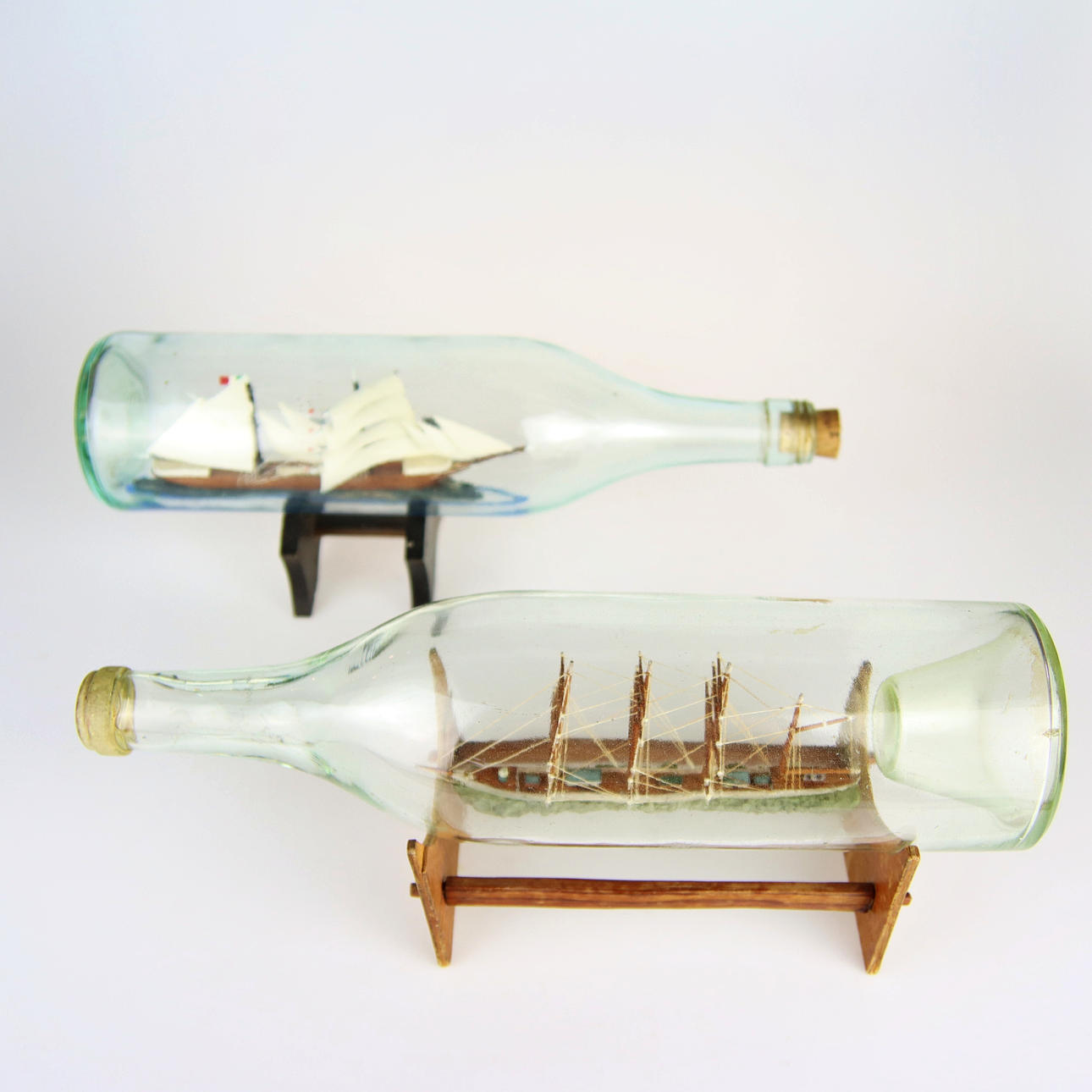 FLASCHENVERSAND, 2 Stück Ein Glas, Holz, 20. Jahrhundert.