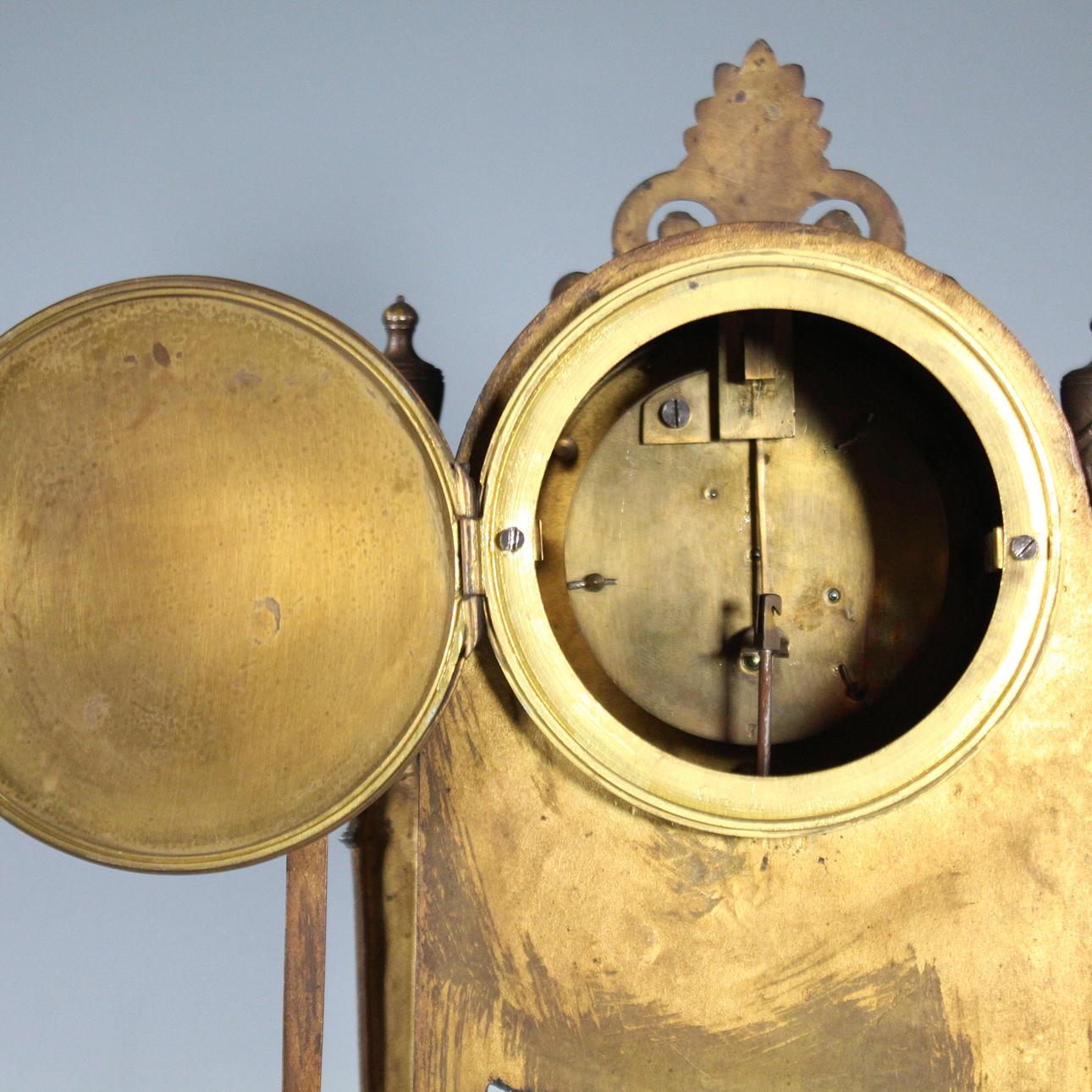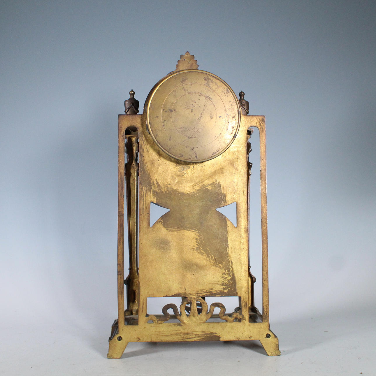 Jugendstil Kaminuhr / Tischuhr, Metall, Maße ca.: H. 40 cm, B. 21,5 cm, T12,5 cm.