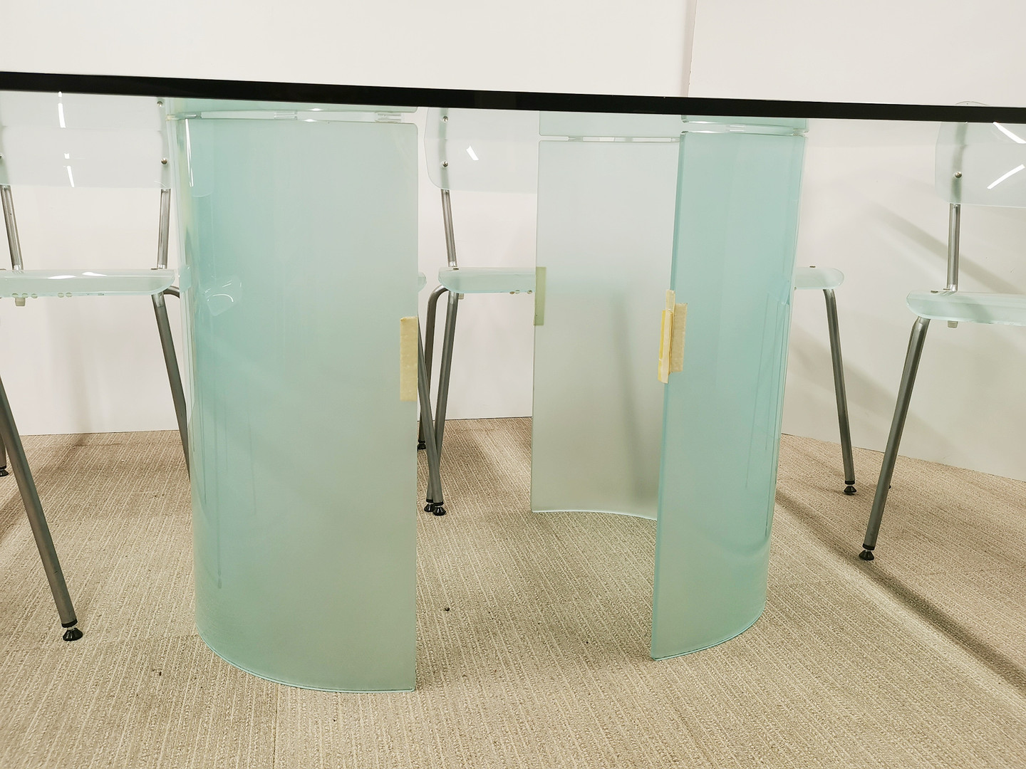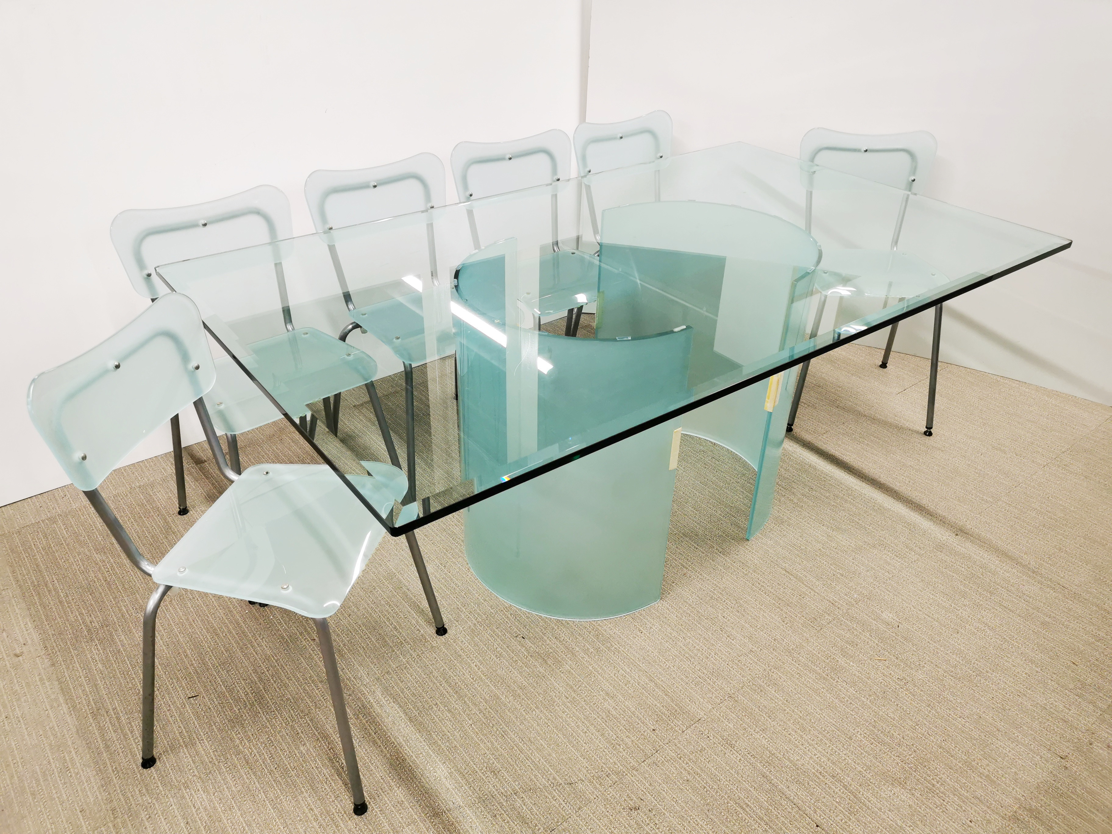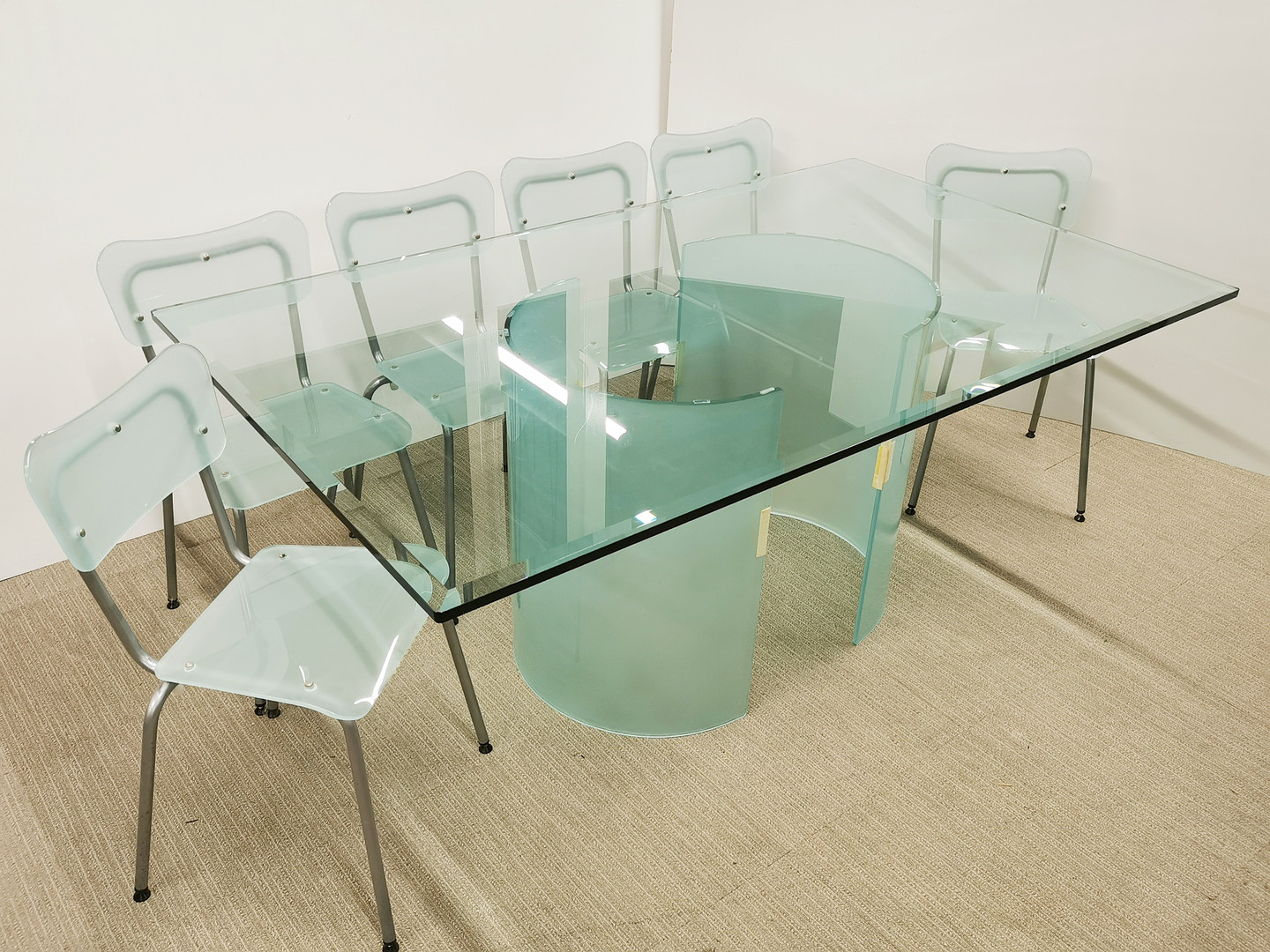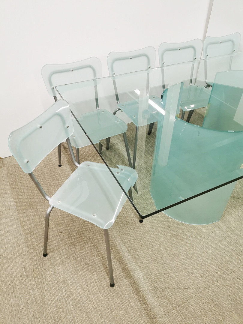 3500762. ESSTISCH AUS MILCHGLAS UND SECHS STÜHLEN.