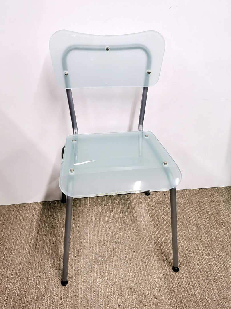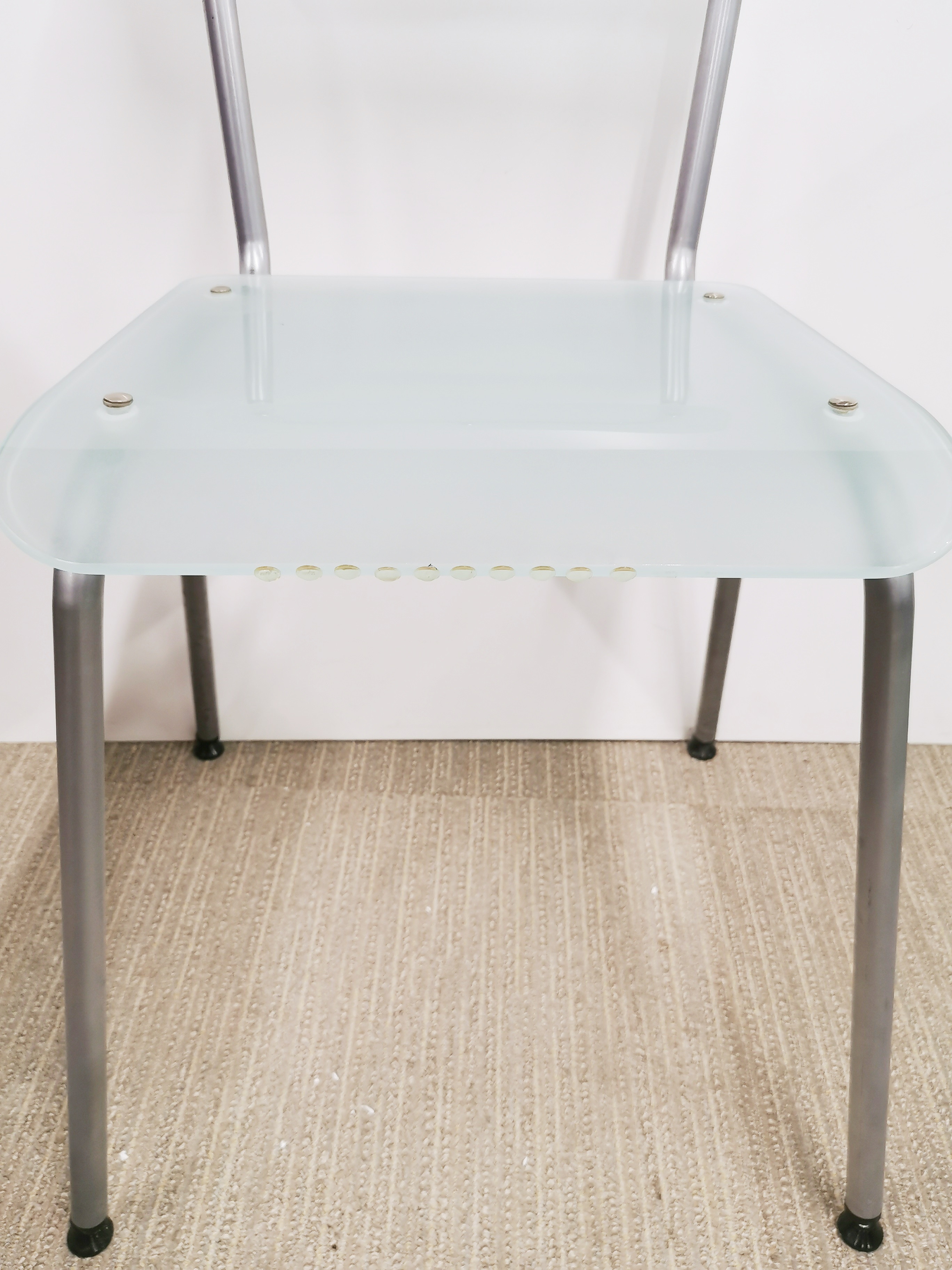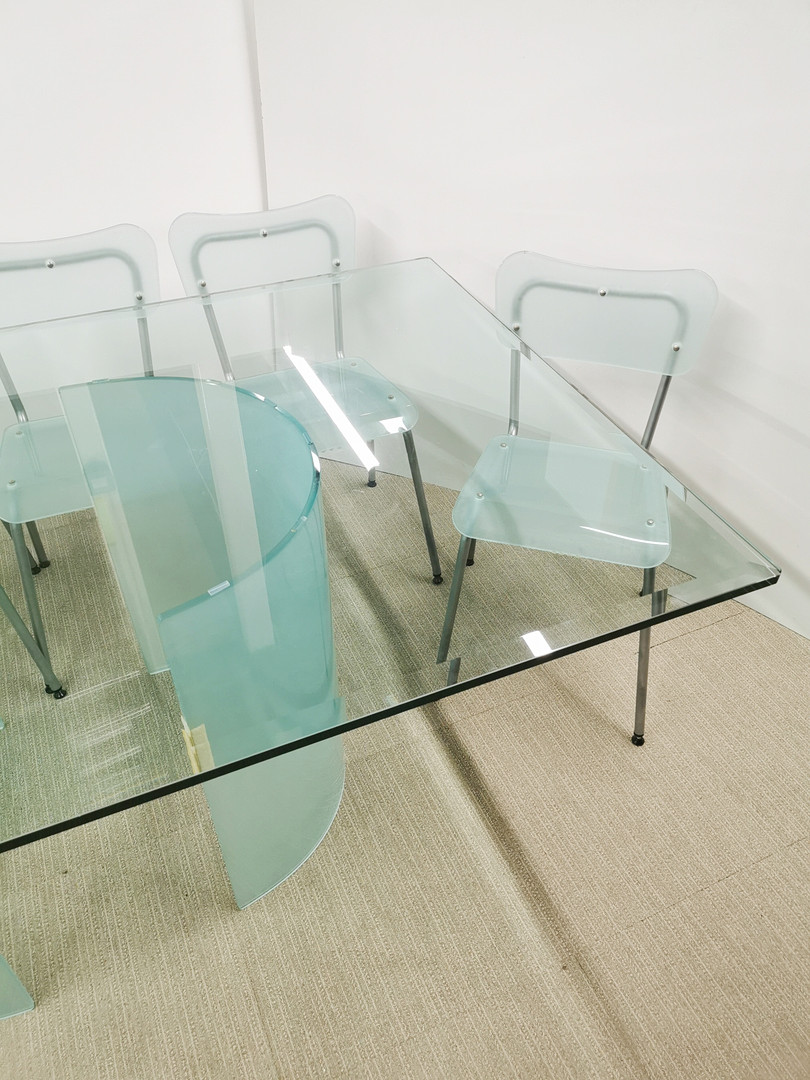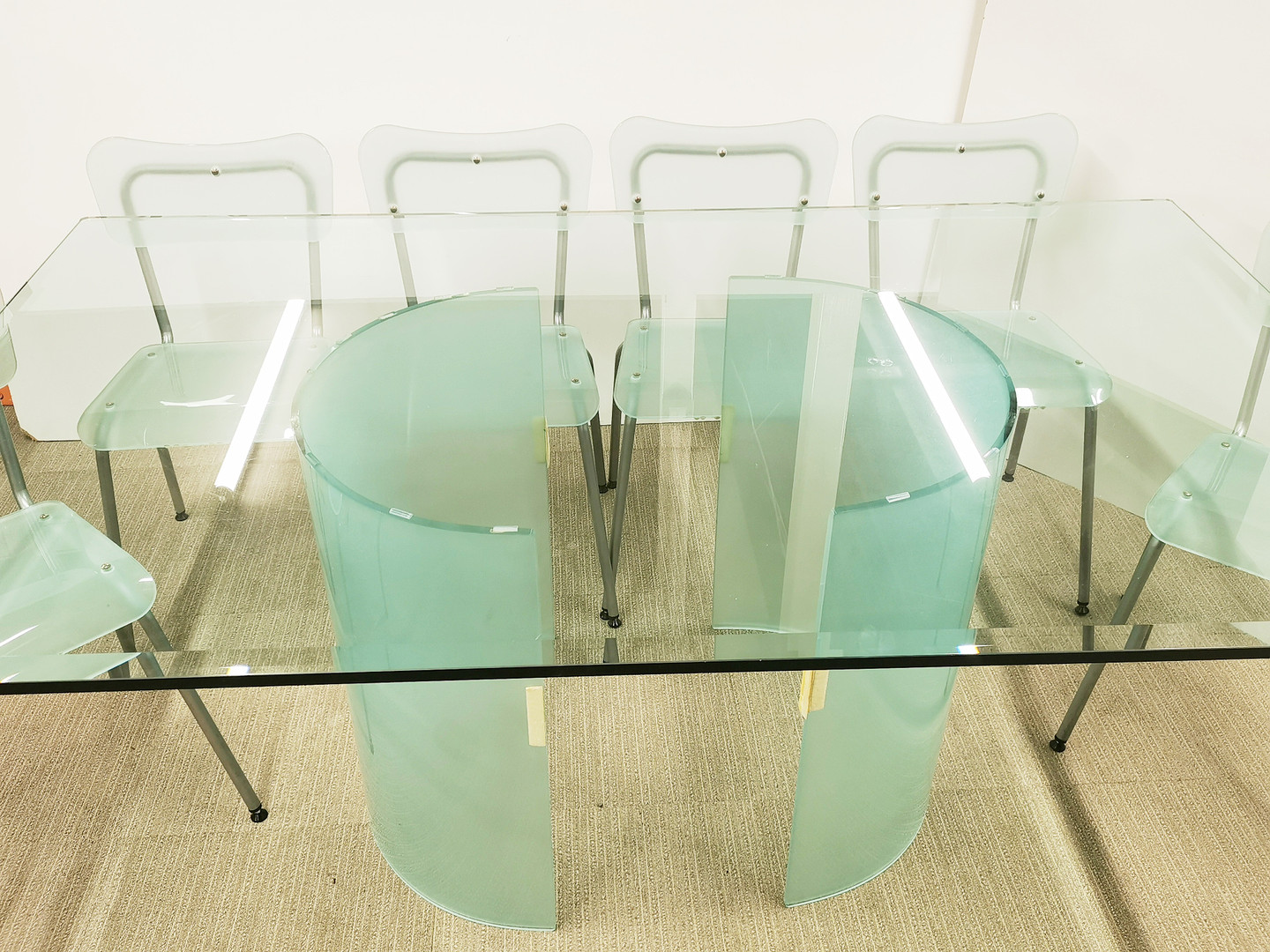 3500762. ESSTISCH AUS MILCHGLAS UND SECHS STÜHLEN.