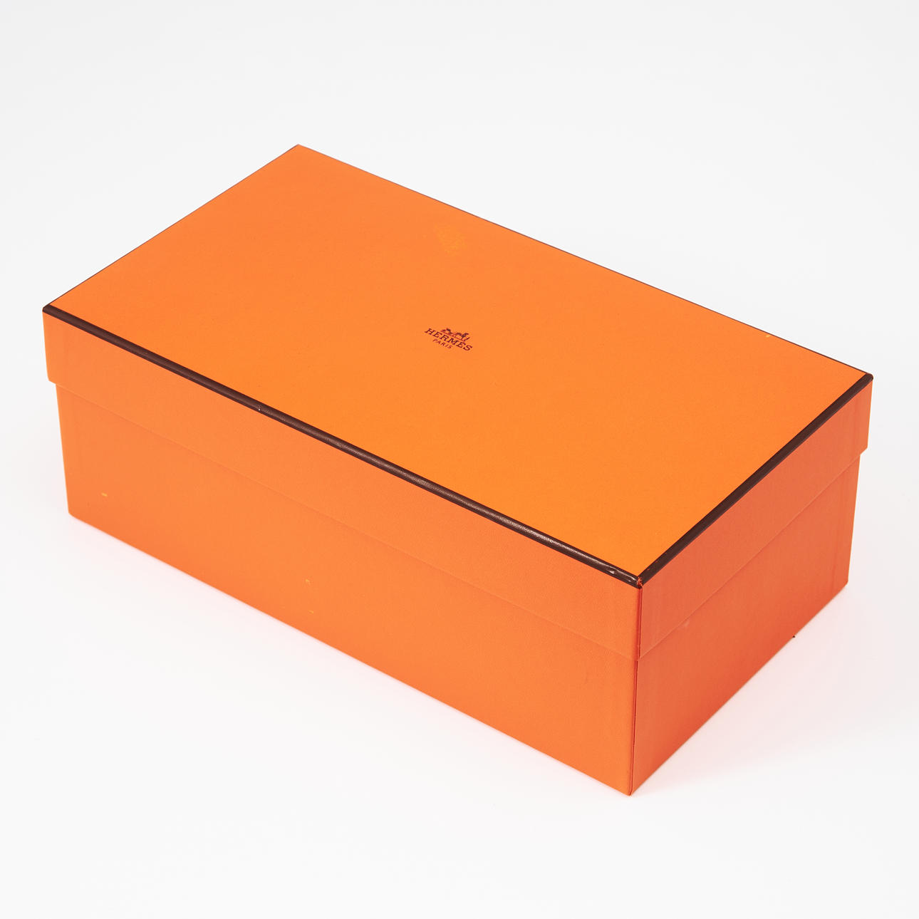 Leichte Gebrauchsspuren mit Flecken auf der Unterseite und Abnutzungsspuren auf der Innenseite der Sohle, Schuhkarton mit Spuren.
