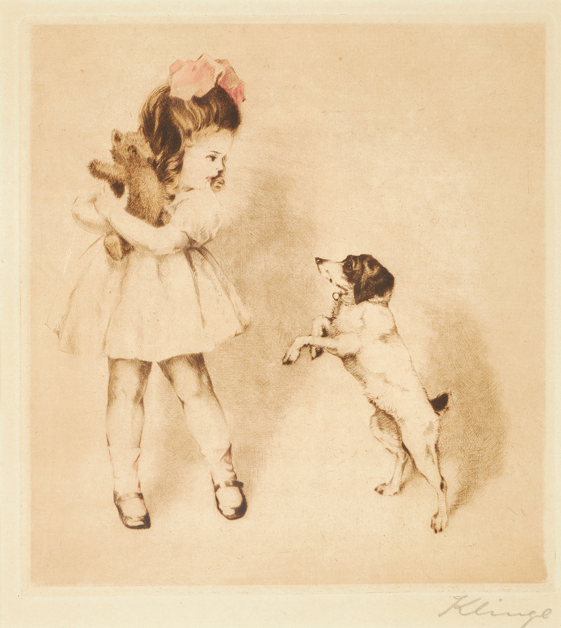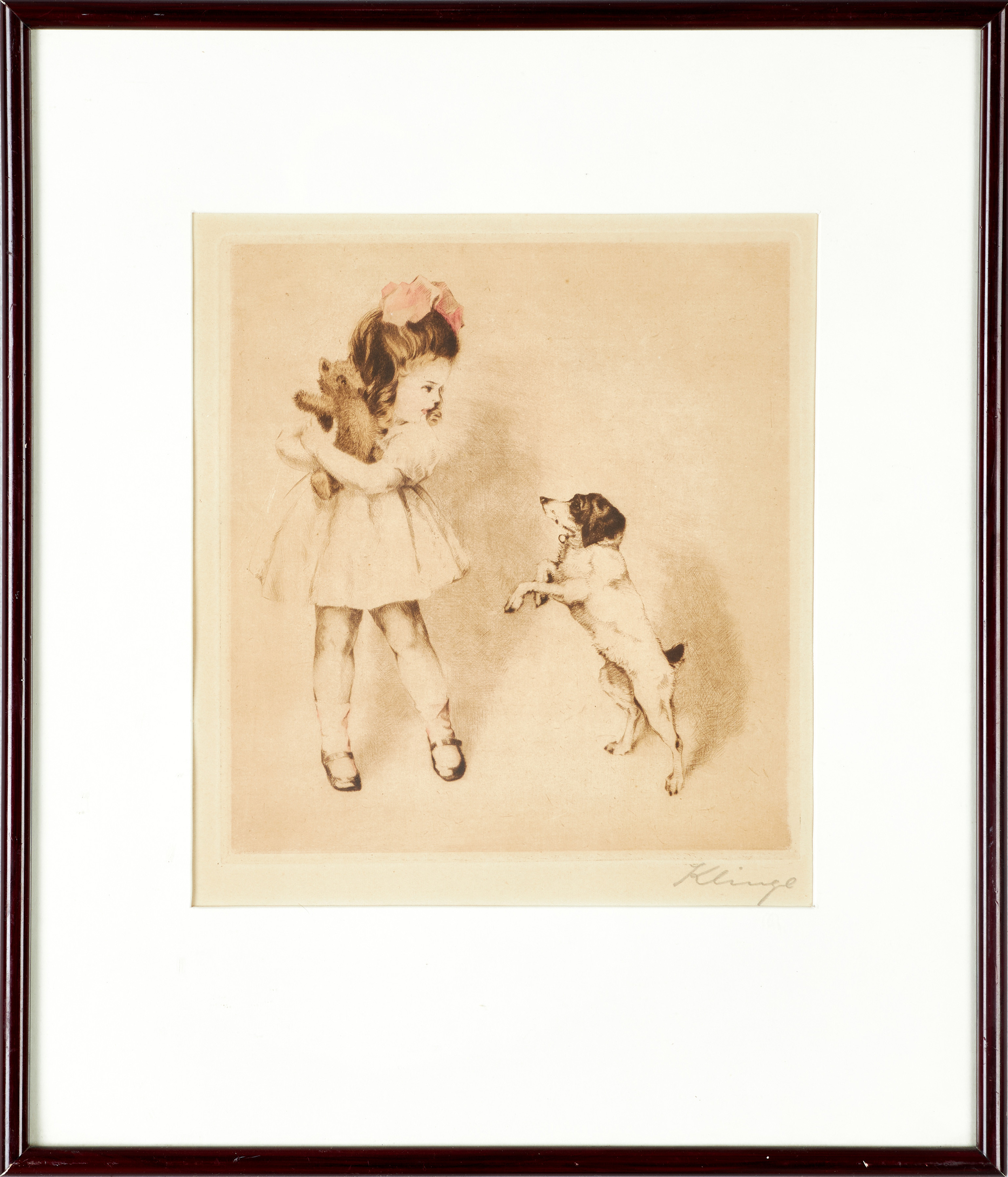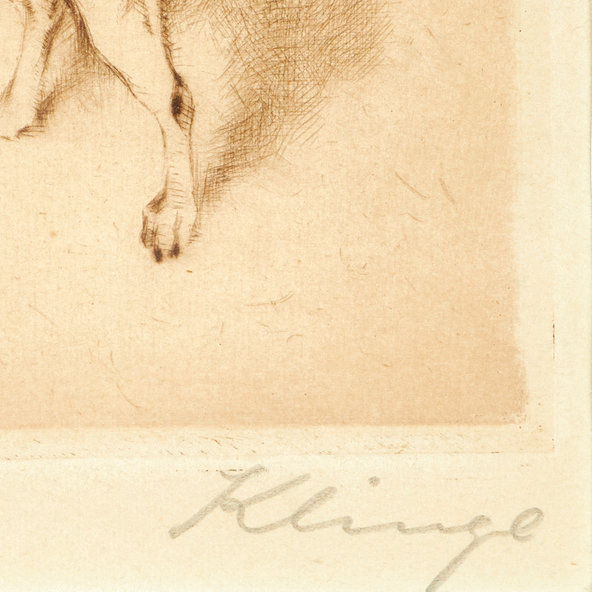 3501953. MAX KLINGER (1857-1920). Mädchen und Hund, signiert Klinger, Radierung.