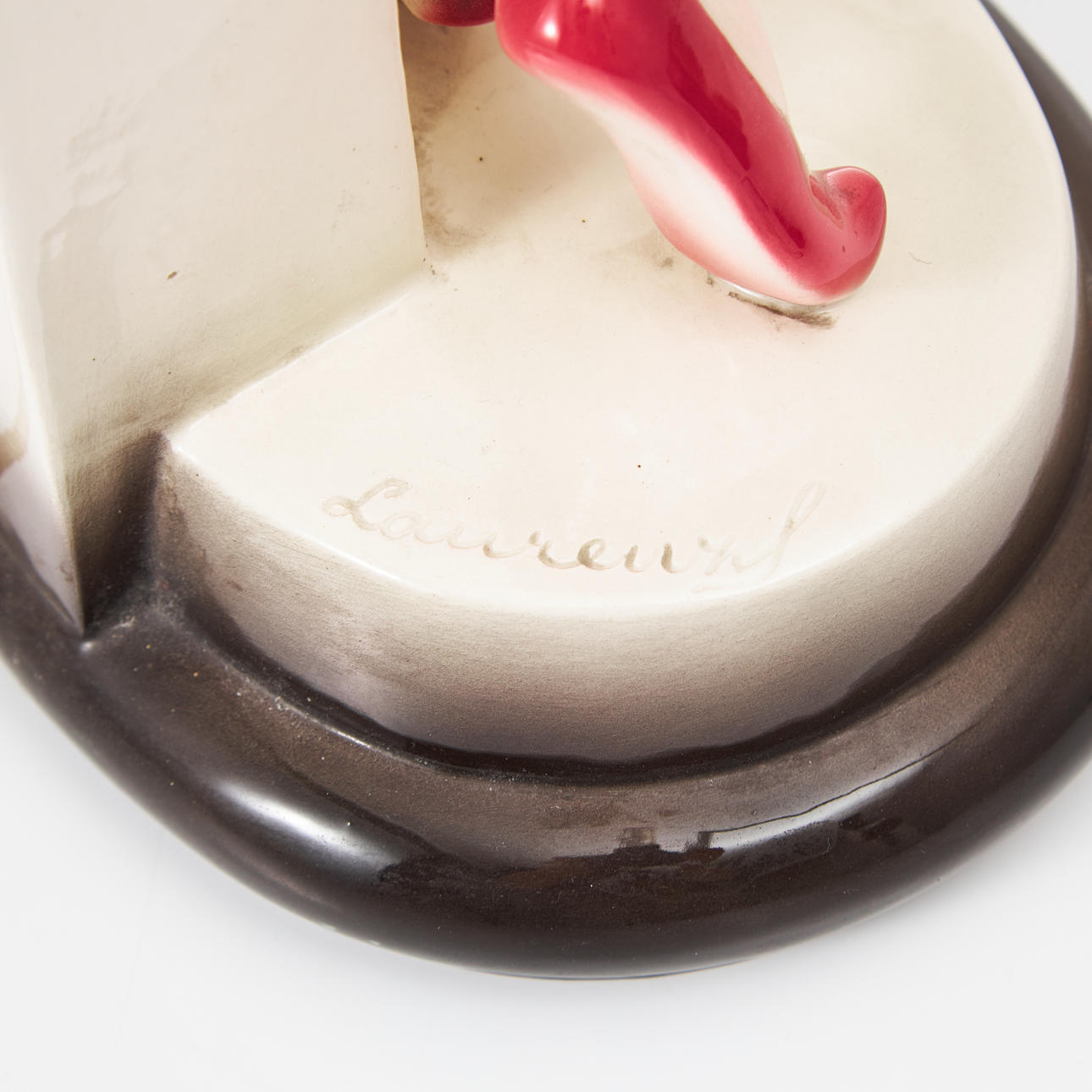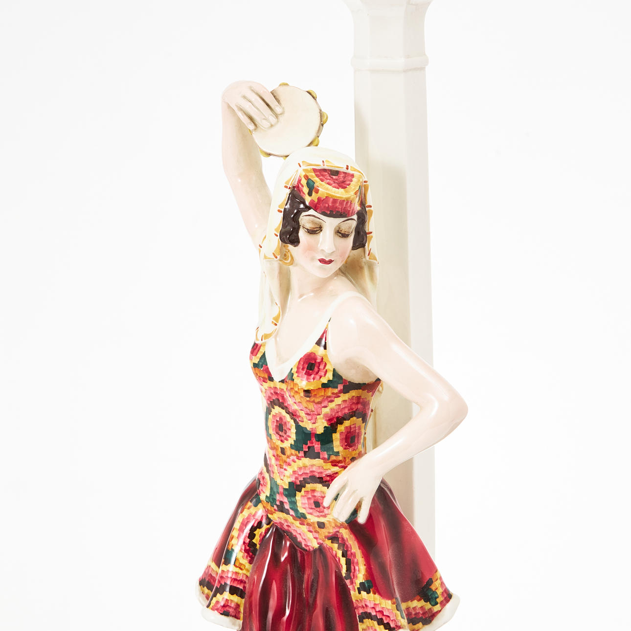 Figur in Form einer Frau mit Tamburin, auf dem Sockel signiert Lorenzl.