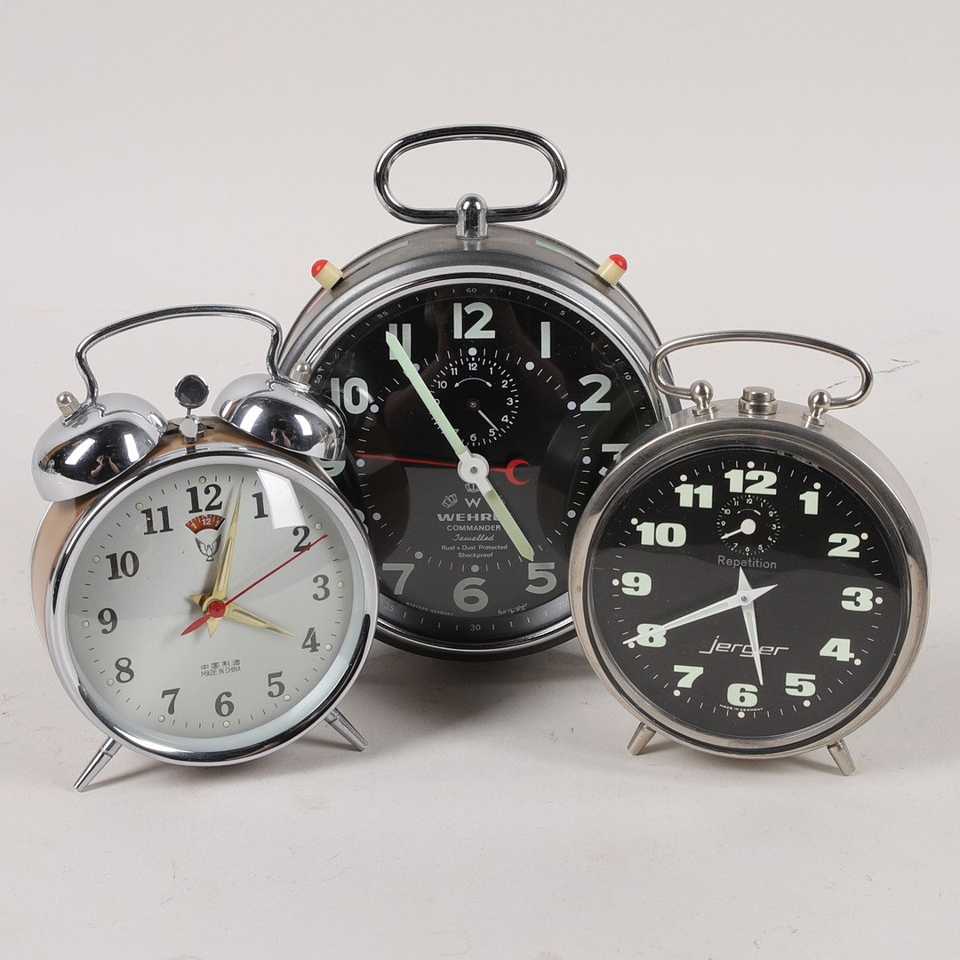 3505537. TISCHUHR/WECKER, 3 Stück Jerger, unter anderem.