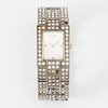 Quarz, Mineralglas, Dekor mit Glassteinen, integriertes Glied, Breite 21 mm, Box, zusätzliche Gliederstücke.