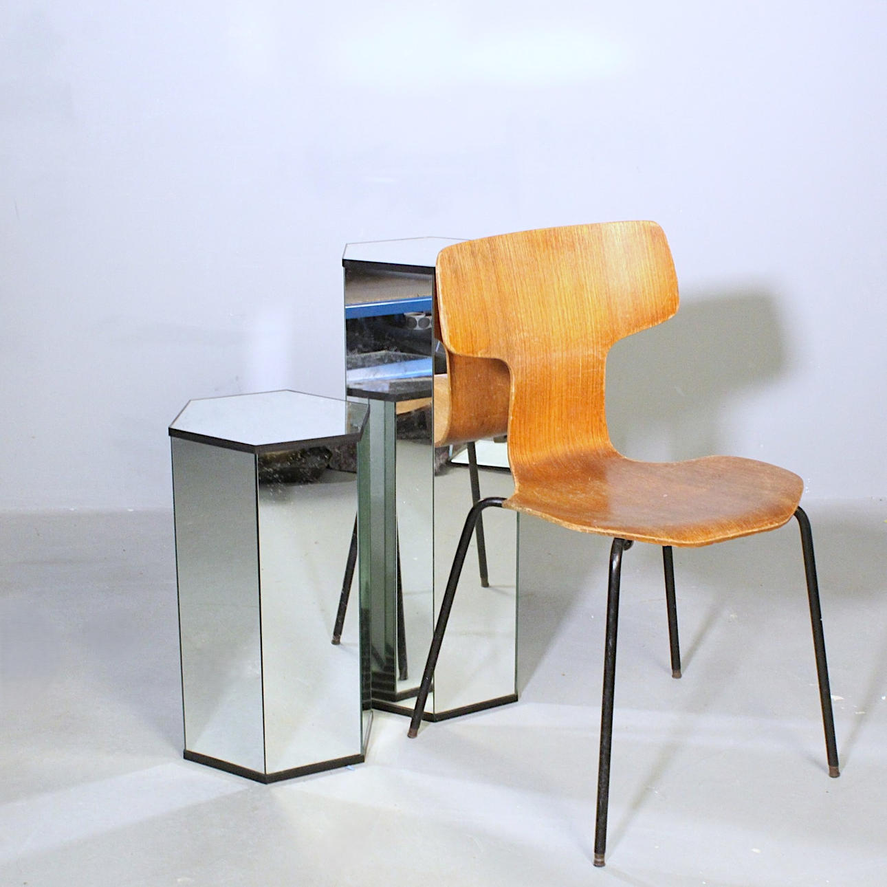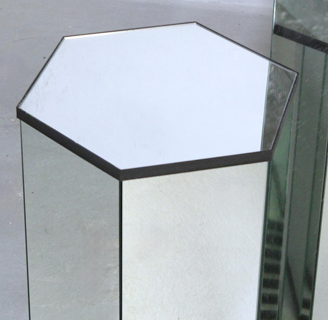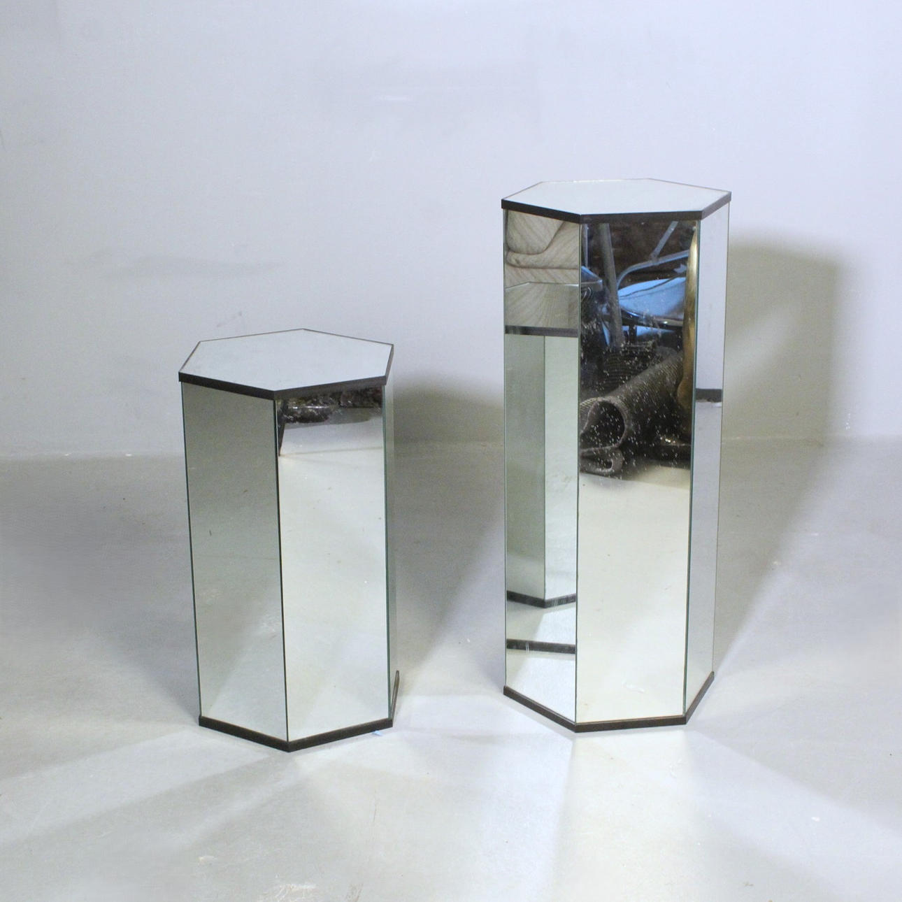 Zwei Spiegelsäulen / Pflanzsäulen / Beistelltische, sechseckige Form,
