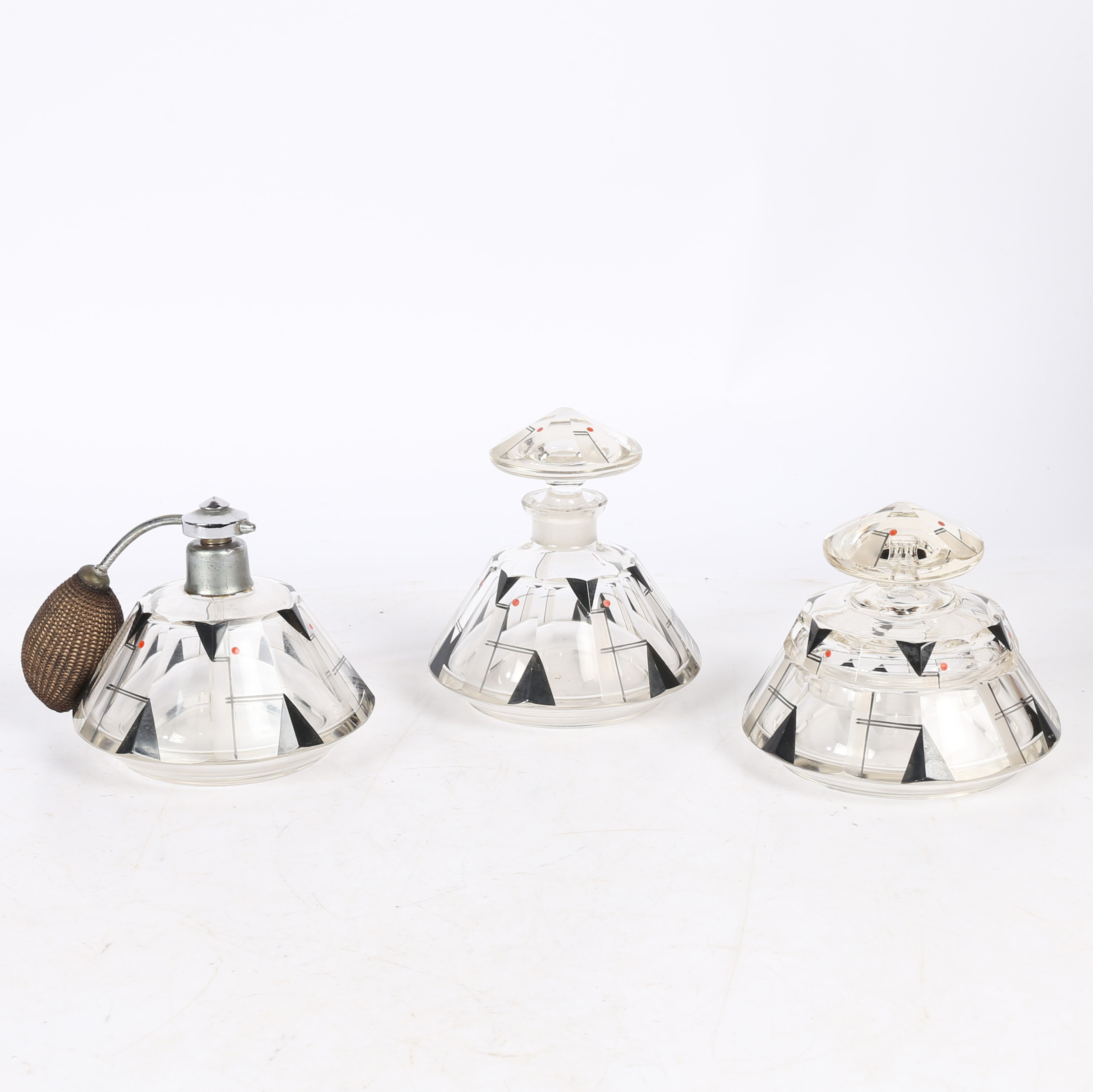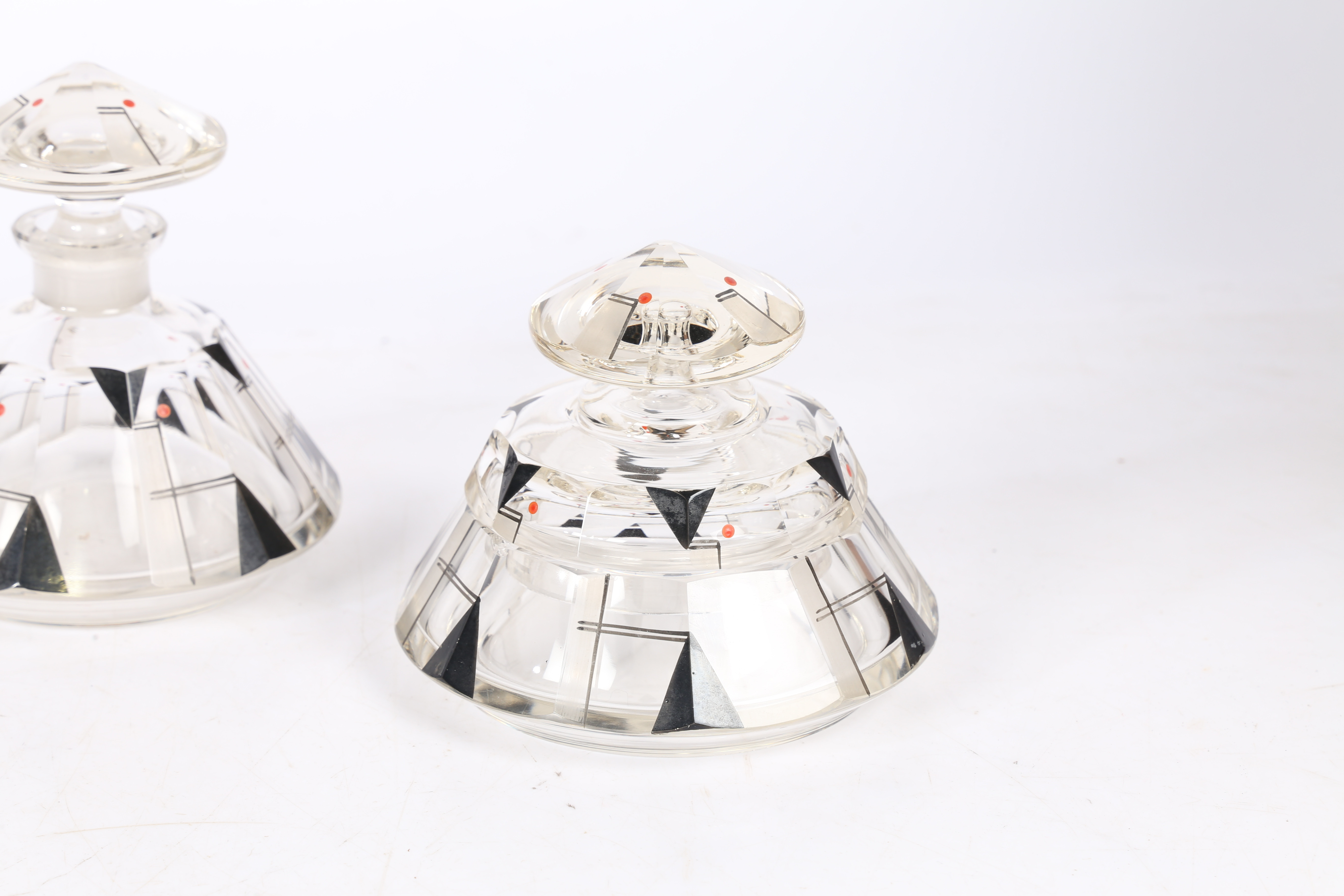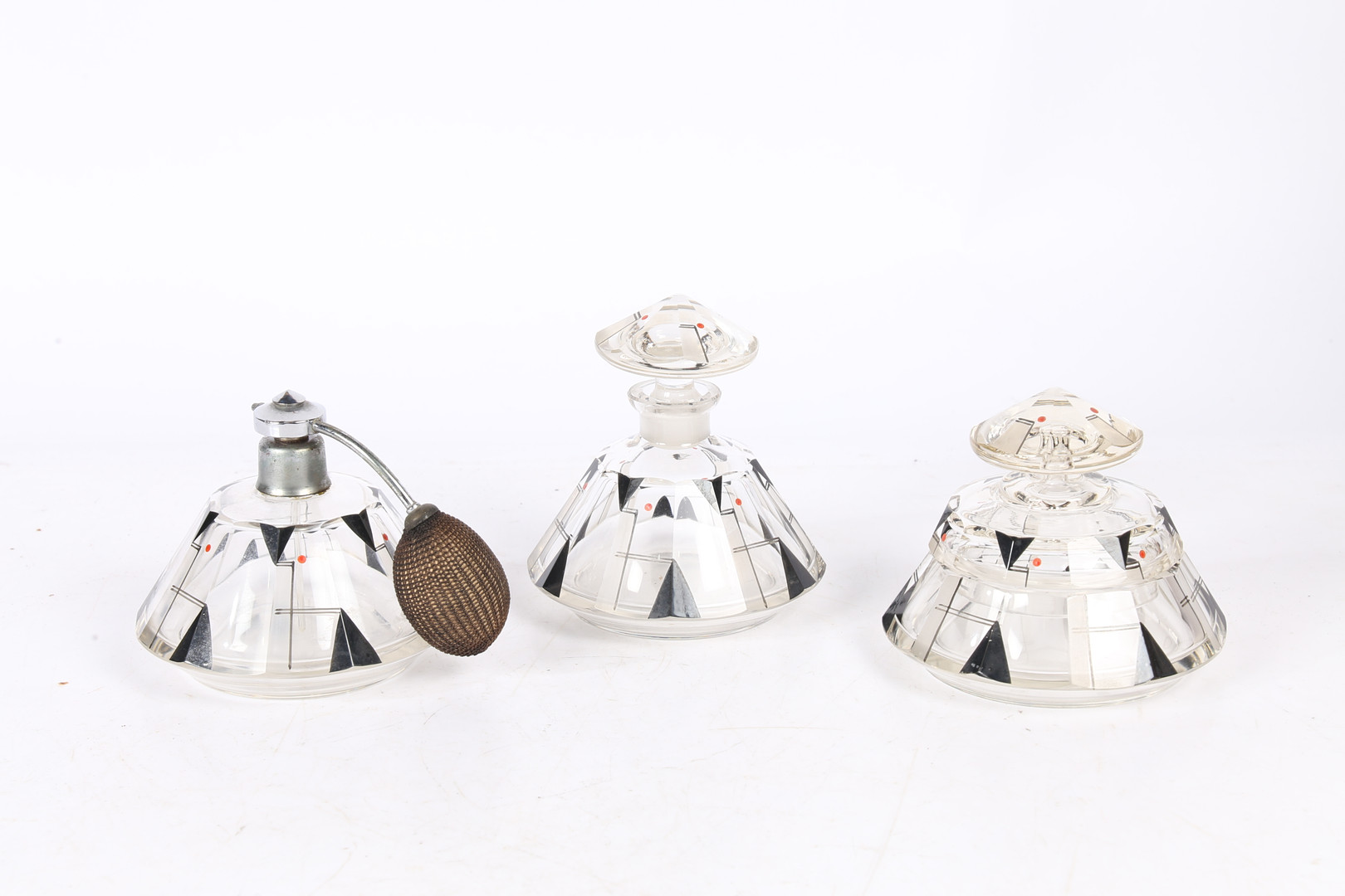 3510964. EIN ART-DECO-SCHMINKTISCH-SET AUS GLAS.