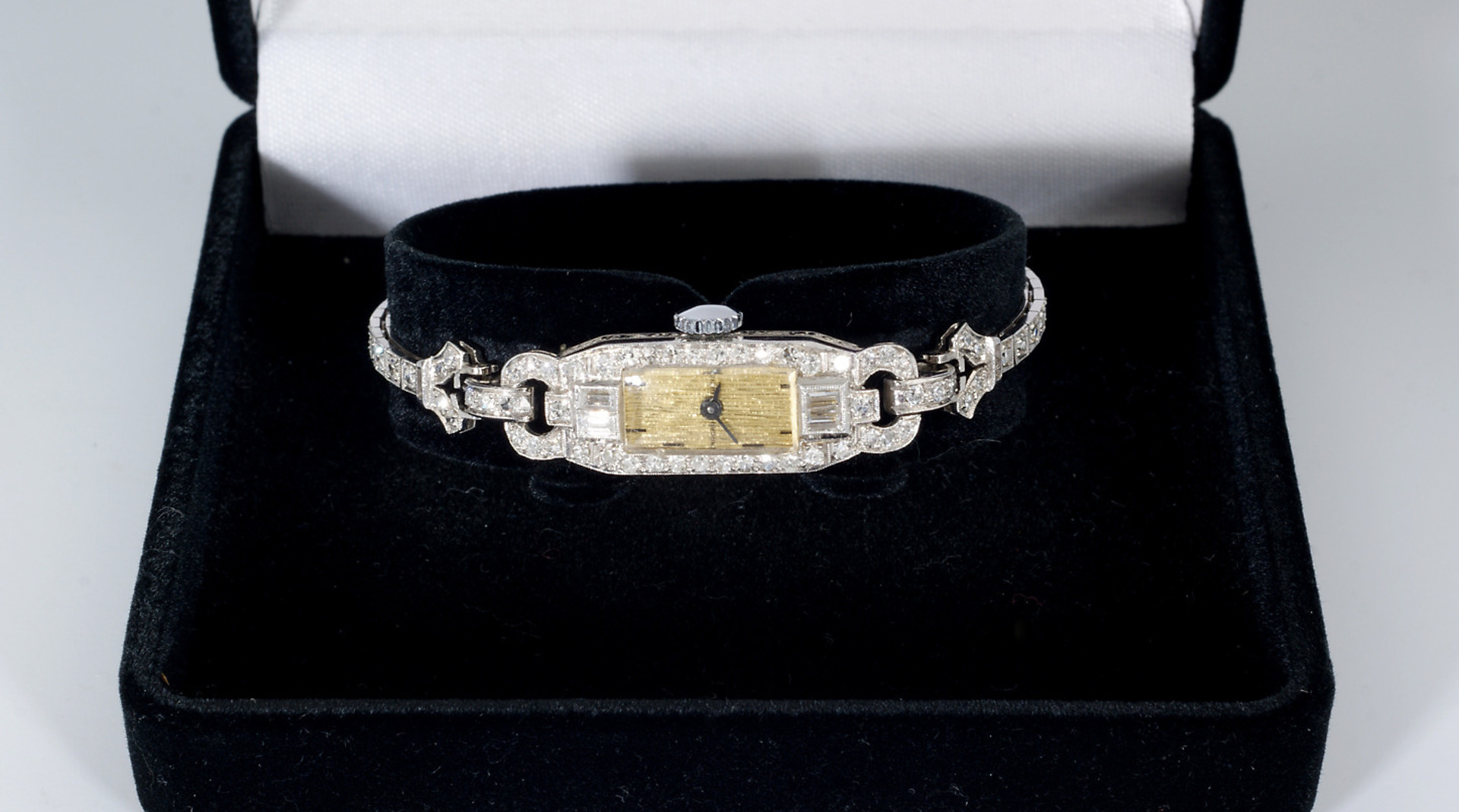 351251. SCHMUCKUHR. Arcar Genéve, Diamantbesatz, Weißgold oder Platin ca. 16,9 g.