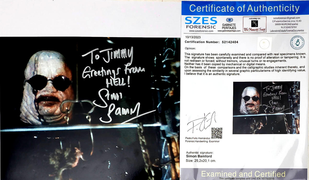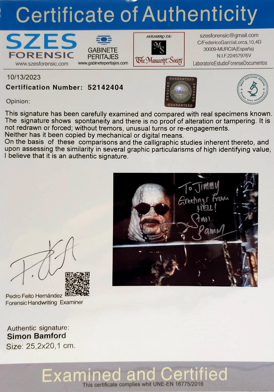 SIMON BAMFORD (HELLRAISER). EIGENHÄNDIGES AUTOGRAMM ZUR FOTOGRAFIE.