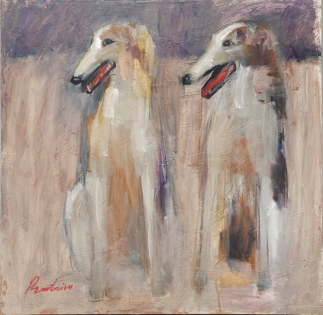 3516211. RAHIM EL. MISCHTECHNIK AUF HOLZ „BARSOI-HUNDE“.