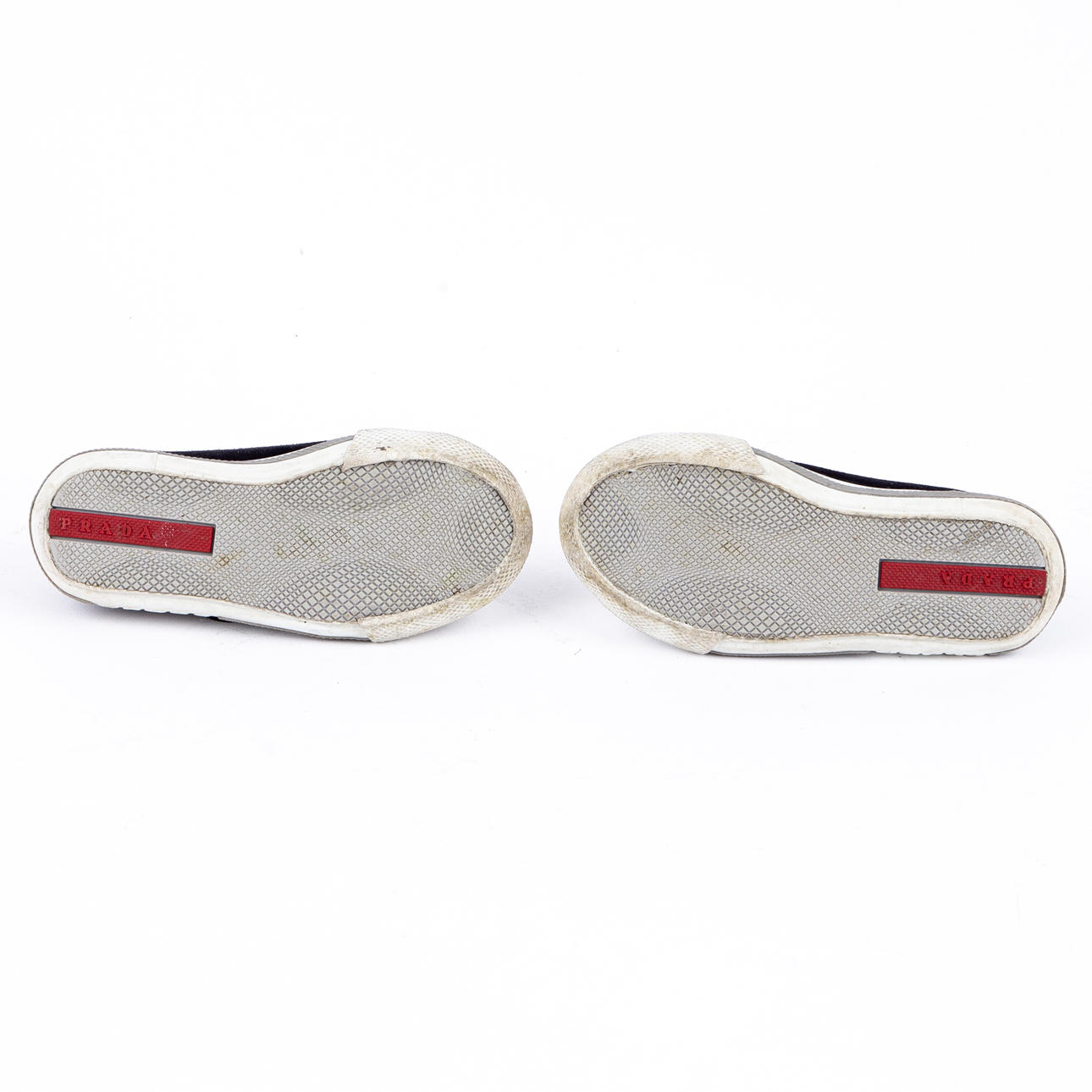 Prada Sneaker, dunkelblaues Veloursleder, mit Leder gefüttert, Größe 25, Innenmaße ca. 17 cm.