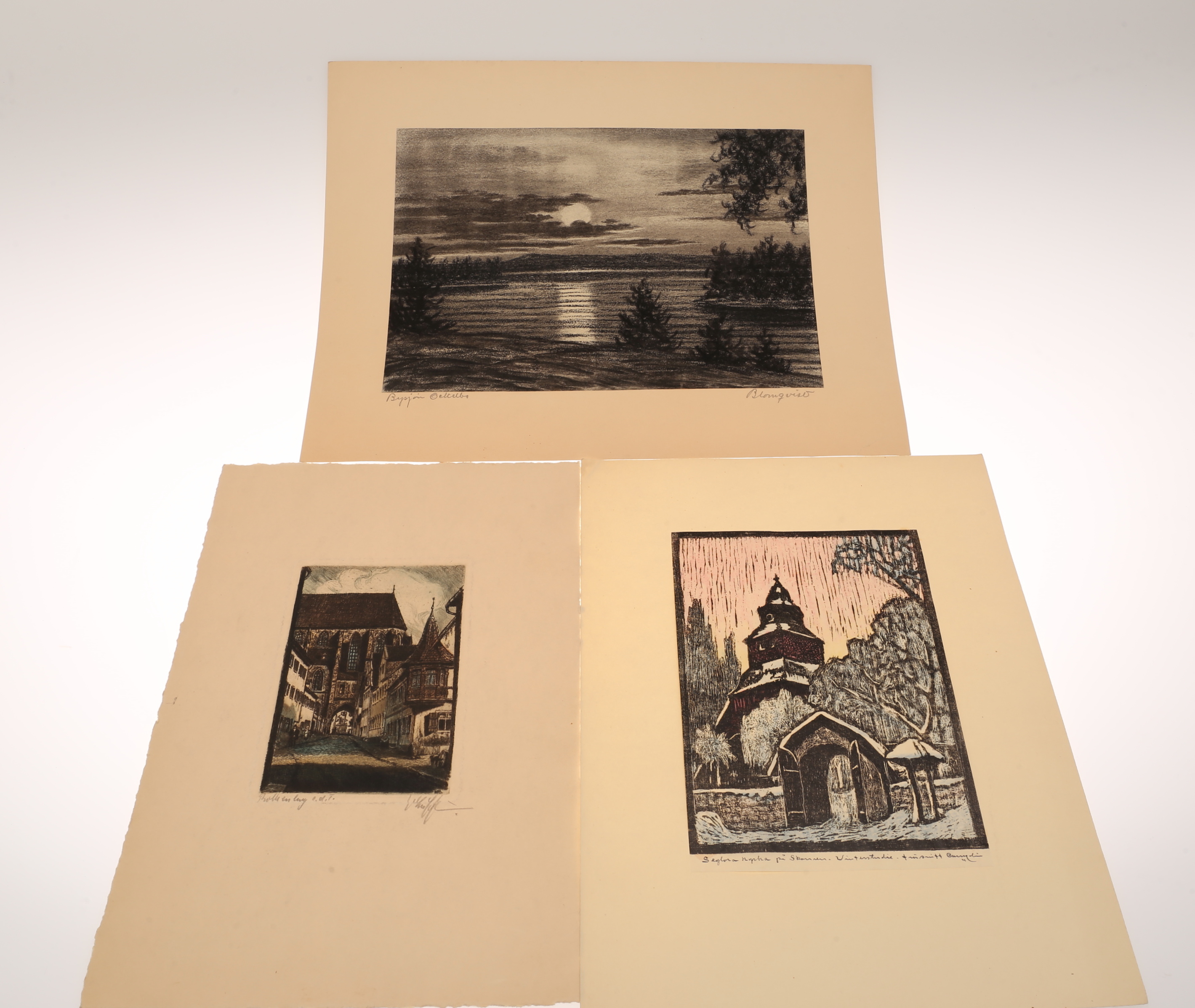 351791. OIDENTIFIERAD KONSTNÄR. Holzschnitt, 3 Teile.