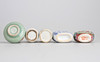 Steinzeug, unterglasurblau- und aufglasur Bemalung. Löffel aus Bein. 5-tlg.