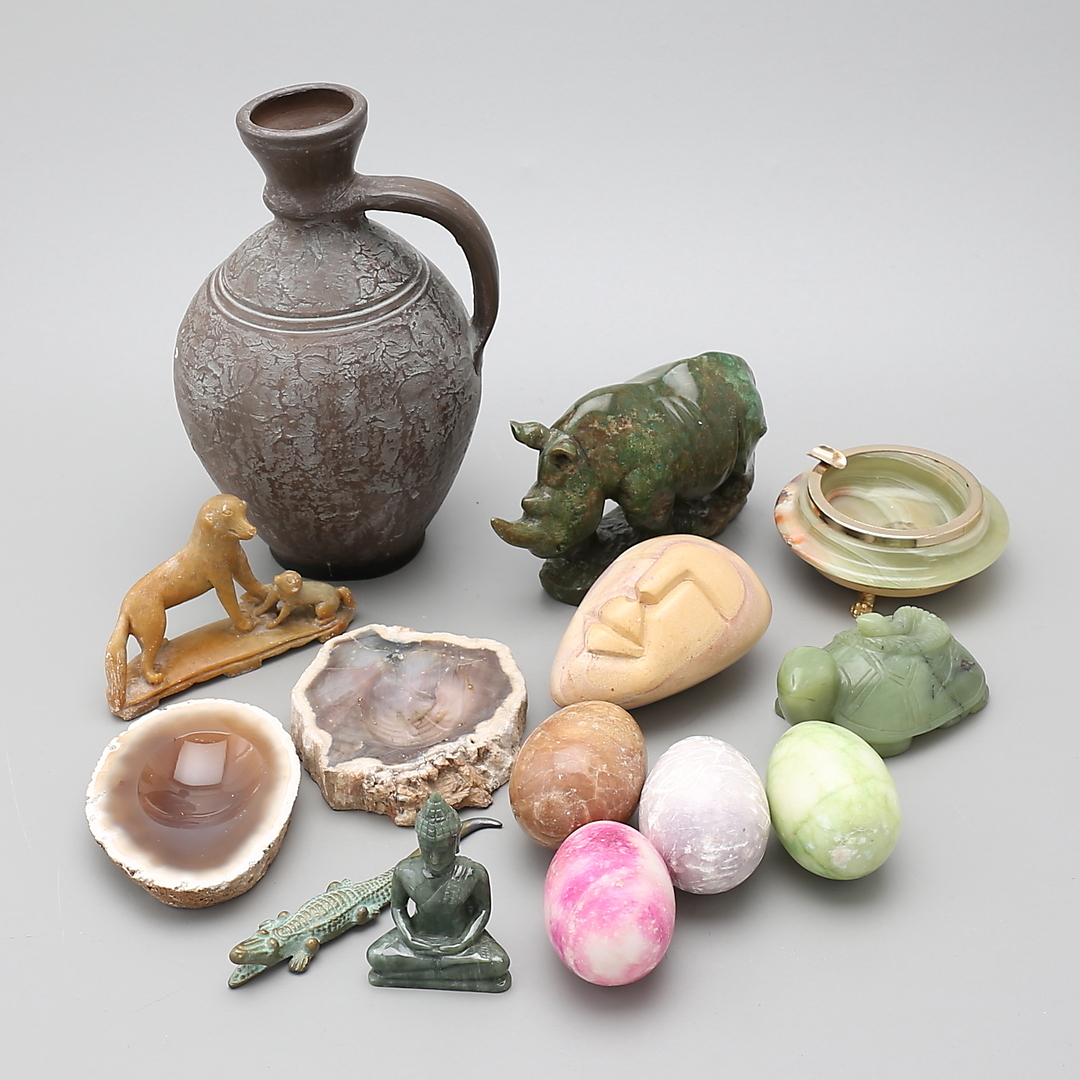 351877. VERSCHIEDENE STEINOBJEKTE usw., 13 Stück, darunter Jade.