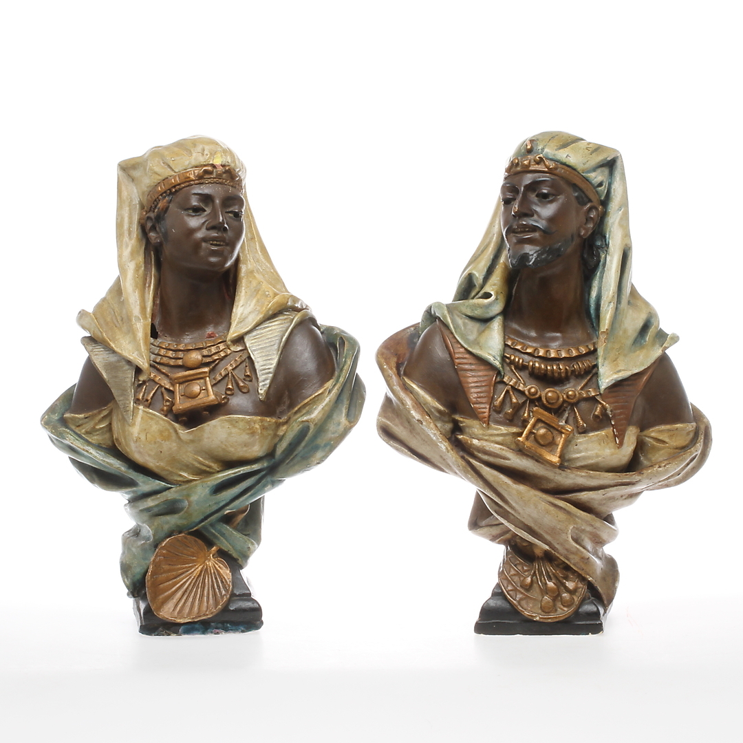 352636. BÜSTEN, ein Paar, Gips, orientalisierend, 18/1900.