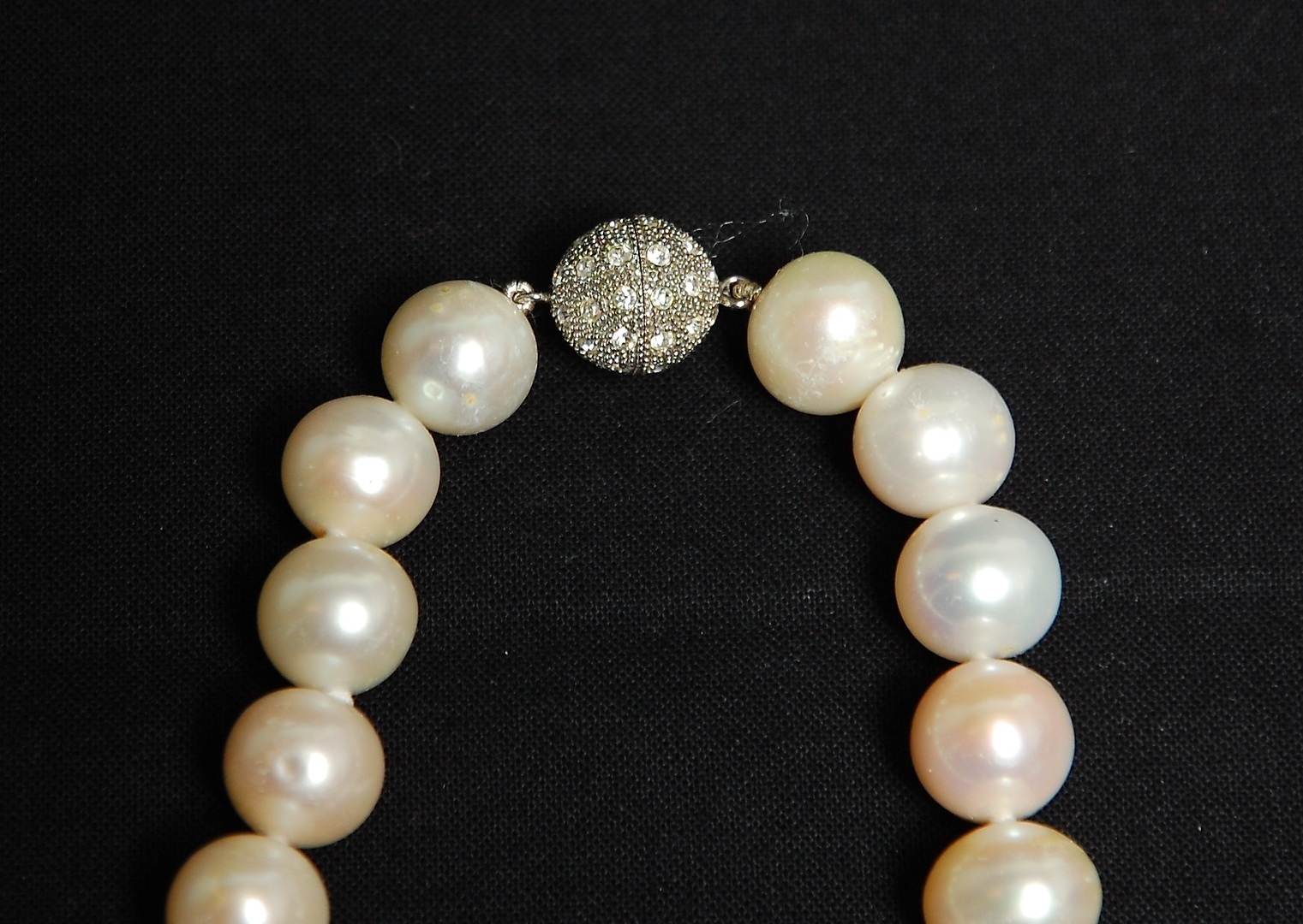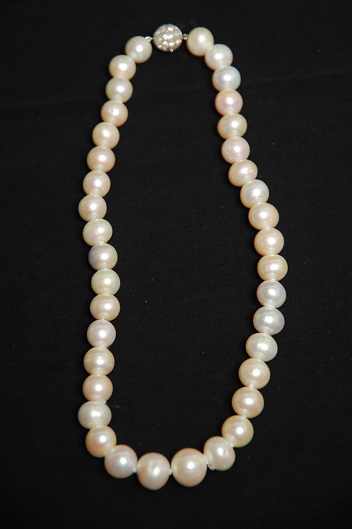 353485. COLLIER, barocke Süßwasserperlen, mit Silberschließe.