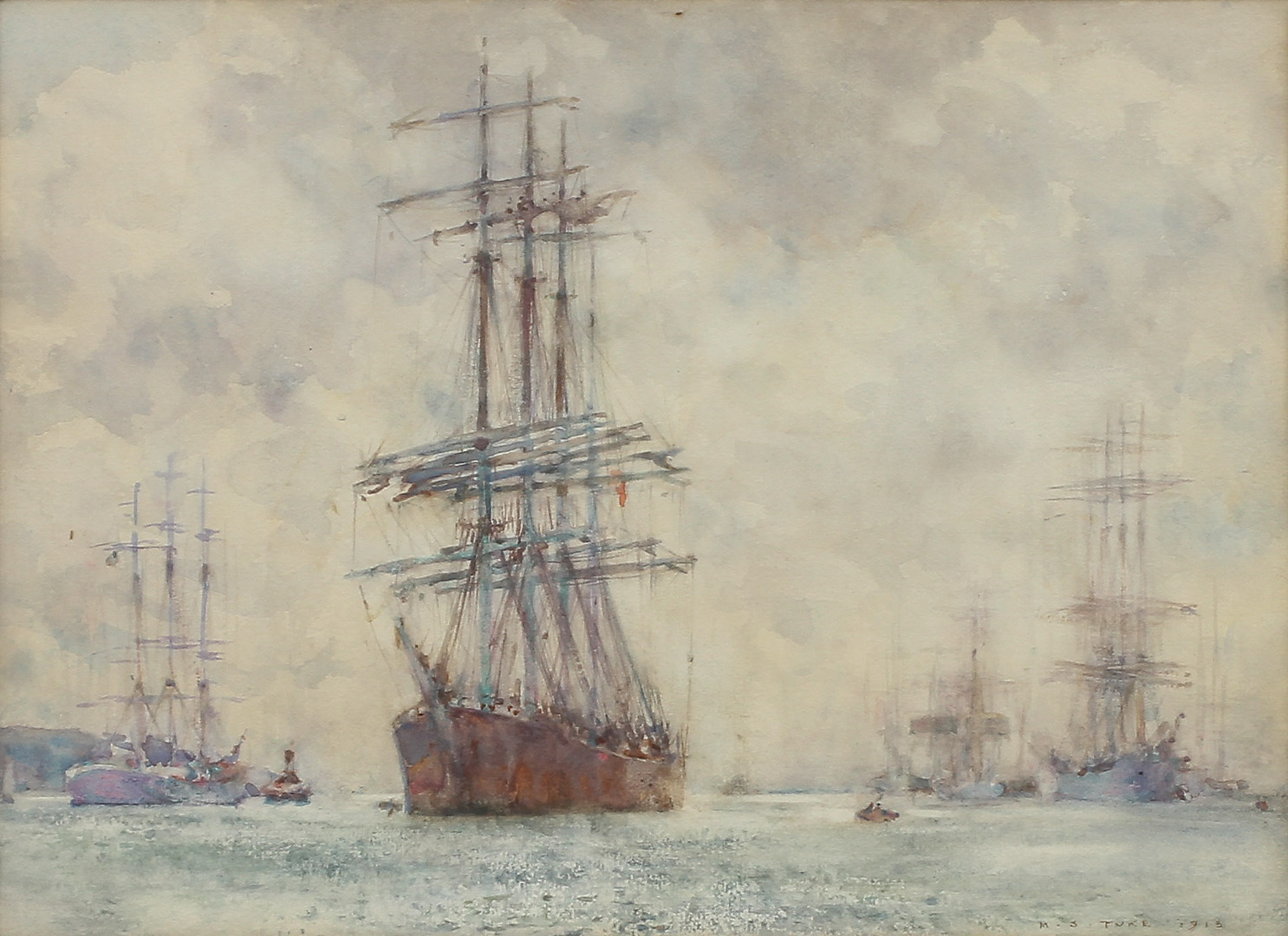 353753. HENRY SCOTT TUKE (1858-1929). Schiff im Einlass. Aquarell.