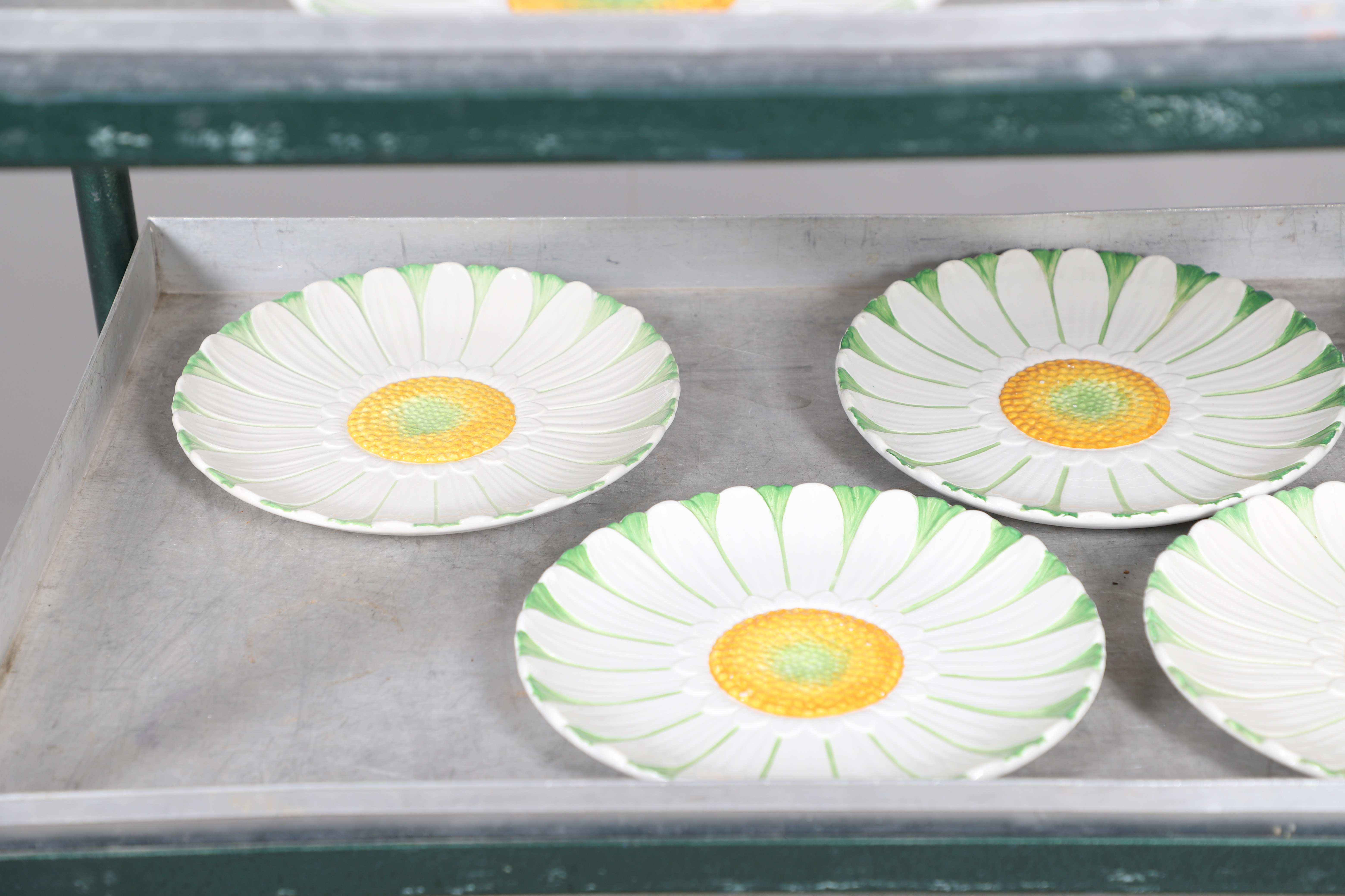 3538362. 12 DESSERTTELLER AUS MAJOLIKA MIT GÄNSEBLÜMCHENMUSTER.