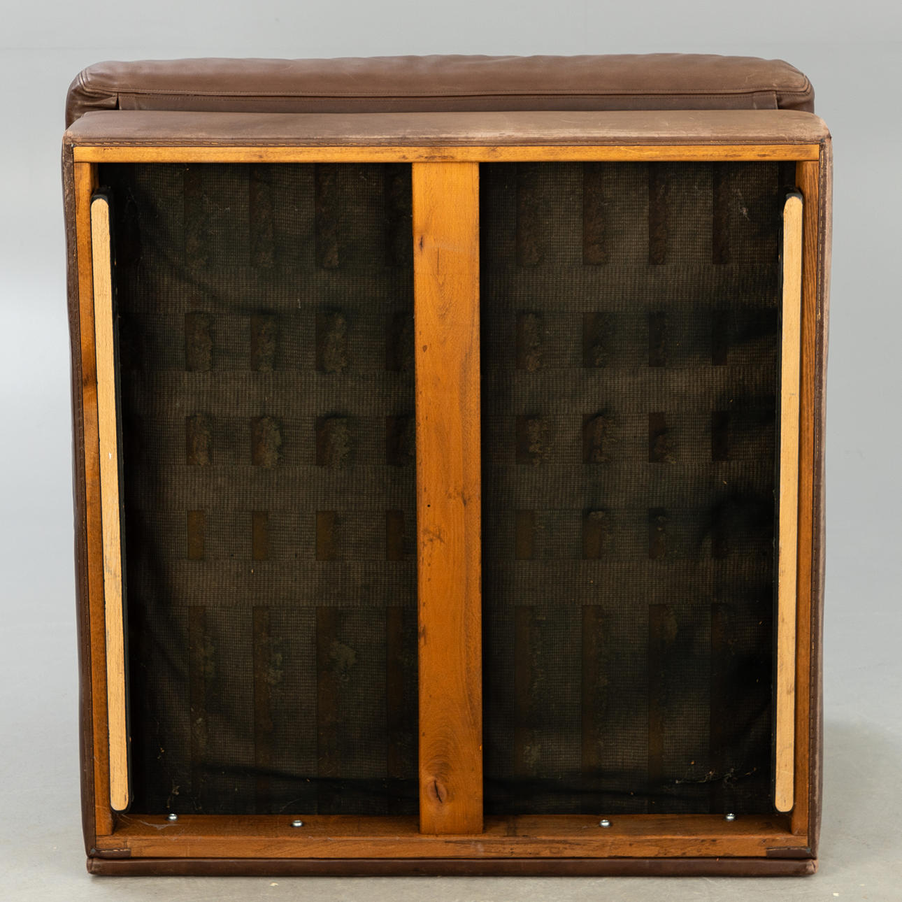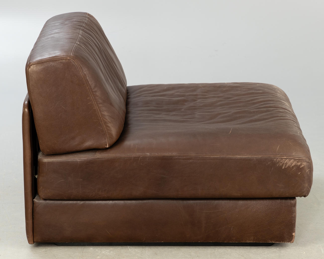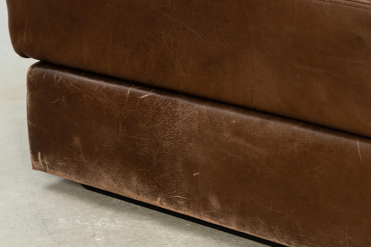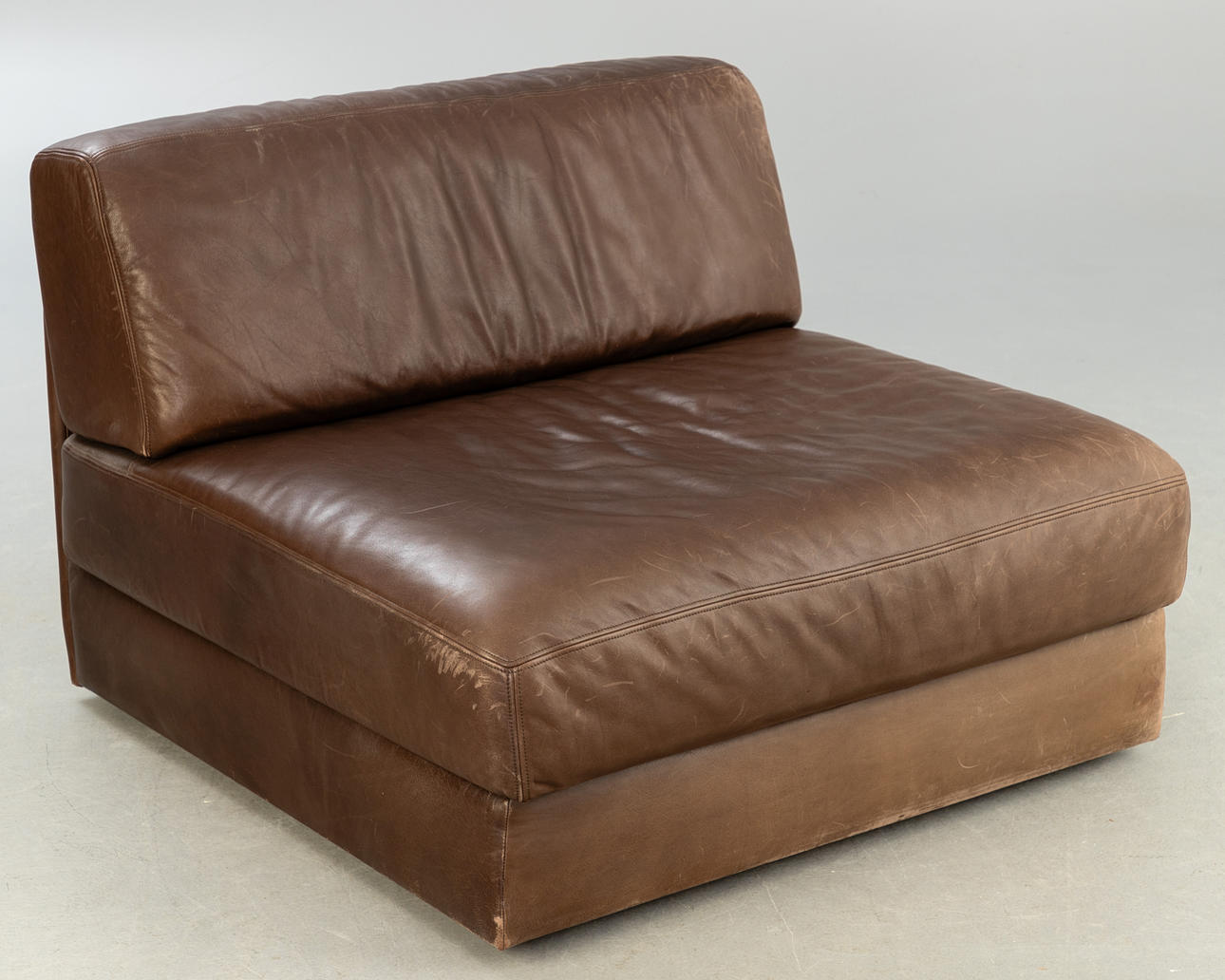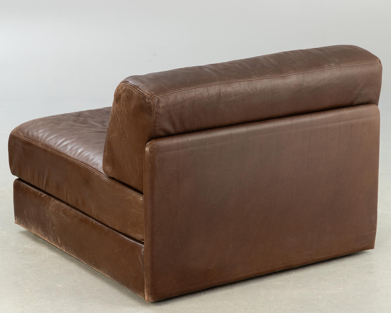 De Sede, Sessel / Modulsessel, Modell 'DS 76', Leder, 1970er Jahre, Schweiz. Aufgepolsterte und mit braunem Leder bezogene Holzkonstruktion, Sitz- und Rückenfläche mit Reißverschlüssen versehen, unter der Polsterung mit Herstellerbezeichnung versehen, H.71cm, Sitzhöhe: 36cm, B.81cm, T.86cm.