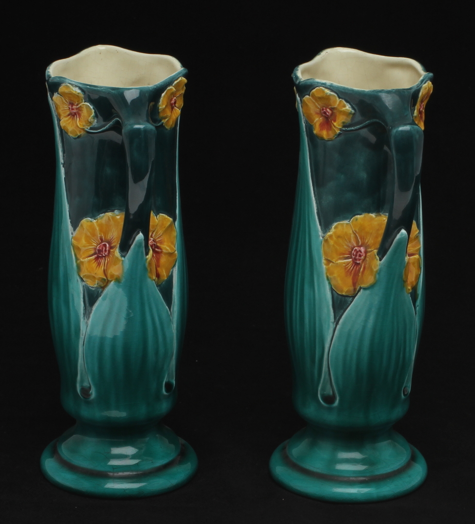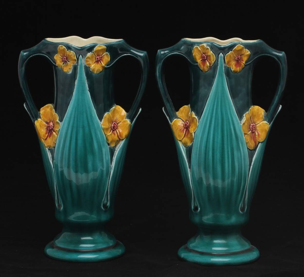 35499. VASEN 1 Paar, Majolika, Jugendstil, Rörstrand.