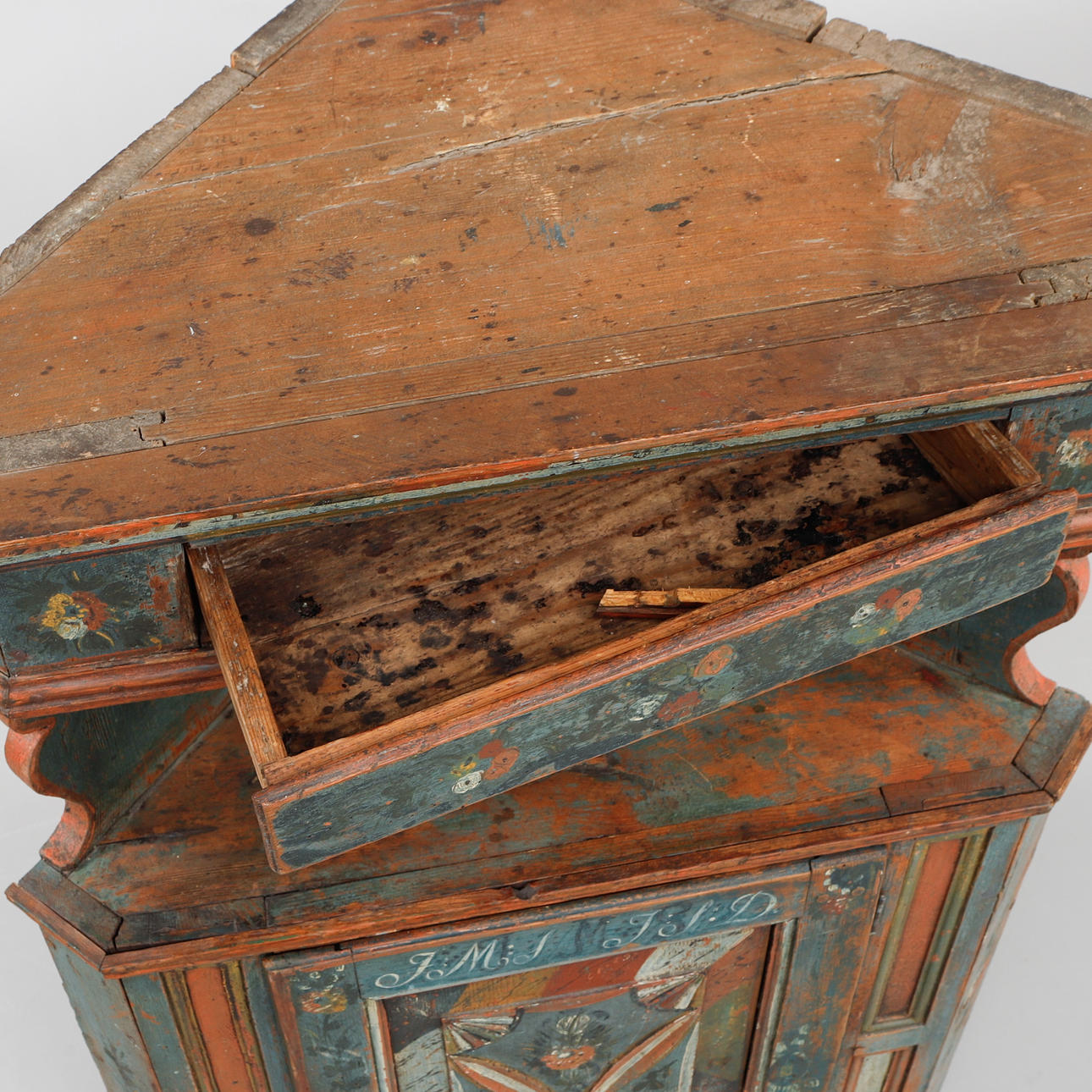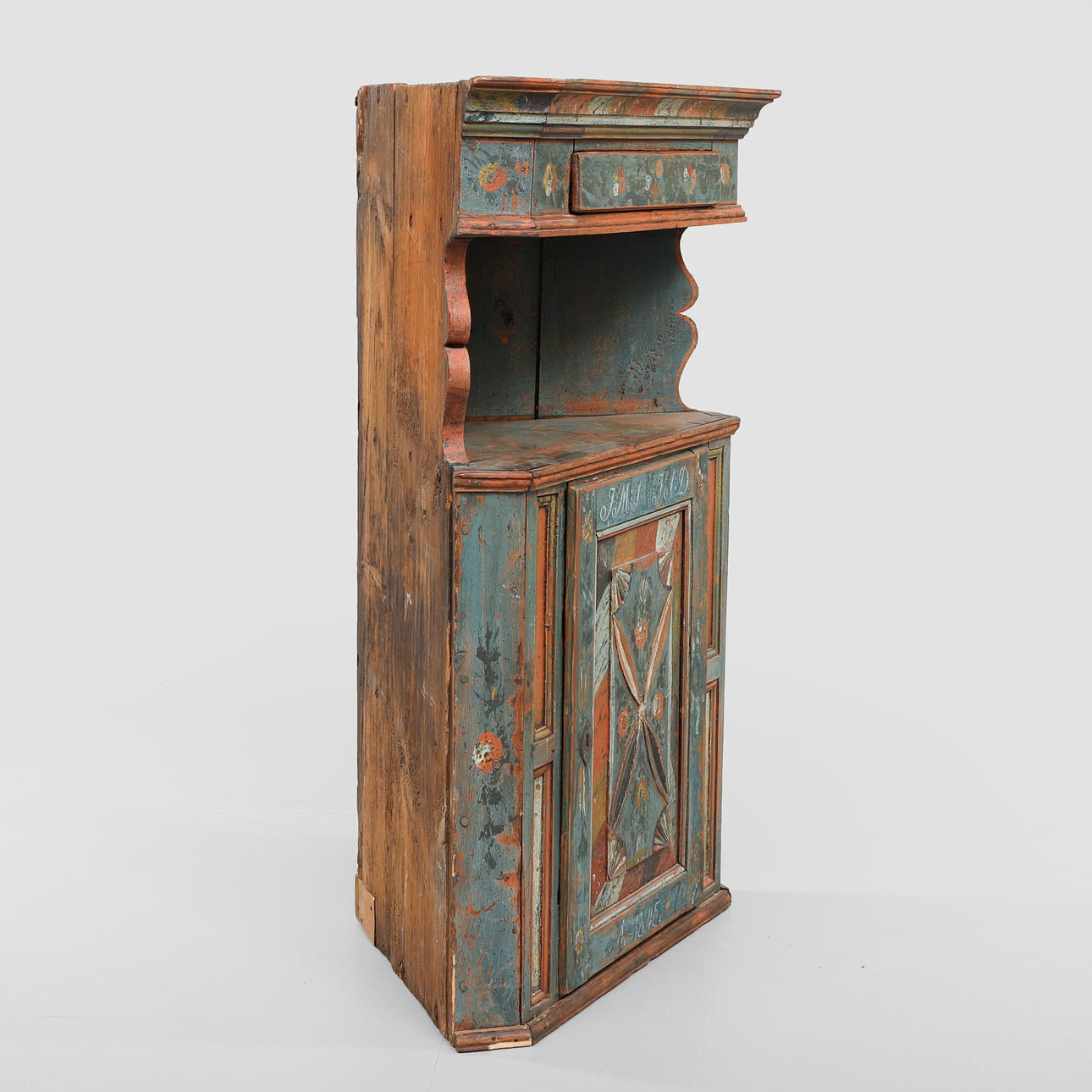 Gebrauchsspuren, lose Holzdetails, neuere Scharniere, Schlüssel fehlt.